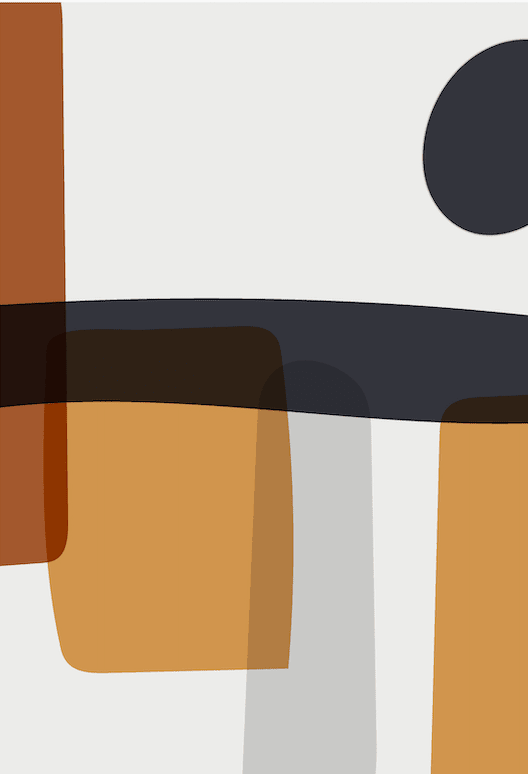 The Architectural Melange Wall Art captures the essence of abstract expression with bold geometric shapes and earthy tones. The overlapping blocks of caramel, black, and muted white create a visual narrative of depth and balance. Each shape intersects harmoniously, illustrating a dialogue between sharp lines and soft curves, giving the piece a dynamic, modern flair.