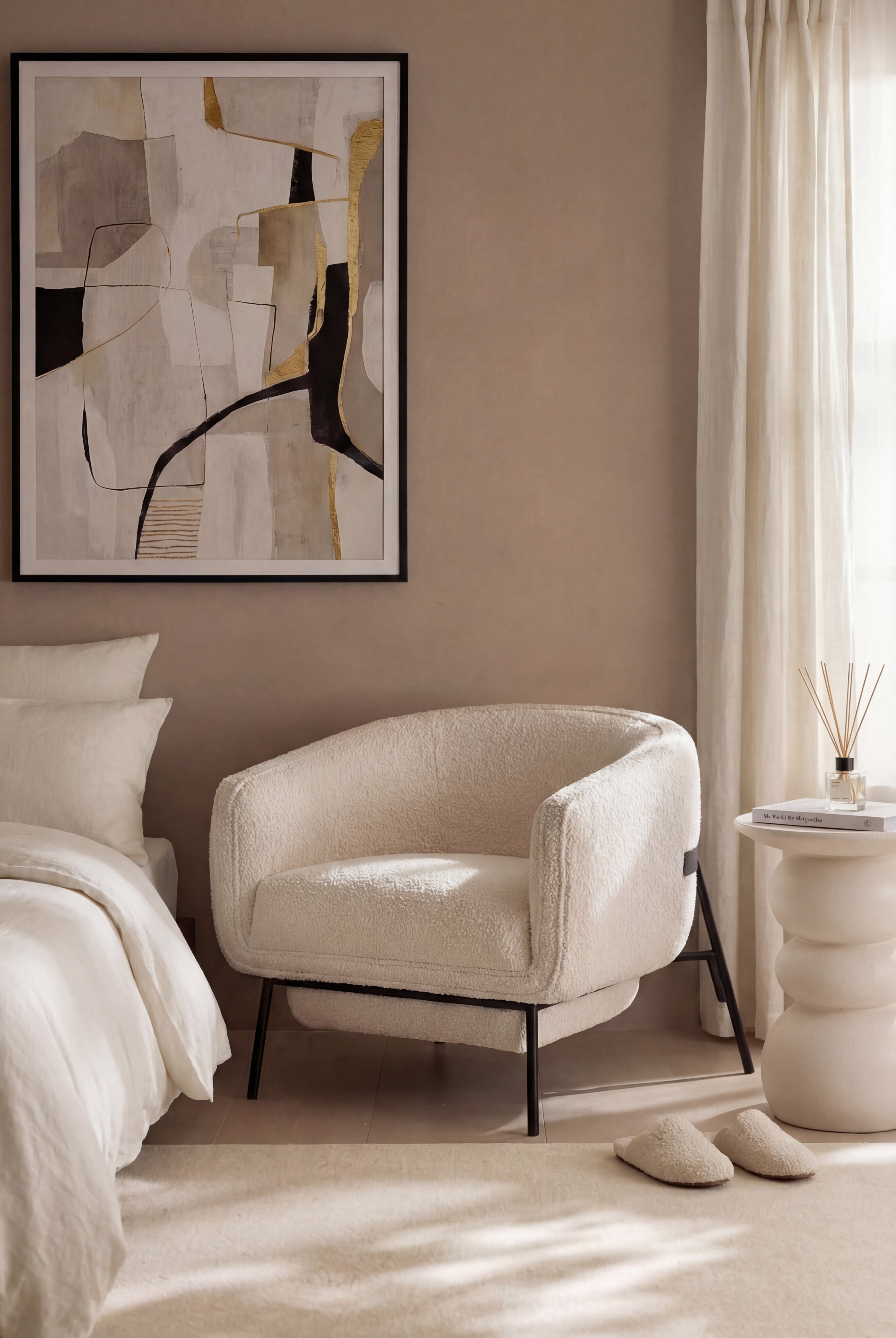 Explore accent armchairs, bouclé chairs, velvet lounge chairs, and fabric side chairs—perfect for reading, relaxing, or hosting. Each piece is crafted with premium materials and elegant finishes to complement both modern and classic interiors.
