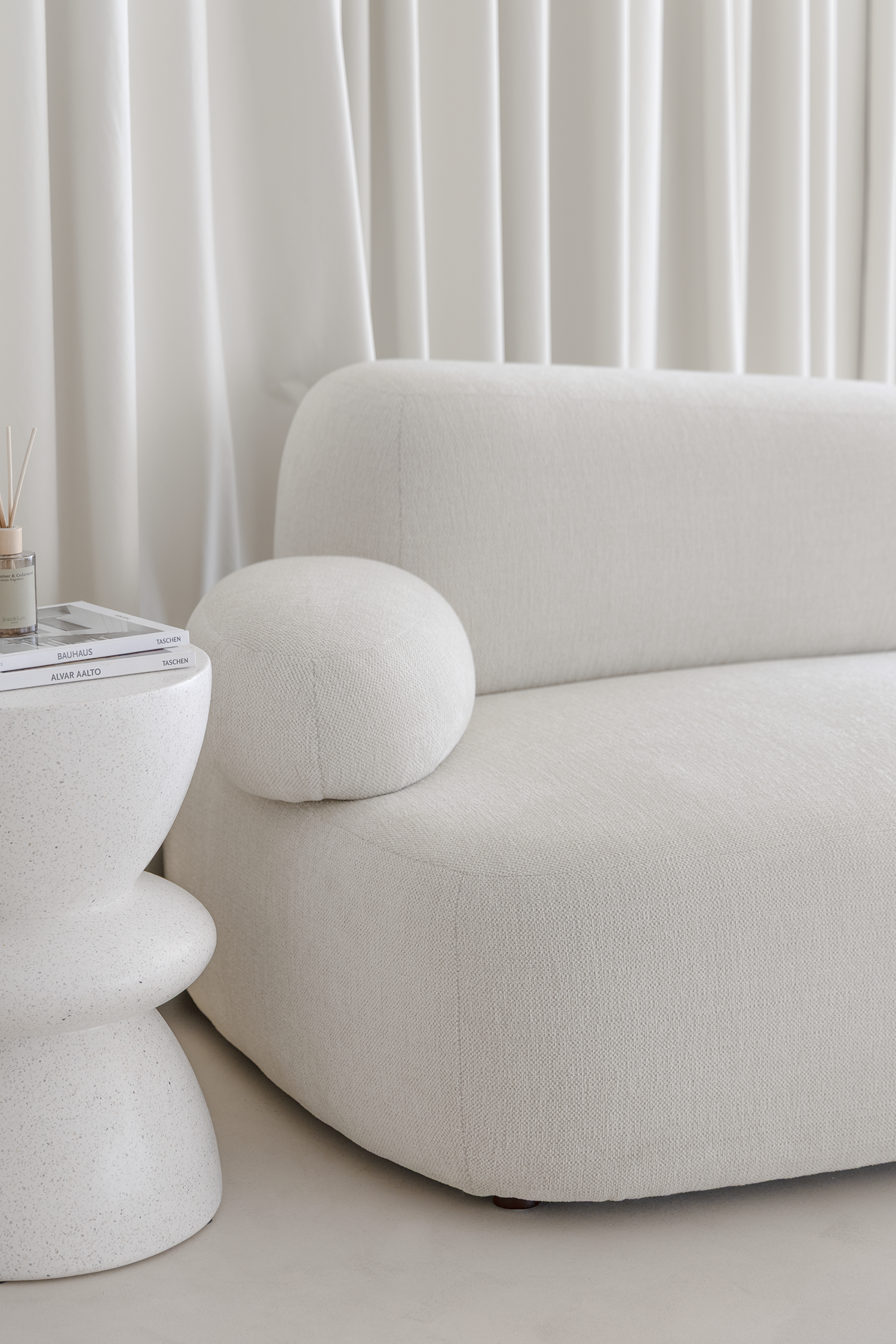 Experience the perfect balance of comfort and style as you settle into a sofa chair designed with modern minimalism in mind. The soft off-white textured upholstery feels inviting to the touch, while the sculptural silhouette with rounded edges and a bold armrest adds a contemporary edge. Its medium-firm cushioning offers both coziness and lasting support, making it the ideal statement piece for elevating your living room, reading nook, or lounge space.