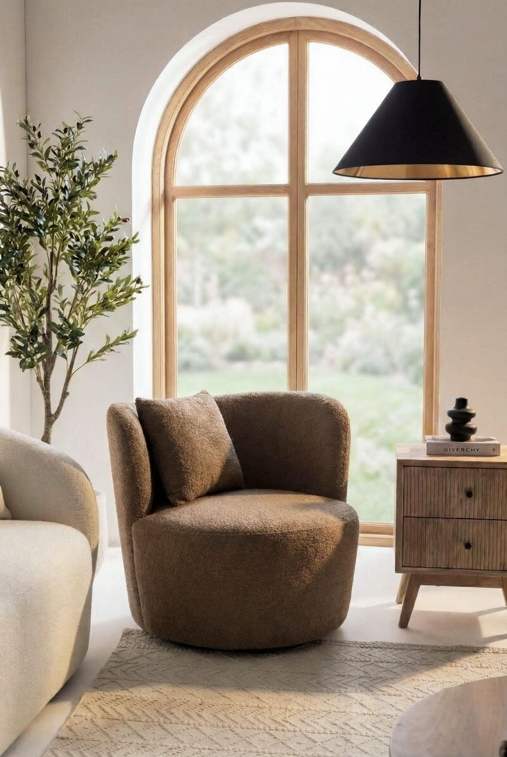 Explore accent armchairs, bouclé chairs, velvet lounge chairs, and fabric side chairs—perfect for reading, relaxing, or hosting. Each piece is crafted with premium materials and elegant finishes to complement both modern and classic interiors.