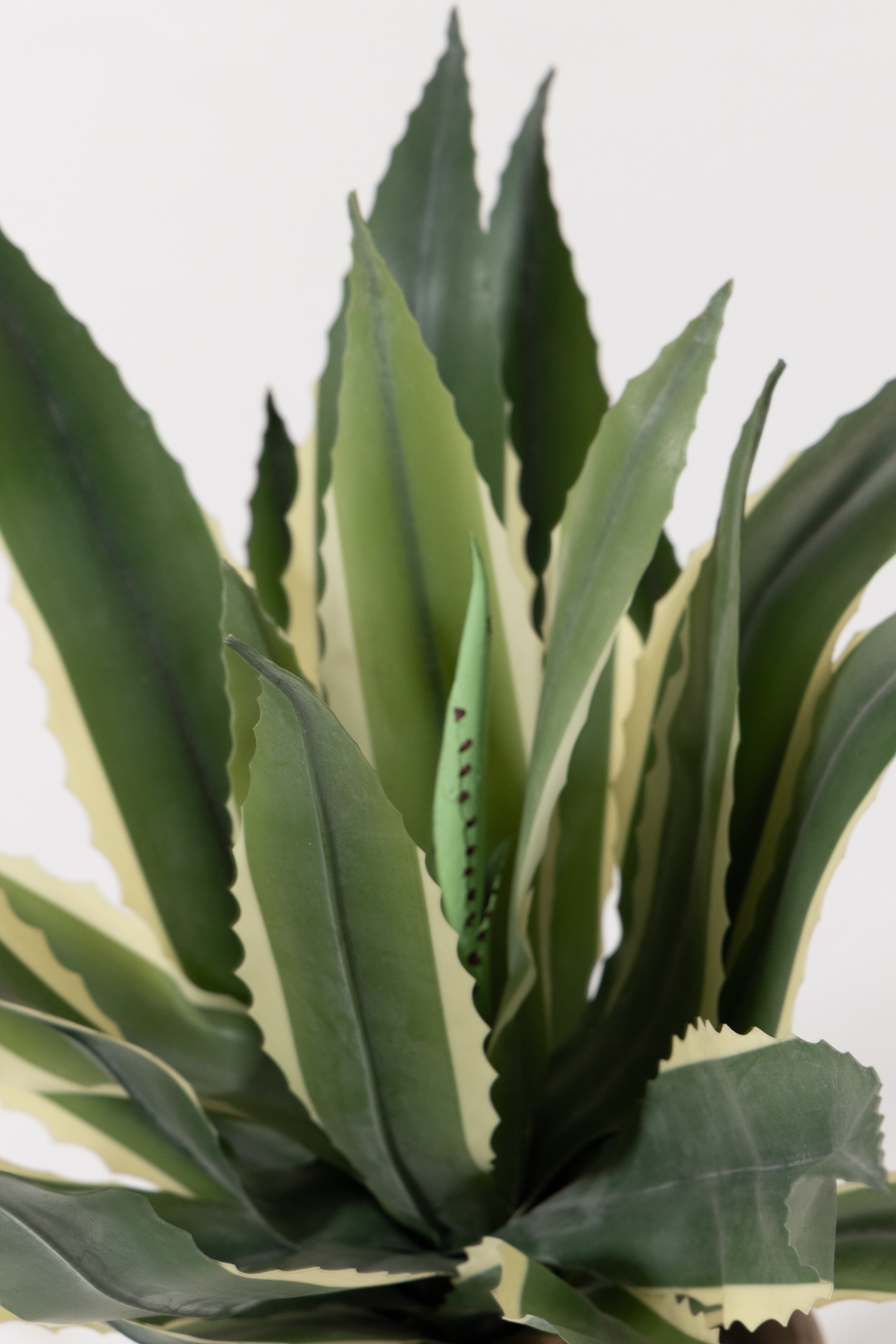Infuse your space with effortless desert sophistication and natural allure. This beautifully detailed piece features sculpted, sword like leaves in rich green hues with soft cream variegation, mirroring the striking beauty of a real Agave Americana. The lifelike texture and organic curvature add visual depth and realism. Perfect for modern, boho, or minimalist spaces, it brings a touch of the outdoors inside, balancing sharp structure with soft, calming tones. Ideal for tabletops or corners, this piece offers lasting elegance and serenity without maintenance.