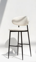 Soft white boucle wraps around the gently curved backrest and cushioned seat, creating a warm, inviting texture that elevates your space with refined modern simplicity. The slim black legs introduce a sleek architectural contrast, giving the silhouette a light, effortless presence while keeping the design clean and minimal. Its sculpted form offers comfort without compromising style, transforming your kitchen or bar area into a serene, contemporary setting that feels intentionally curated around your daily moments.