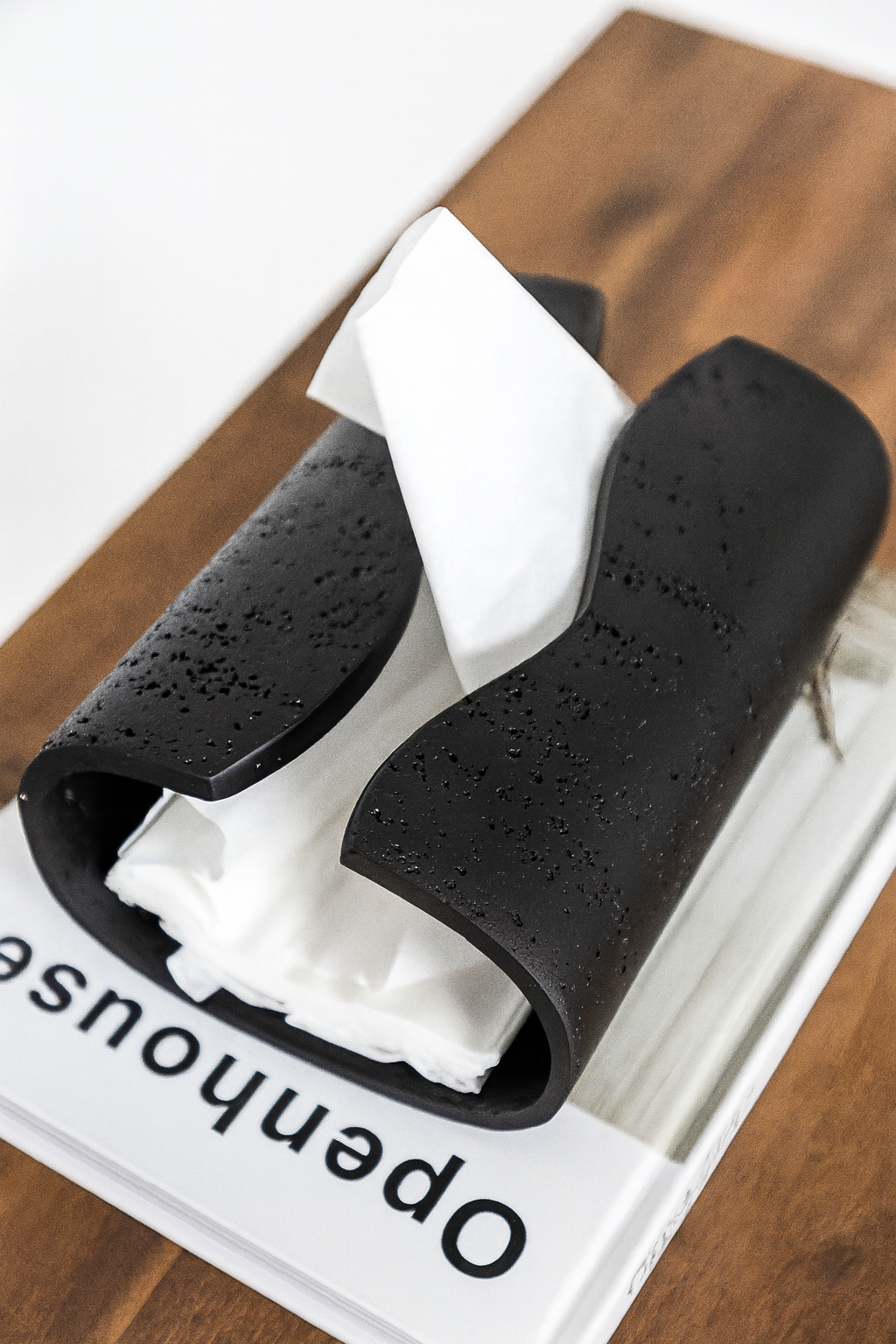 Crafted from sleek black for a bold, modern touch. Its sculptural wave-like silhouette curves smoothly, resembling contemporary art while serving as a practical tissue holder. The matte finish adds depth and texture, turning an everyday item into a stylish centerpiece for your table, desk, or countertop. As you reach for a tissue, you become part of the design—where minimalist function meets timeless European elegance.