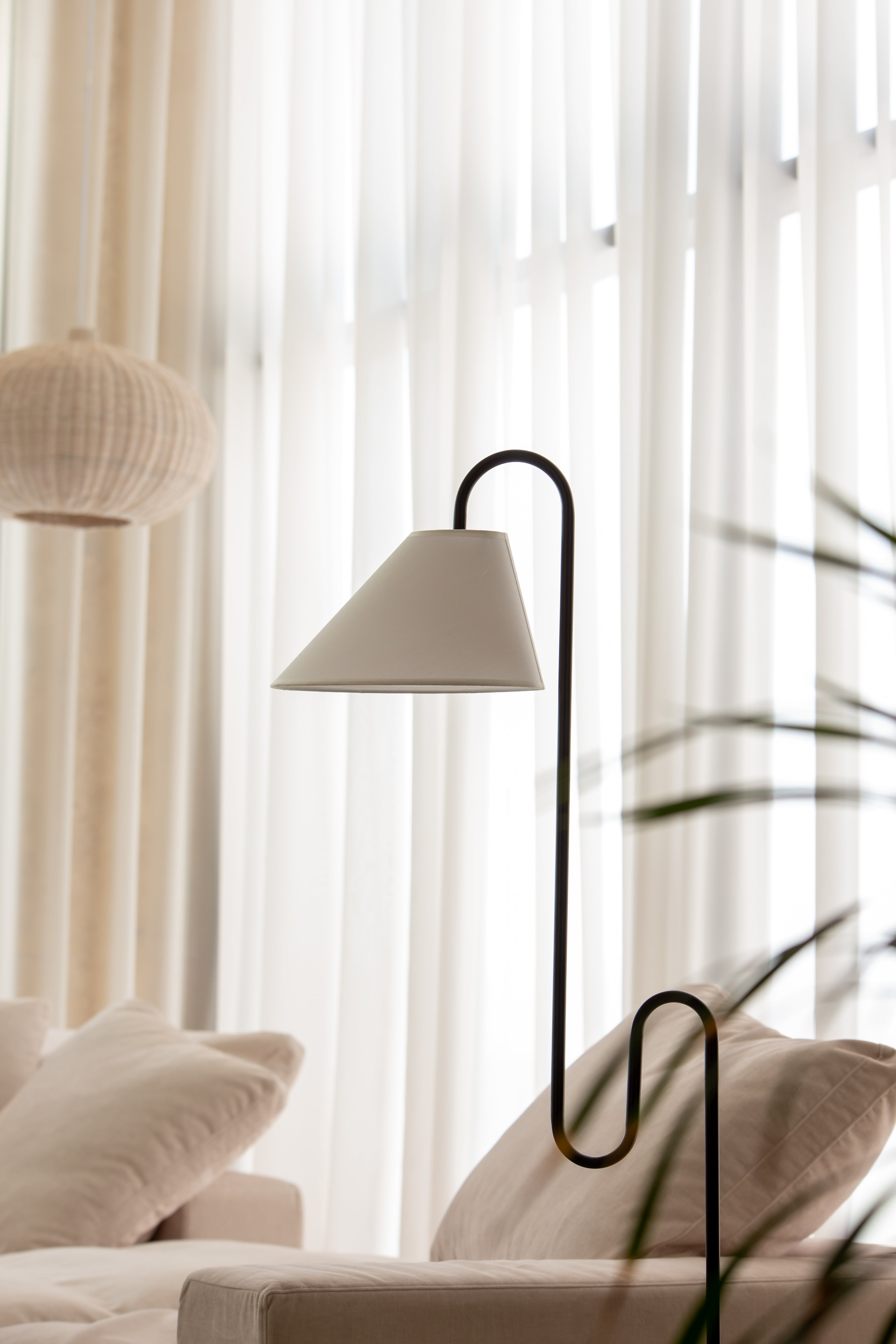 The Arcadia Floor Lamp's sculptural form stands out as a statement piece, while its minimalist design complements modern and transitional interiors alike. The unique curve of the lamp not only enhances its visual appeal but also provides directional lighting exactly where you need it, making it as practical as it is beautiful.