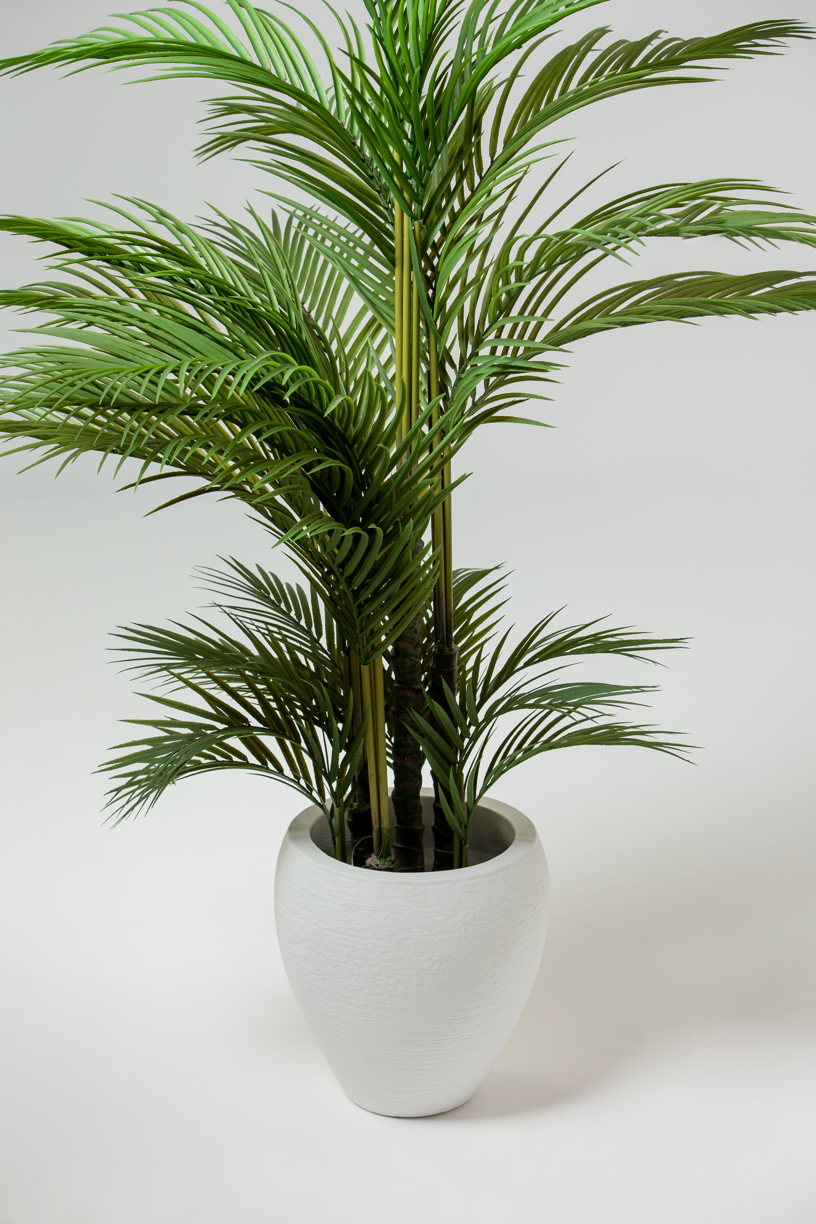 Crafted with a lifelike real-touch texture, this Areca Palm artificial plant brings lush greenery to any indoor space. The gracefully arching fronds boast a natural green hue, complemented by slender stems, providing a serene and tropical vibe. Nestled in a modern white planter, its realistic design and vibrant tones make it a perfect low-maintenance décor choice for homes, offices, or commercial spaces. Enhance your interiors with this faux plant's effortless charm and timeless elegance.