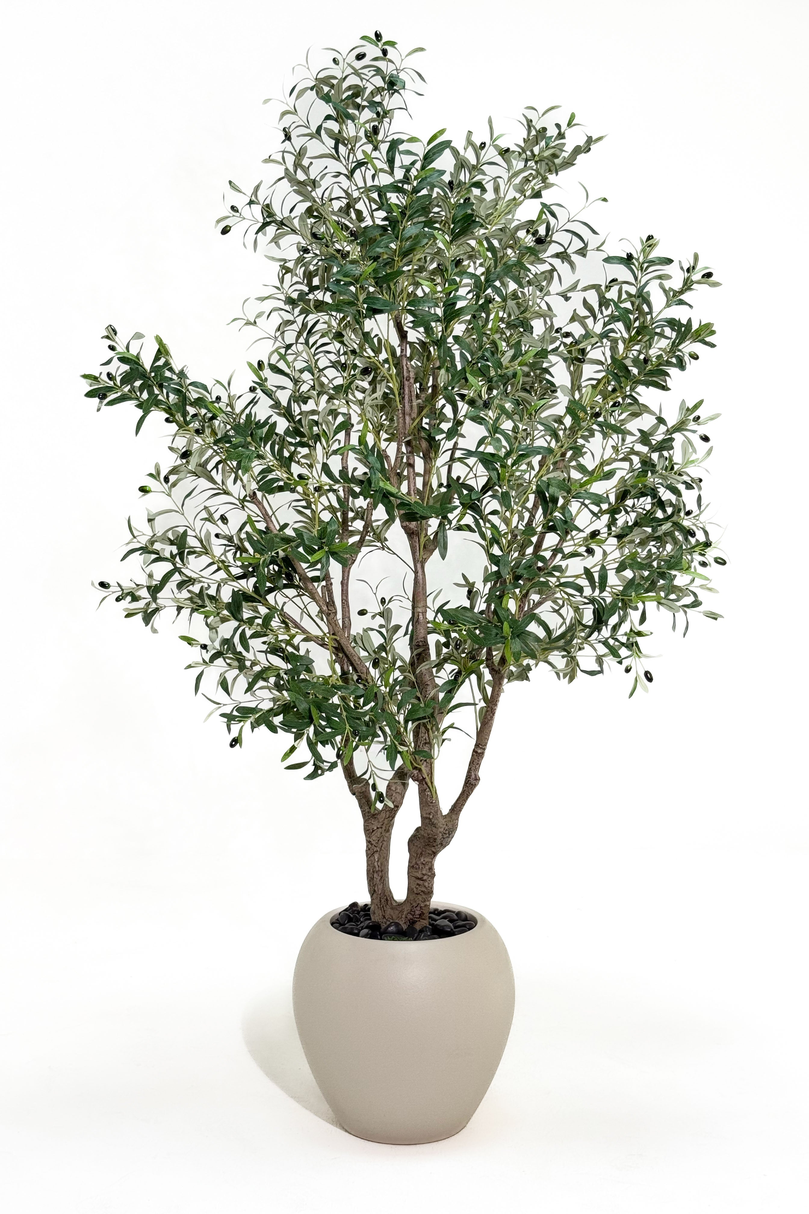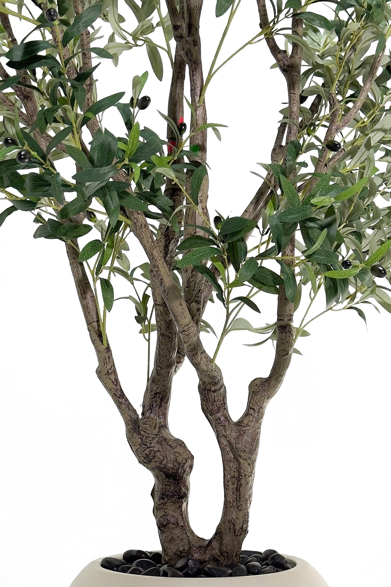 This stunning faux olive tree features a naturalistic multi-trunk design with realistic bark texture, adorned with an abundance of delicate, silvery-green leaves and lifelike artificial olives, perfectly capturing the serene beauty of a genuine olive tree. Standing at an impressive 210CM, this tall decorative plant is the ideal indoor accent to create a serene ambiance, add a touch of nature, or complement your Mediterranean-inspired decor without any watering or pruning. Elevate your interior design effortlessly with this maintenance-free, durable botanical masterpiece.