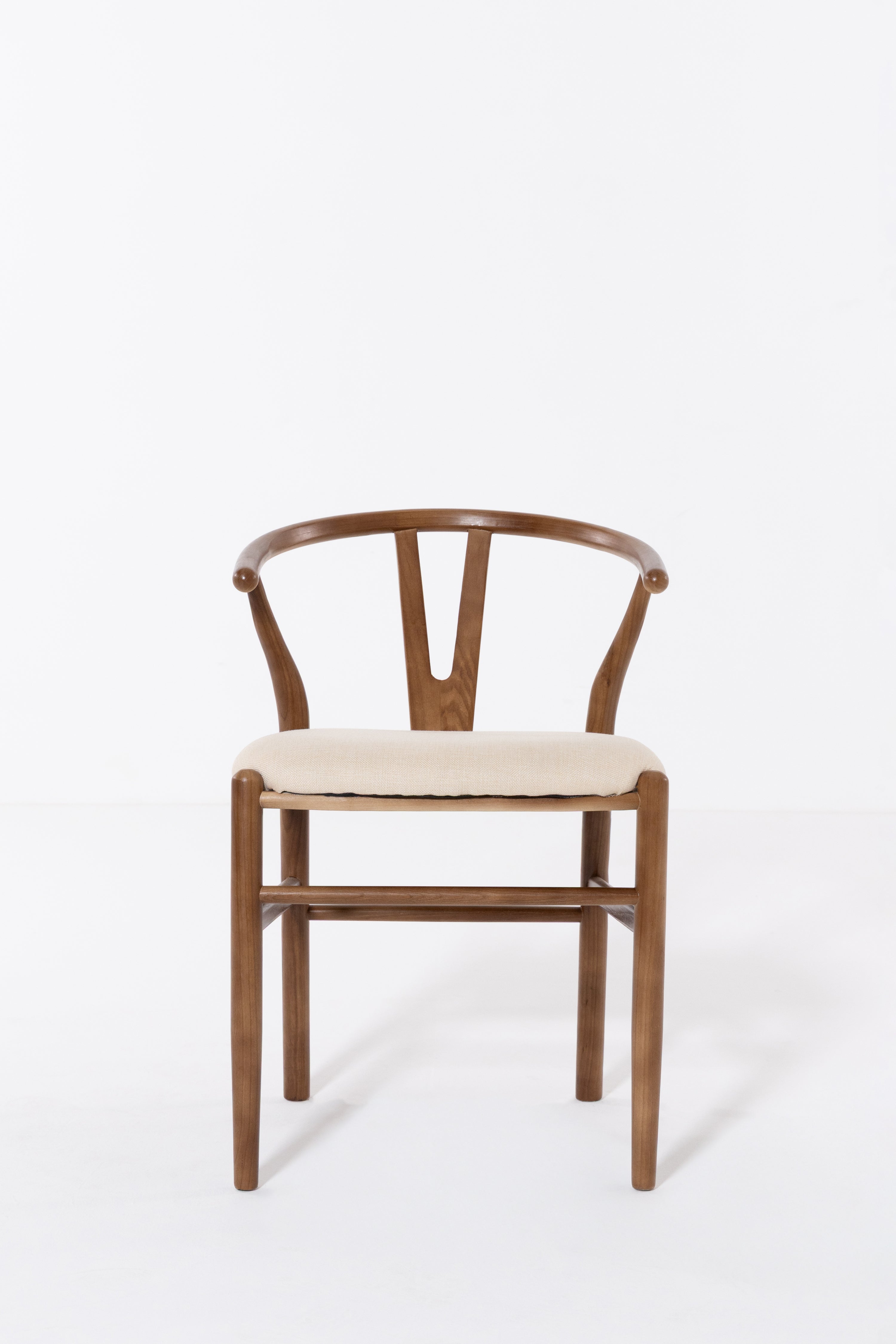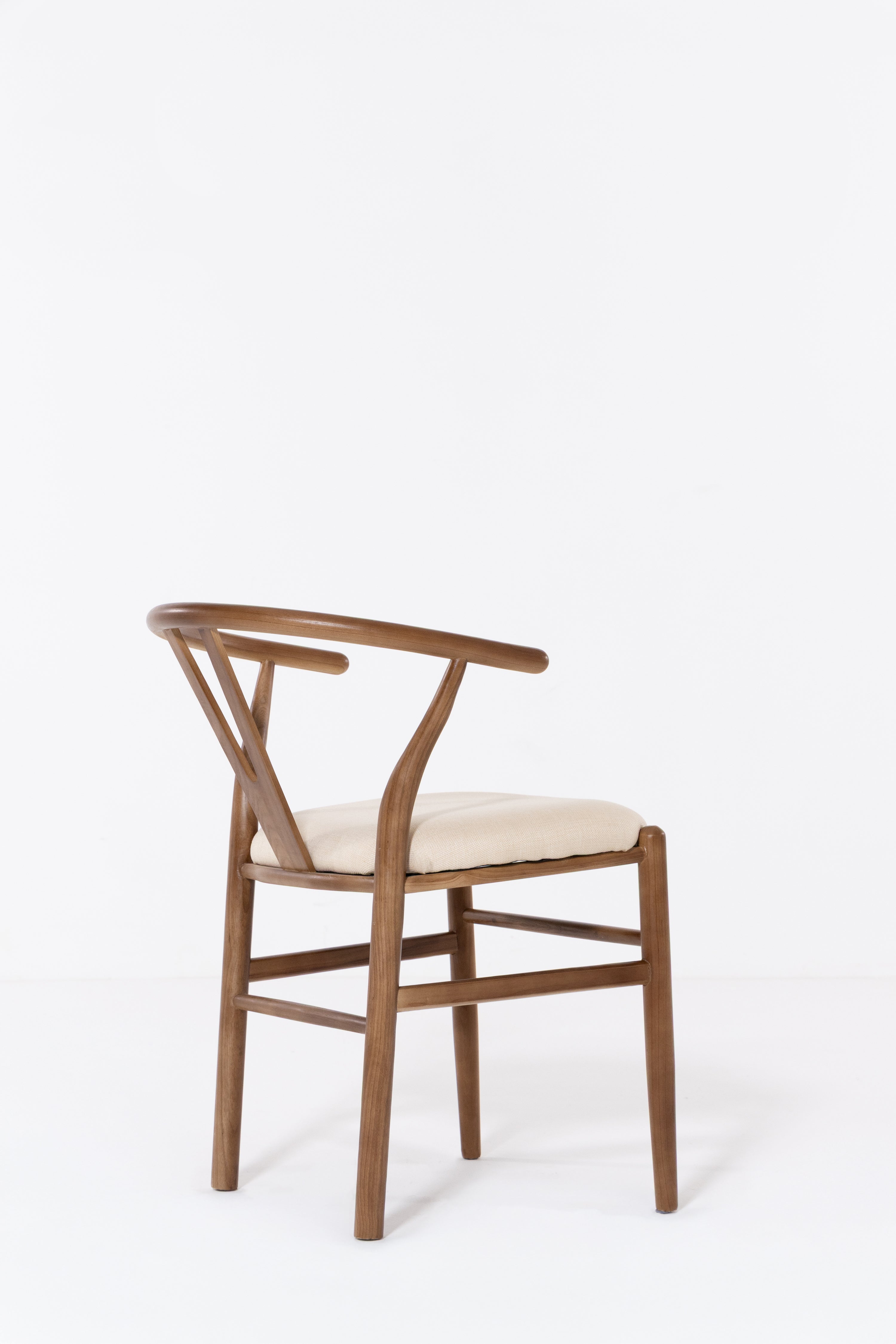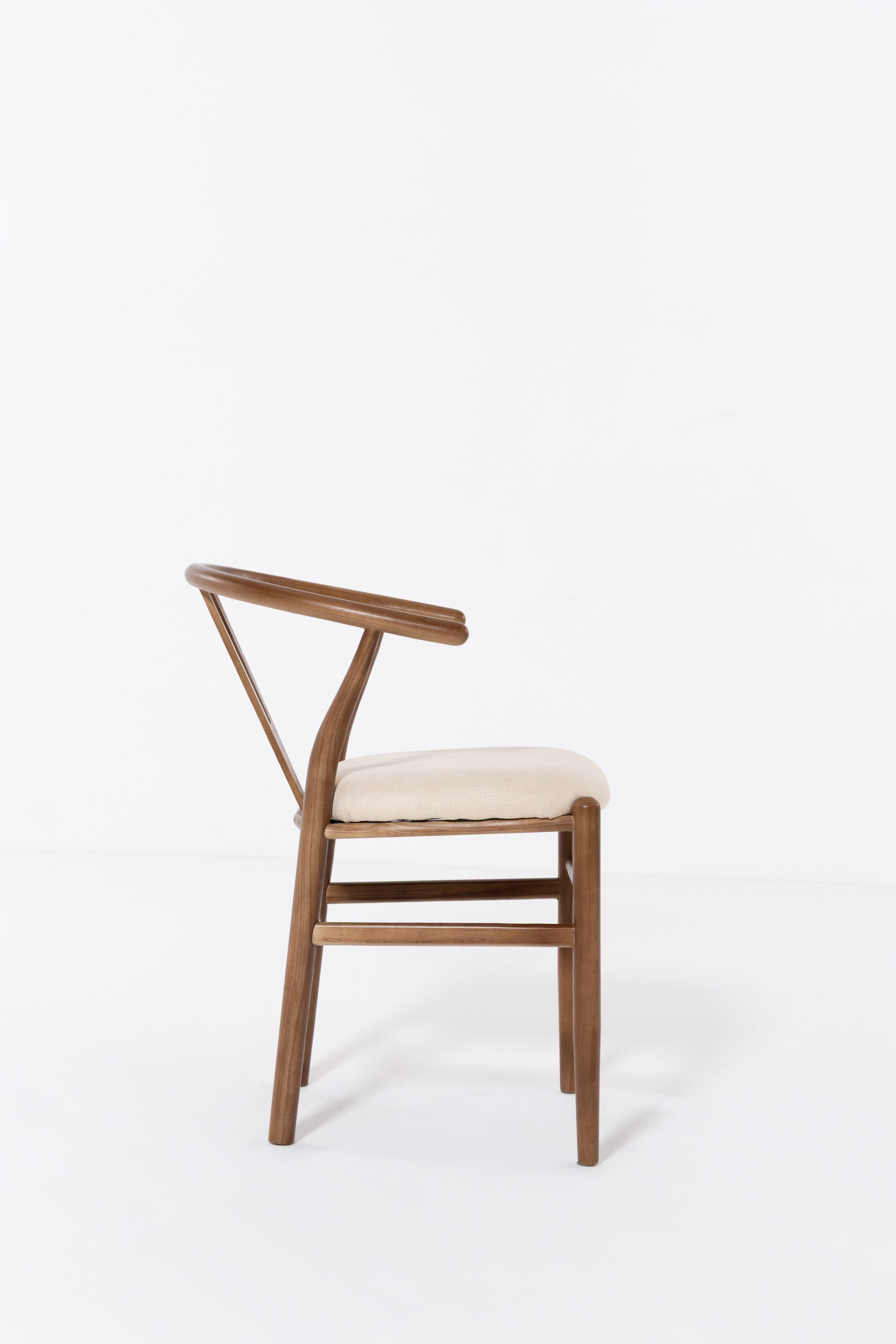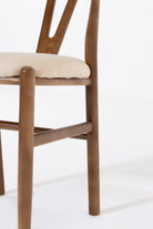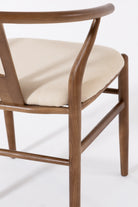 Shaped for unhurried meals, this wood dining chair pairs a warm, hand-sanded frame with a linen-look seat in soft beige. An arcing back wraps comfortably around the body, with sculpted supports that steady posture while you dine, read, or talk late. Rounded edges invite touch and the open base keeps things airy under the table. Its calm grain and clean lines suit modern, Scandi and Japandi rooms, easy to style with timber tops, stone, and neutral tableware. Finish wipes clean after everyday use.