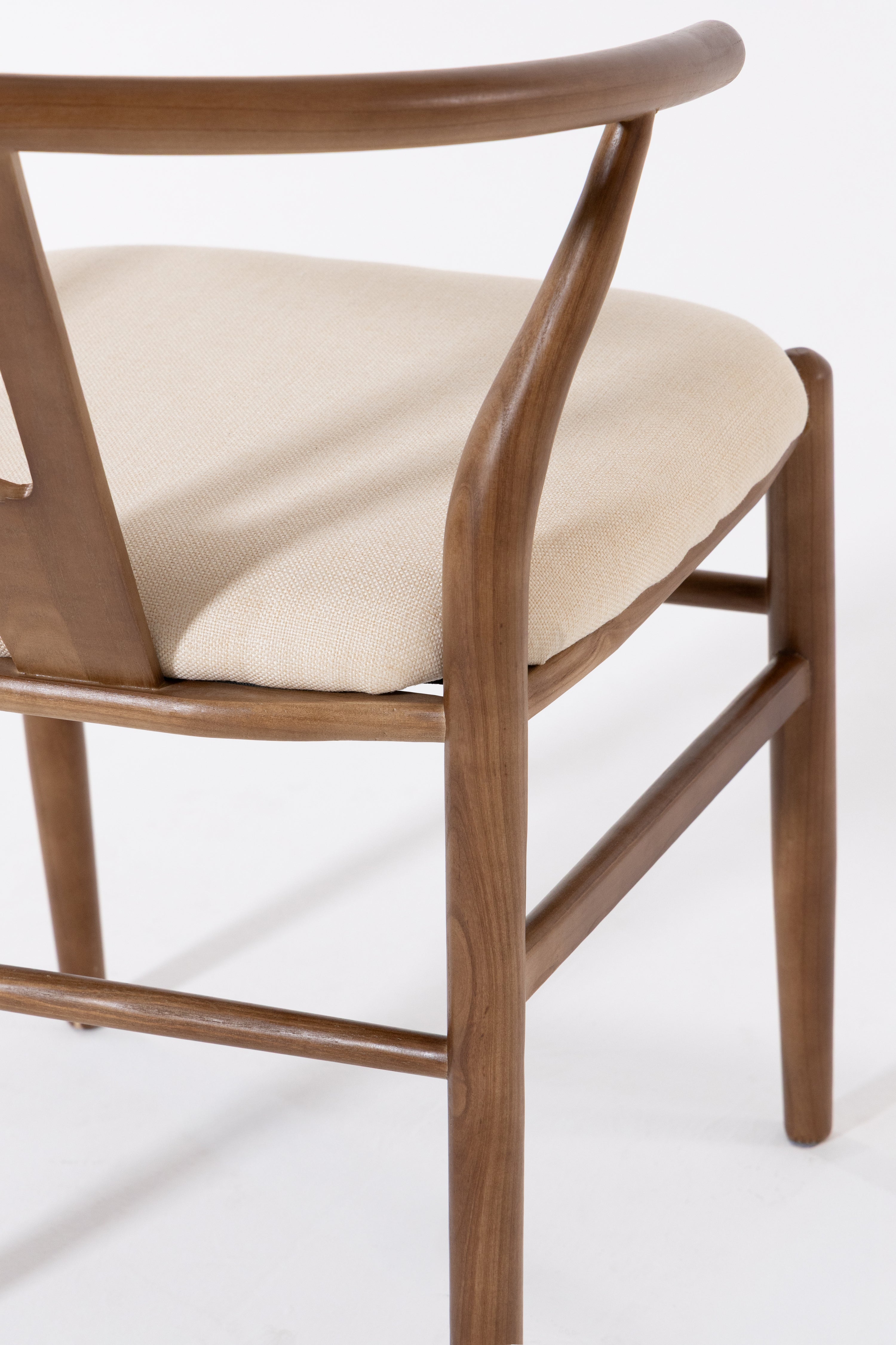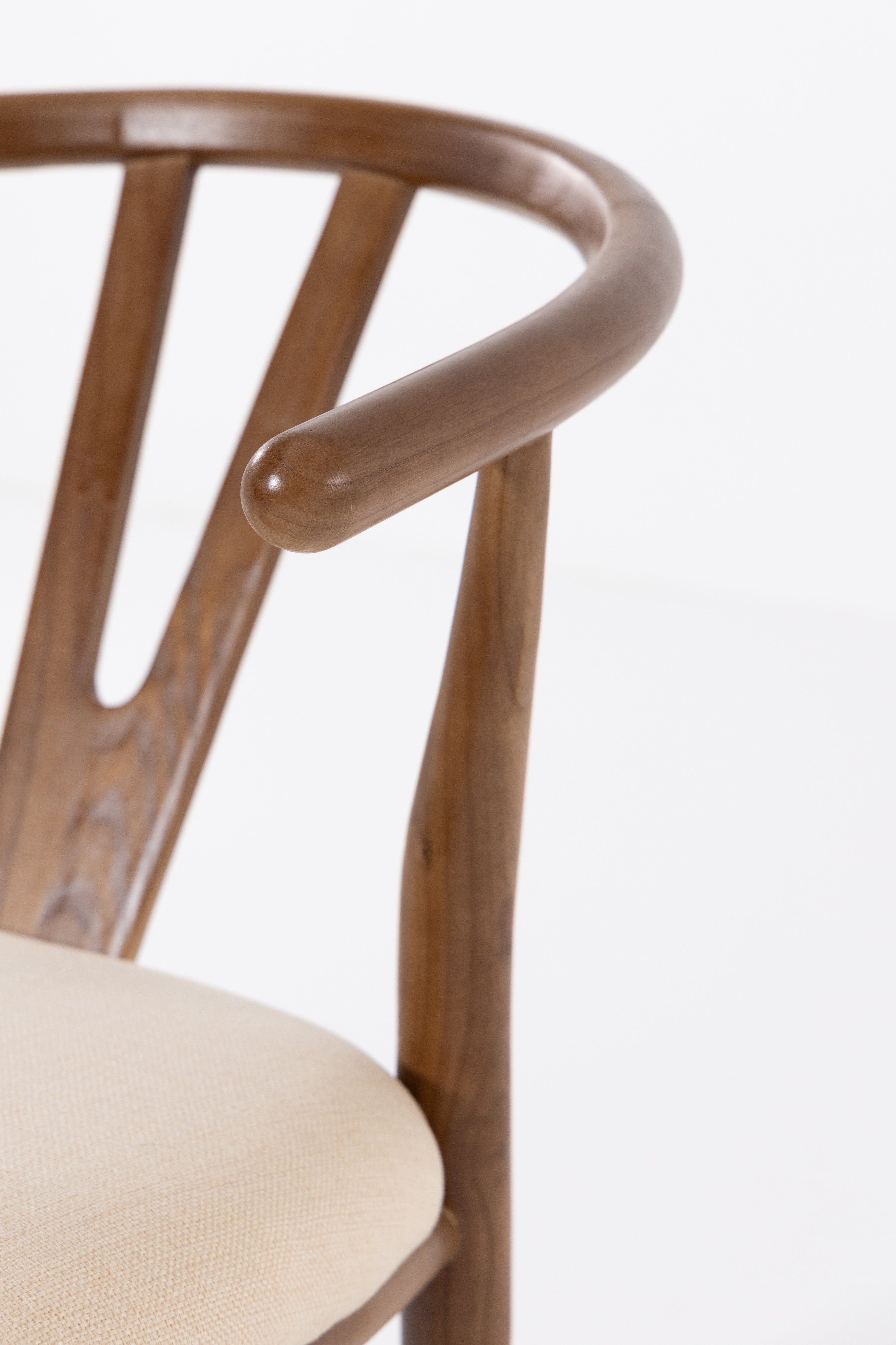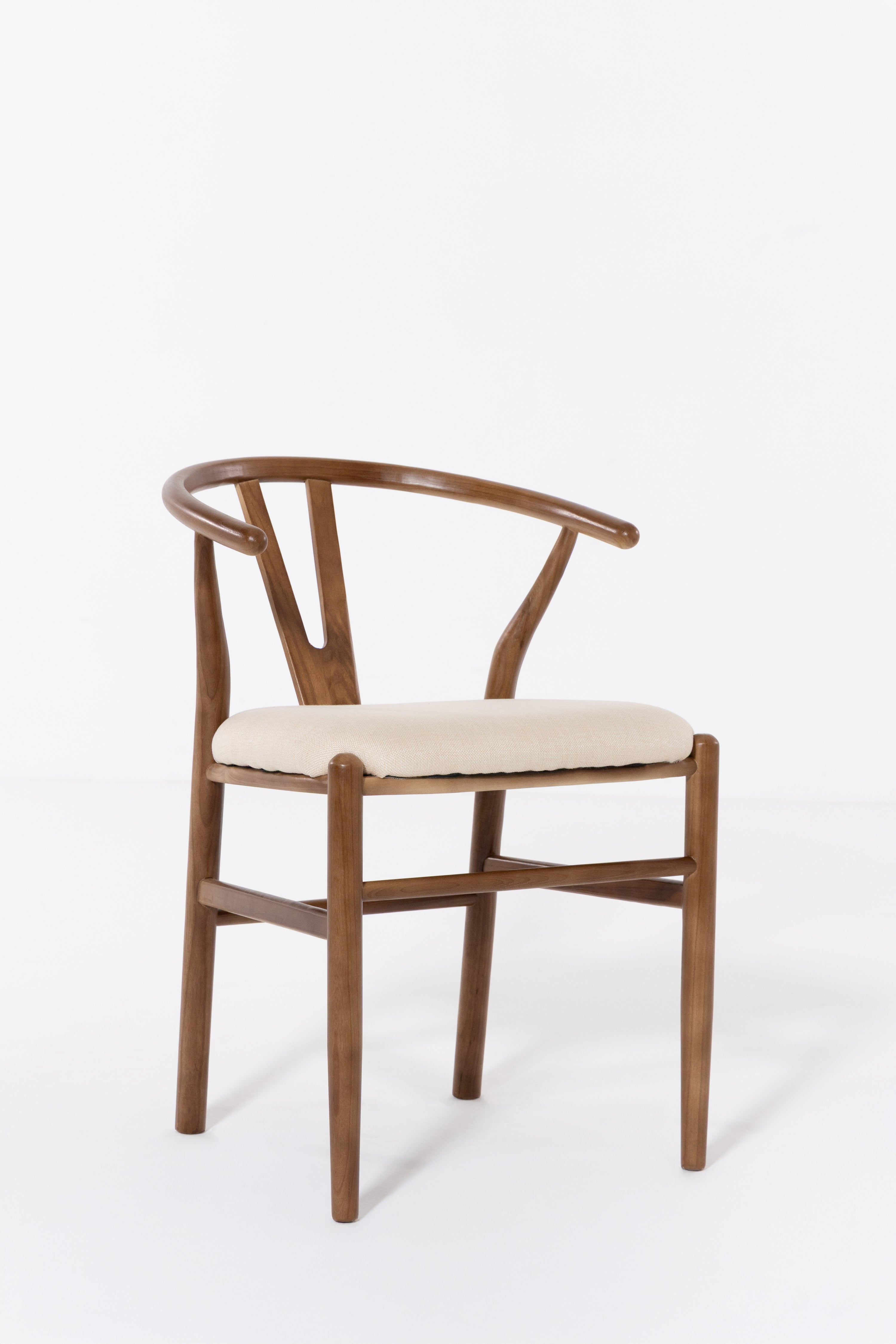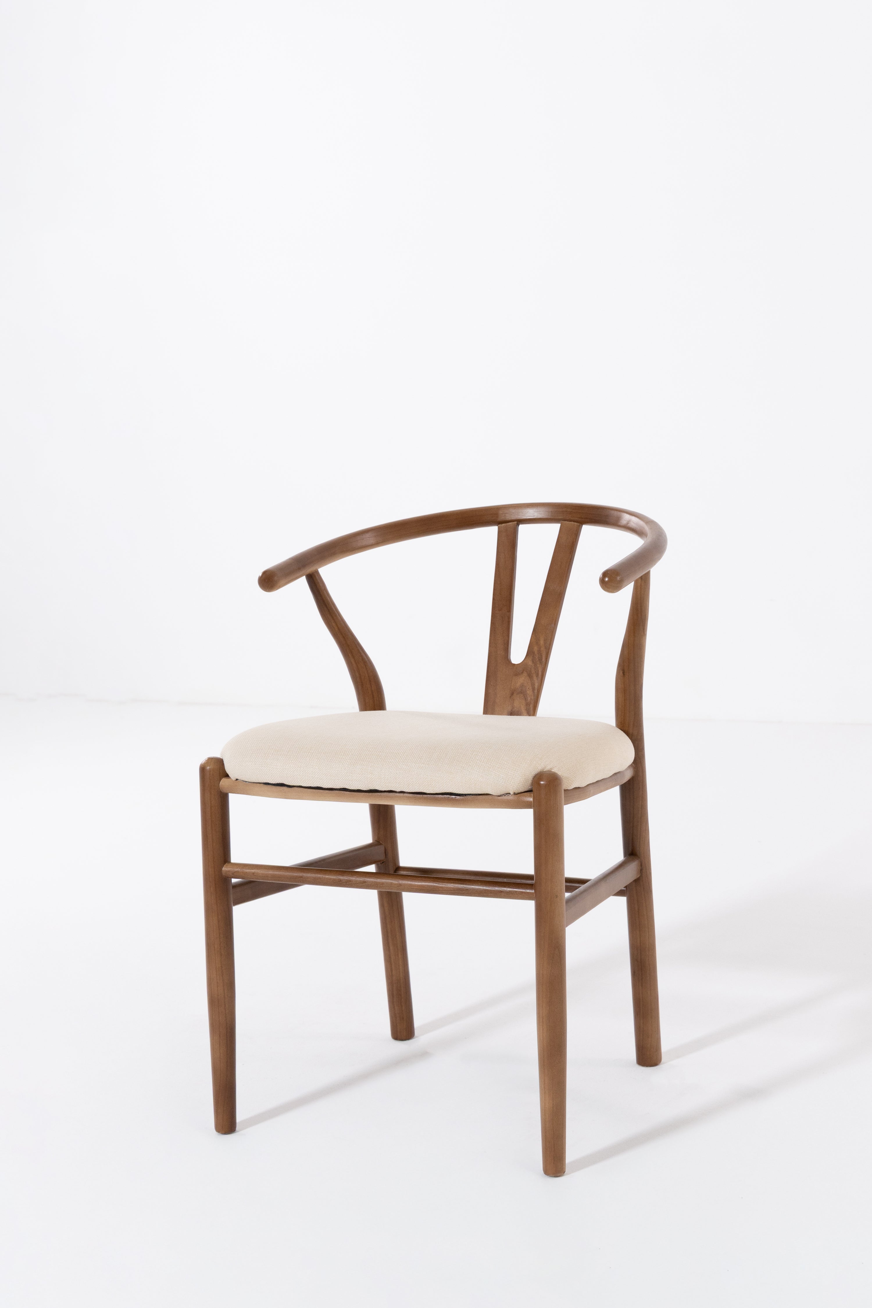 Shaped for unhurried meals, this wood dining chair pairs a warm, hand-sanded frame with a linen-look seat in soft beige. An arcing back wraps comfortably around the body, with sculpted supports that steady posture while you dine, read, or talk late. Rounded edges invite touch and the open base keeps things airy under the table. Its calm grain and clean lines suit modern, Scandi and Japandi rooms, easy to style with timber tops, stone, and neutral tableware. Finish wipes clean after everyday use.