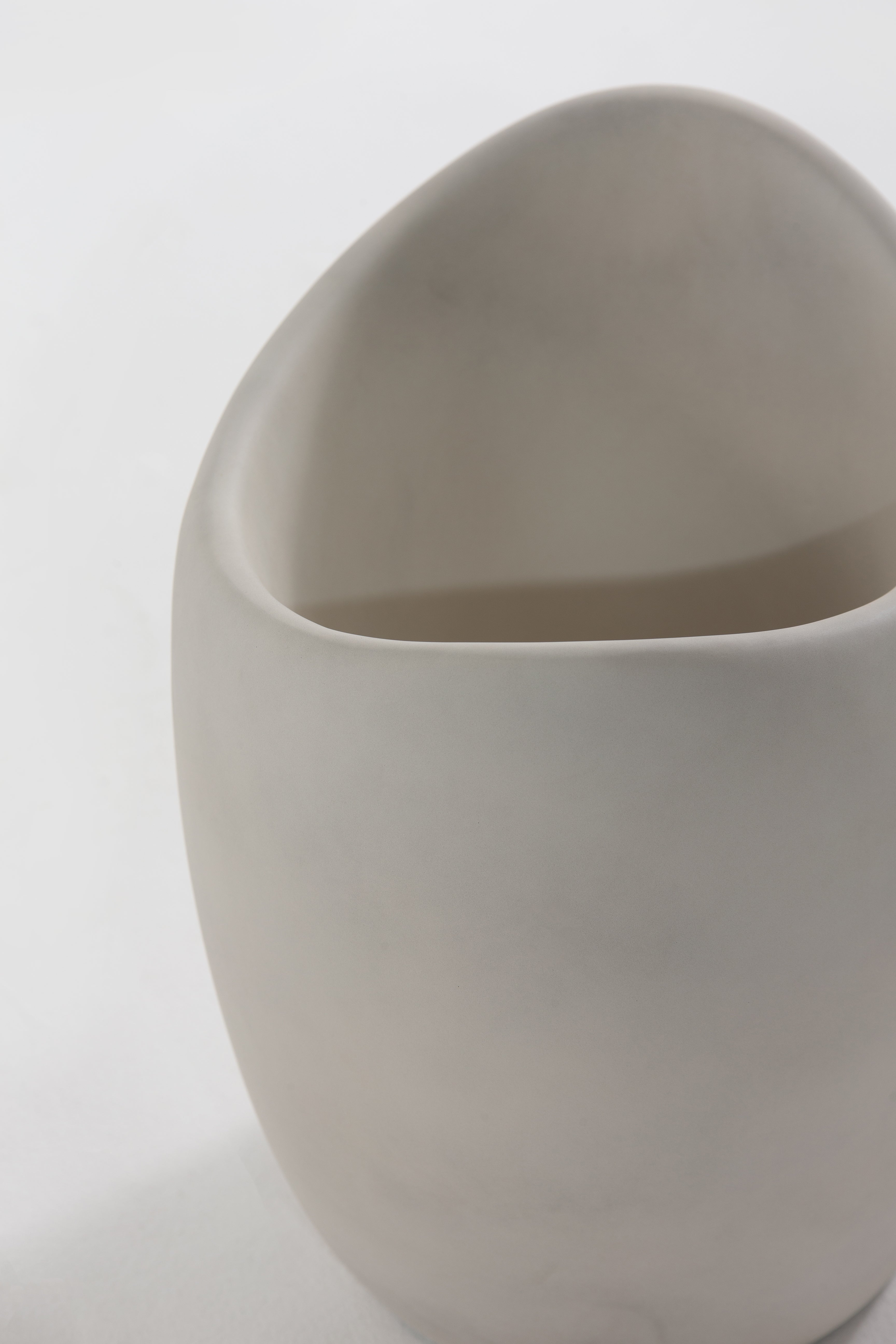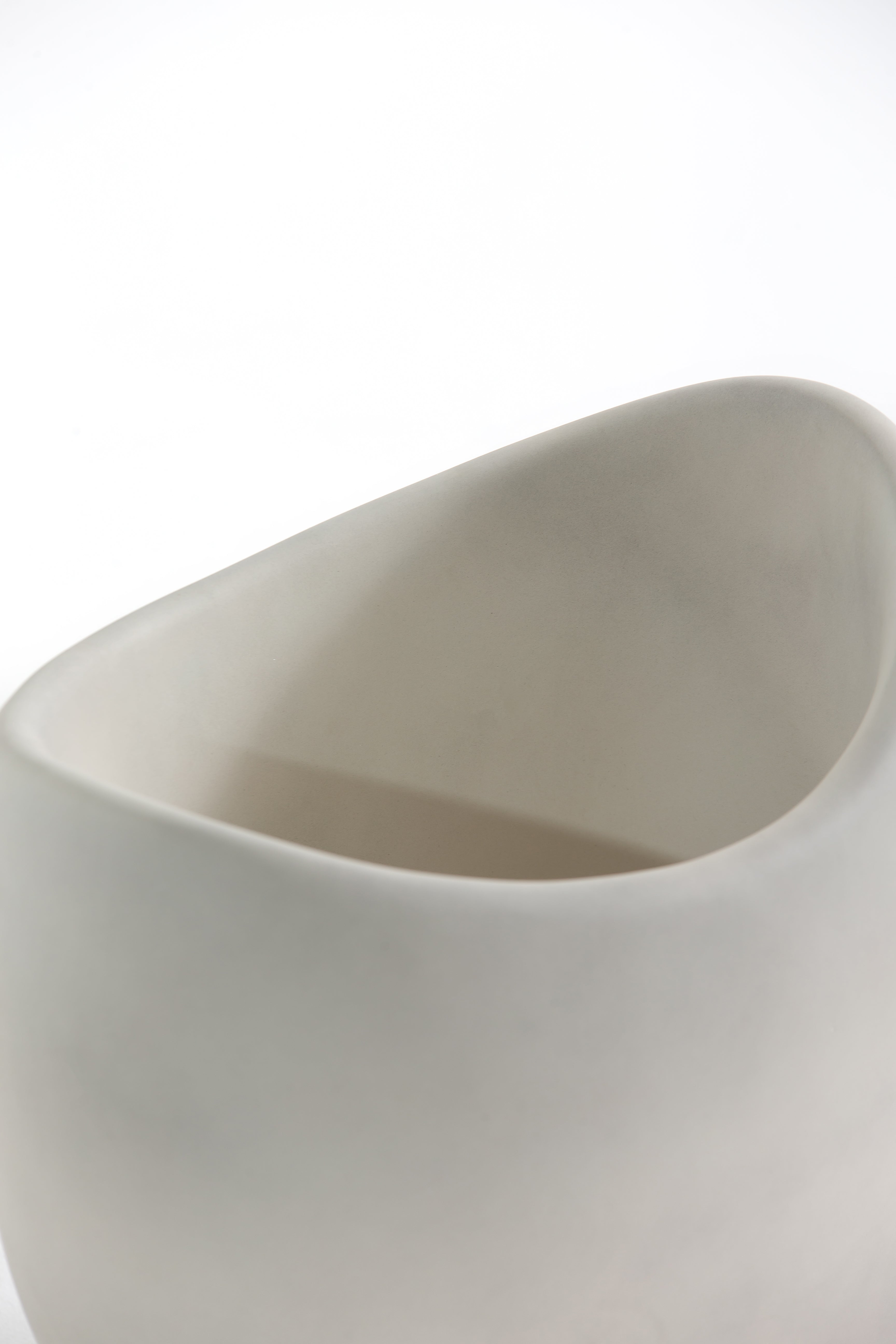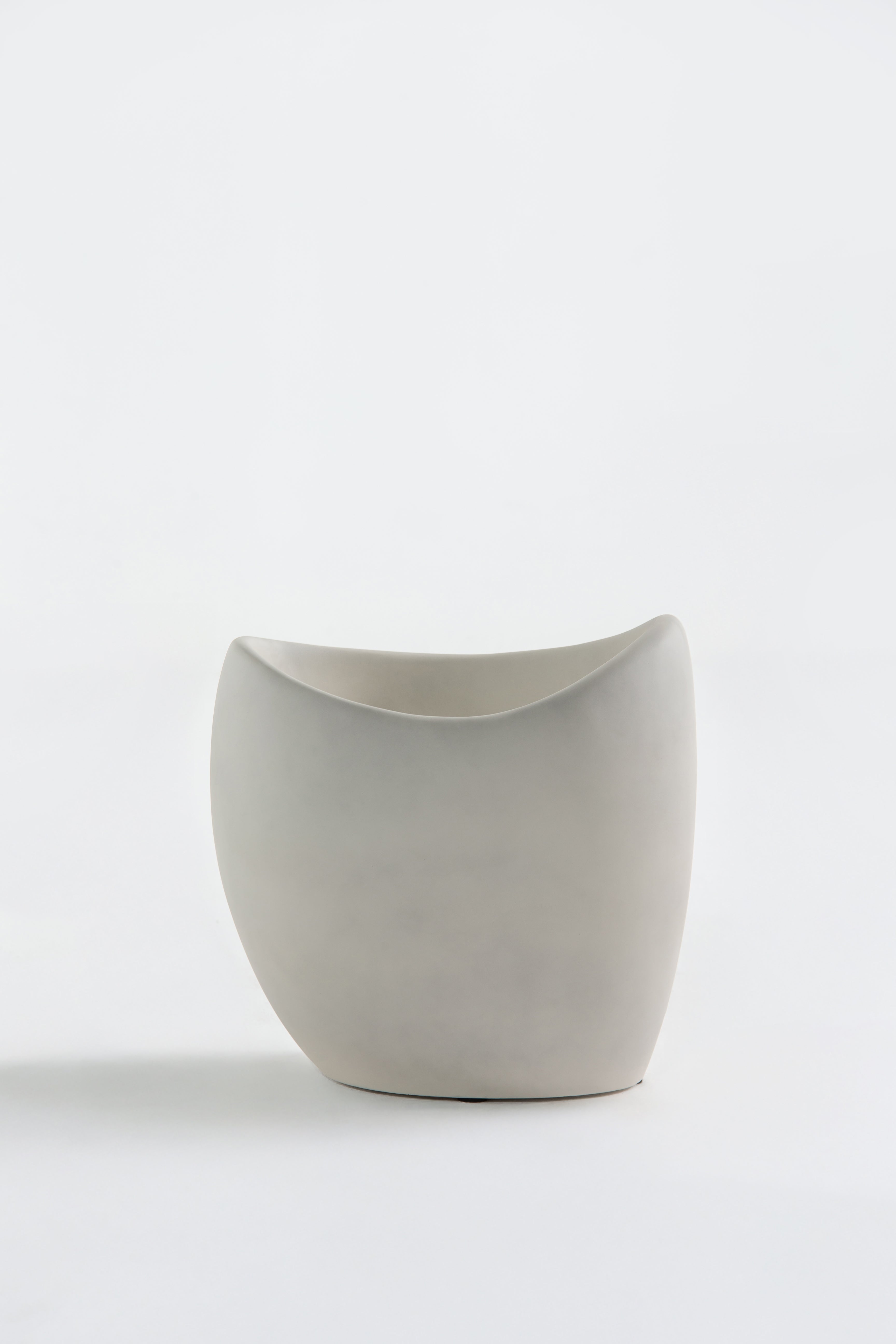 Sleek and sculptural, this off-white concrete planter introduces a soft yet striking silhouette to indoor or outdoor spaces. Designed with an organic, asymmetrical form and smooth matte finish, it serves as both a functional vessel and a decorative accent. Its minimalist curvature creates visual balance, making it ideal for displaying leafy greens, dried arrangements, or architectural plants. With a neutral tone that complements modern, coastal, and earthy aesthetics, this planter elevates styling with understated sophistication. Whether used solo or in a cluster, it blends effortlessly into curated environments with a calm, refined presence.