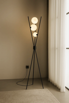 Illuminate your space with the modern charm of our Black 3 Bubble Tripod Floor Lamp. This sleek and stylish lamp features three bubble-shaped shades on a black tripod base, adding a contemporary touch to any room.