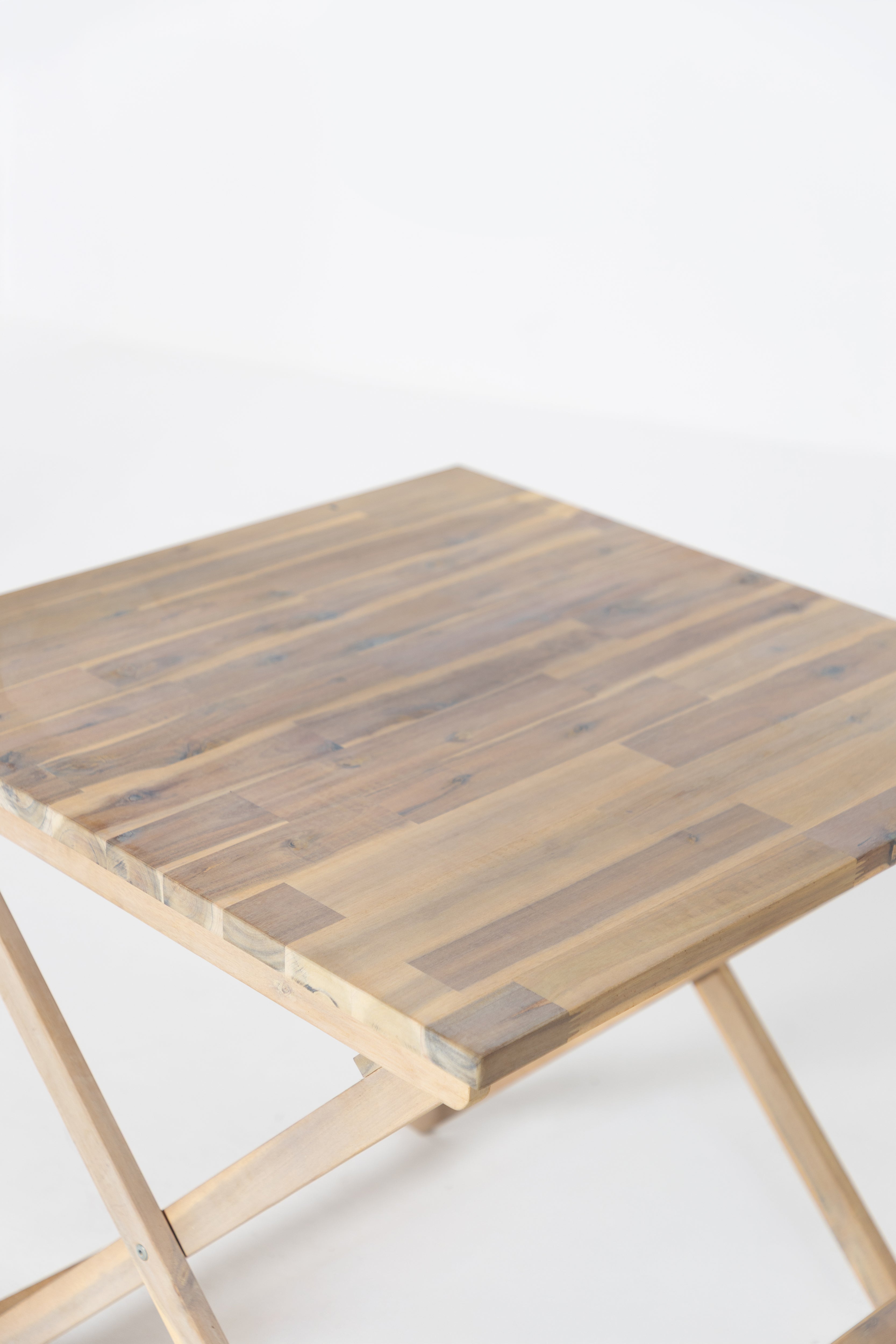 Bring natural warmth and versatility to your space with this beautifully crafted folding table, designed for both style and function. The smooth solid wood top highlights organic grain variations in soft white and earthy tones, enhanced by a refined matte finish that combines modern aesthetics with timeless charm. Its clean square shape rests atop sturdy cross-folding legs, offering stability while remaining easy to move and store. Whether used for a cozy dining setup, extra seating for guests, or as an accent surface, this table adds effortless elegance and practicality to any room.