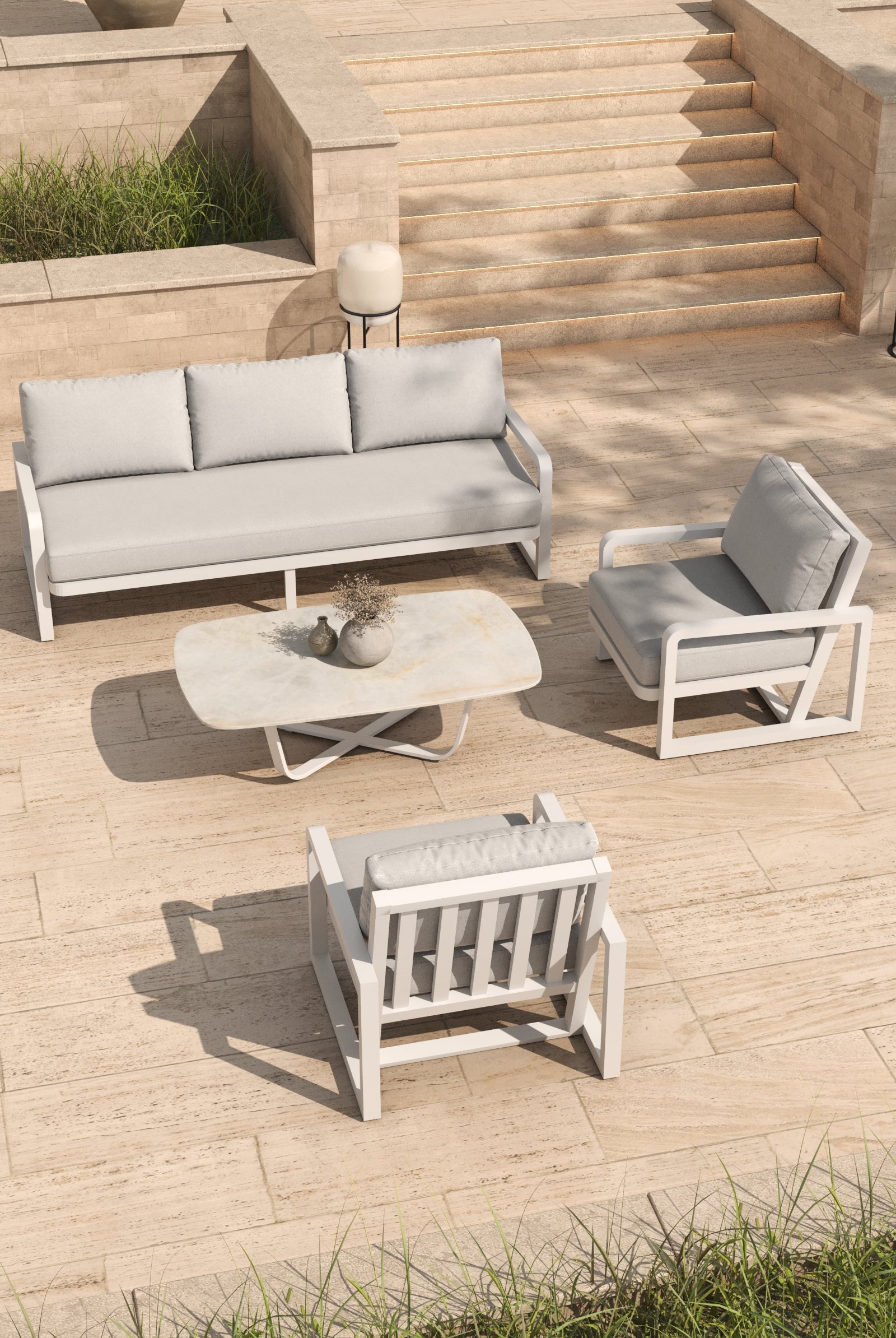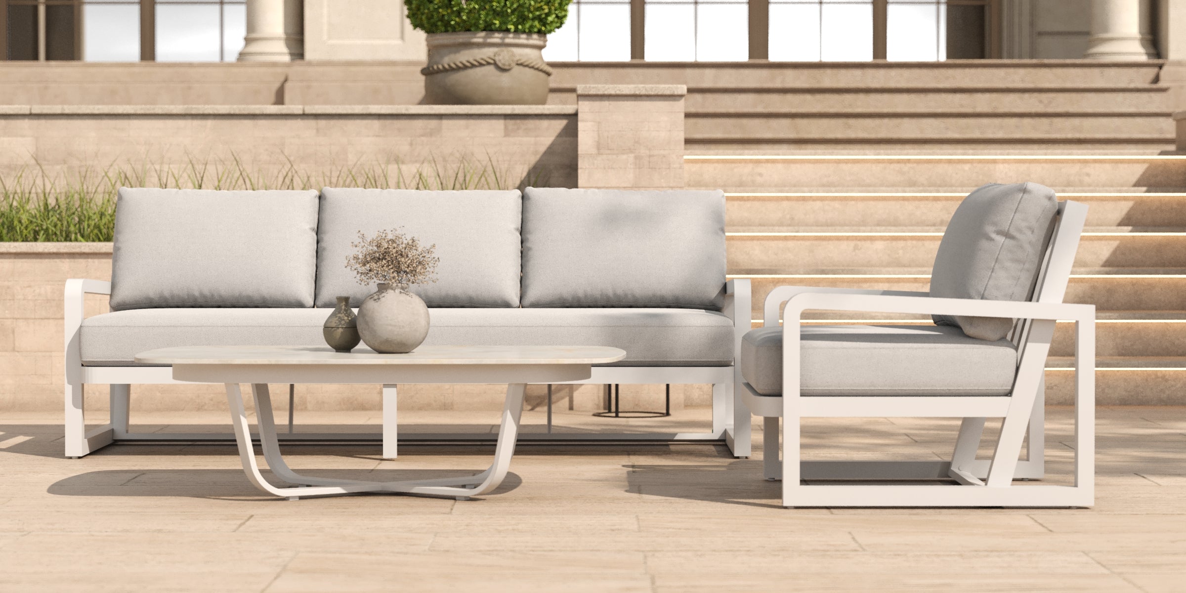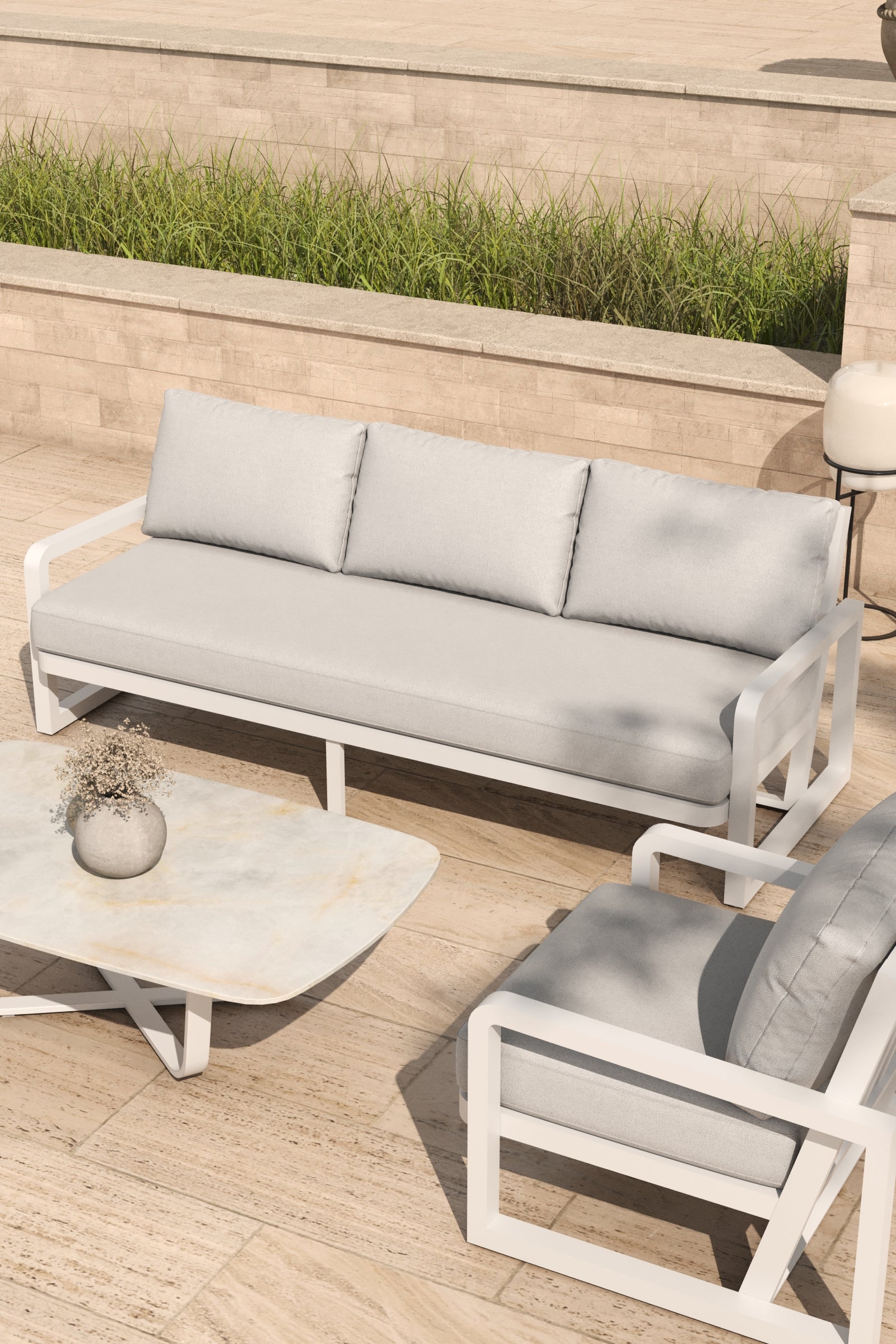 Step into your patio and imagine yourself at the center of an elegant coastal escape. This outdoor sofa set with coordinating coffee table blends modern lines with a soft ash white finish, creating a timeless look that brightens any space. The smooth texture, balanced proportions, and inviting shape make it perfect for hosting gatherings, enjoying morning coffee, or relaxing by the pool. Designed for both style and durability, the neutral color palette adapts effortlessly to gardens, terraces, and contemporary outdoor spaces, giving you a refined setting to enjoy life’s best moments.