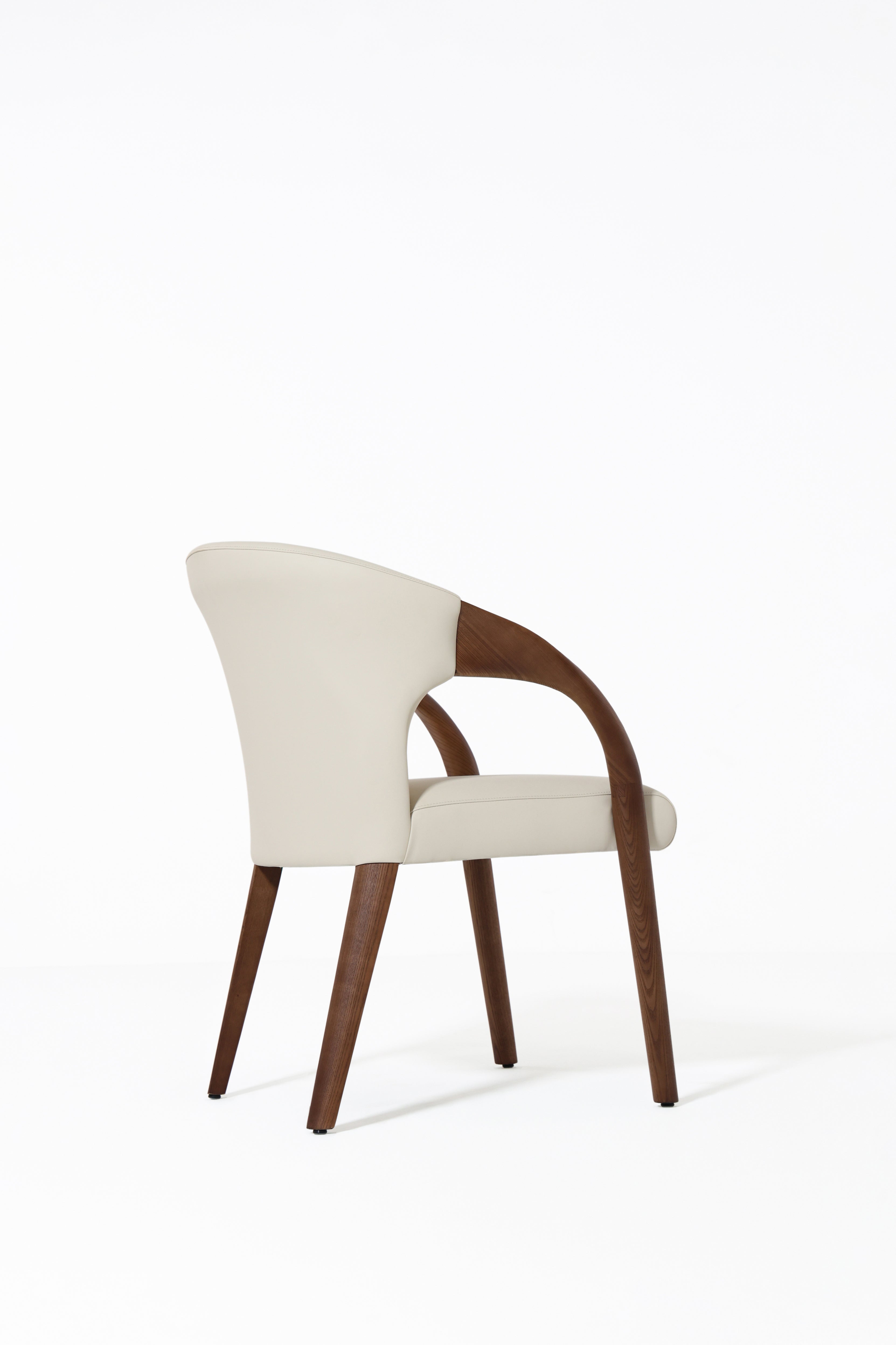 Bring refined elegance to your dining space with a chair that unites sculptural design and timeless comfort. Crafted with a smooth curved wooden frame in a warm finish, it cradles a seat and back upholstered in soft cream fabric for a sophisticated contrast. The open-arm silhouette adds an airy, modern touch while providing support and style. Versatile and durable, this piece complements both contemporary and classic interiors, making every dining experience feel elevated.