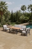 Imagine stepping into your garden and finding a refined outdoor Lounge setup that instantly elevates the mood of your space. The sleek carbon-black frame, warm teak-style armrests, and inviting sand grey cushions come together to create a balanced blend of comfort and modern character. The spacious Lounge table anchors the scene, offering the perfect surface for family meals, evening gatherings, or morning coffee outdoors. Designed for everyday use and timeless appeal, the clean lines, smooth textures, and soft neutral tones make this set a versatile choice for patios, terraces, and modern outdoor living turning each moment outside into a relaxed and stylish experience.
