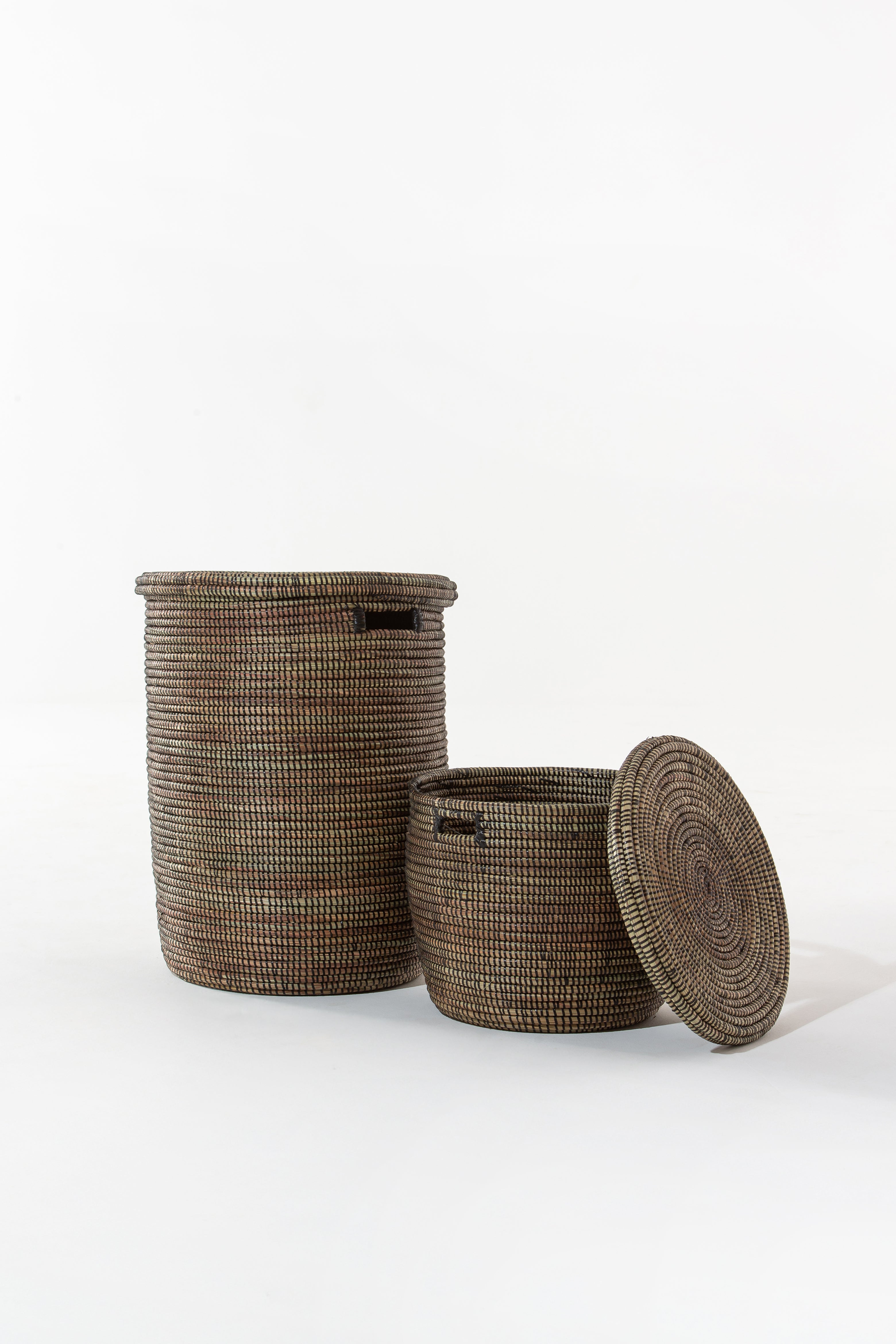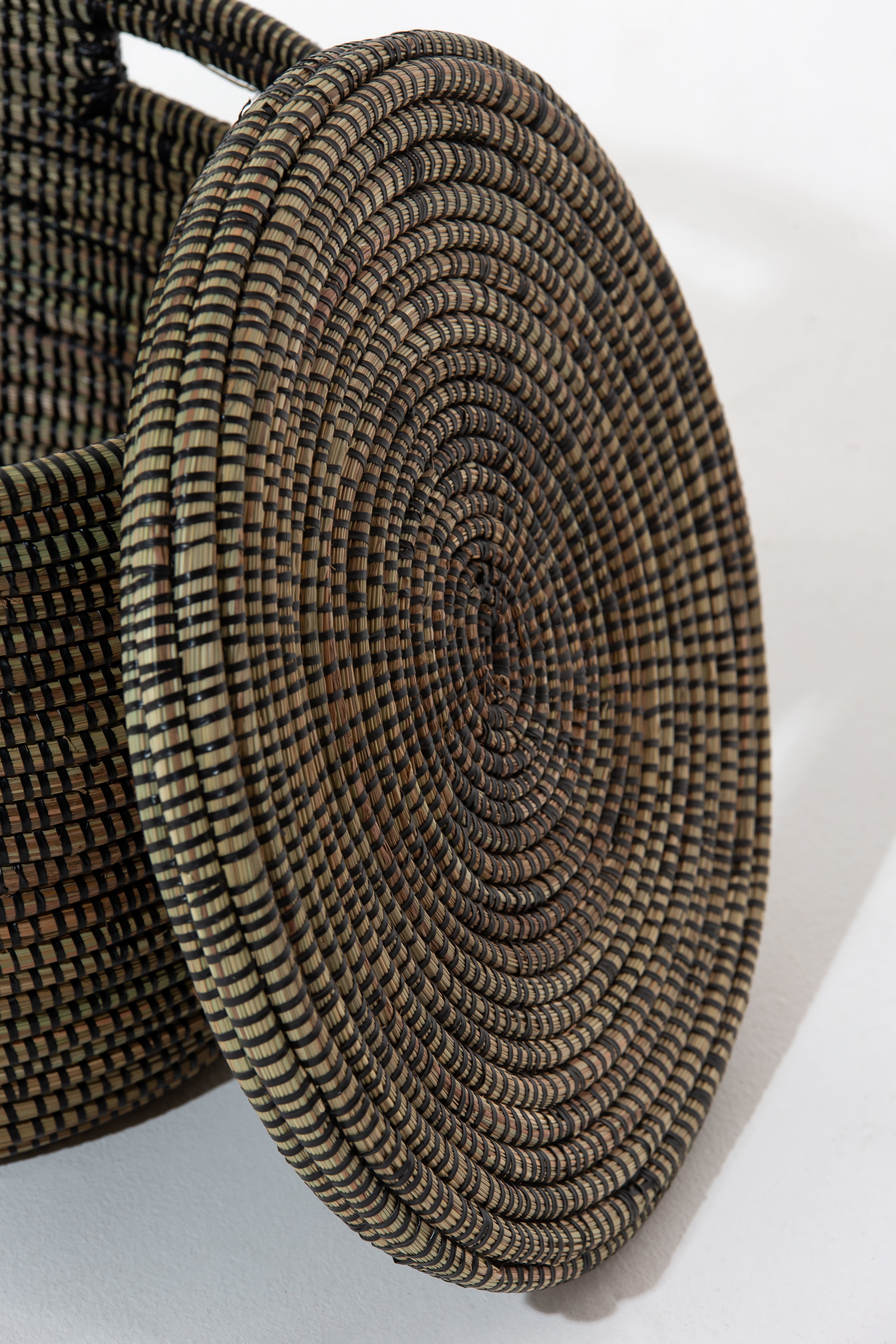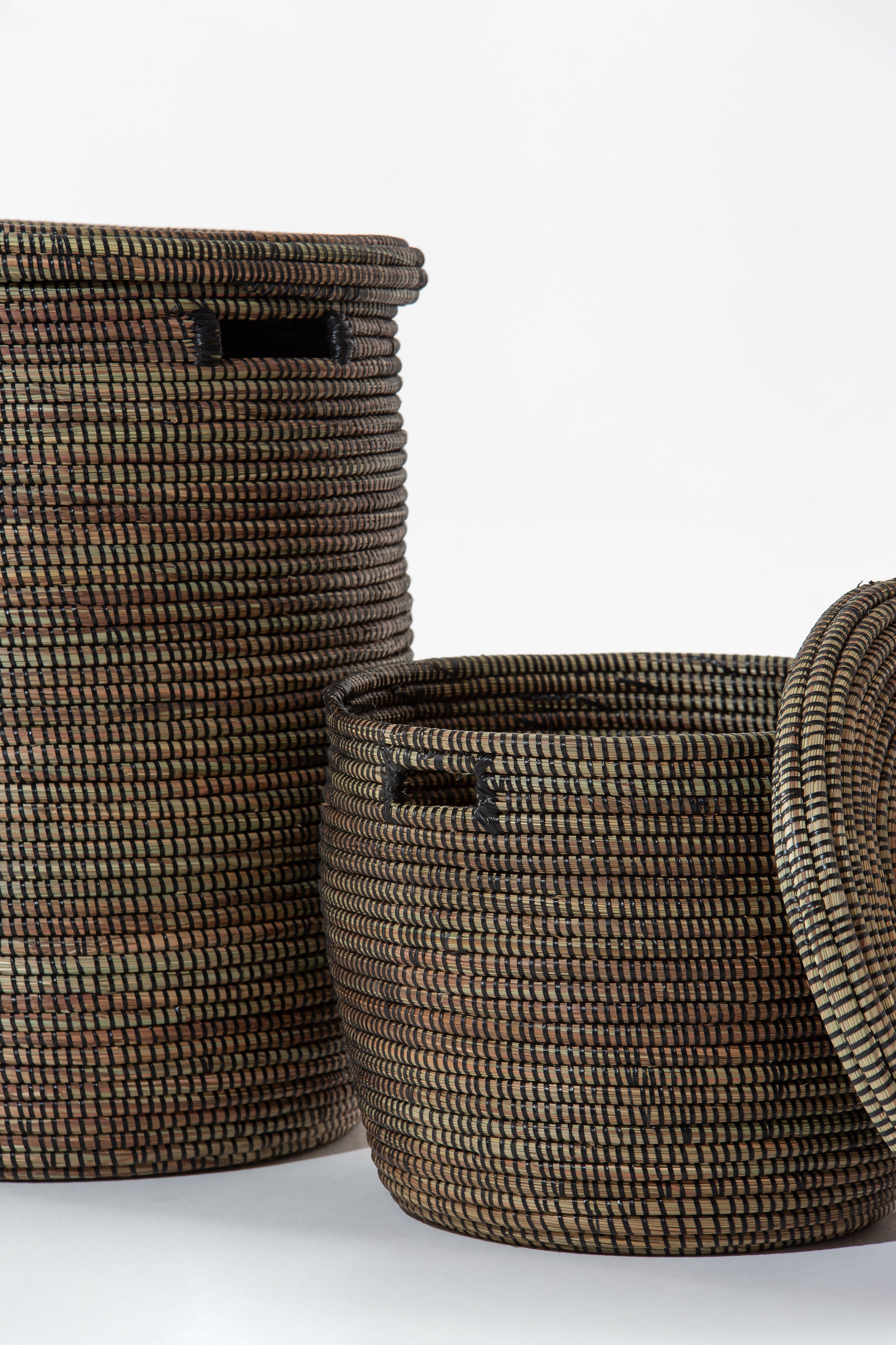 These baskets are handwoven by a group of women living in villages in Senegal. Made out of dried local grass and eco friendly PP plastic.