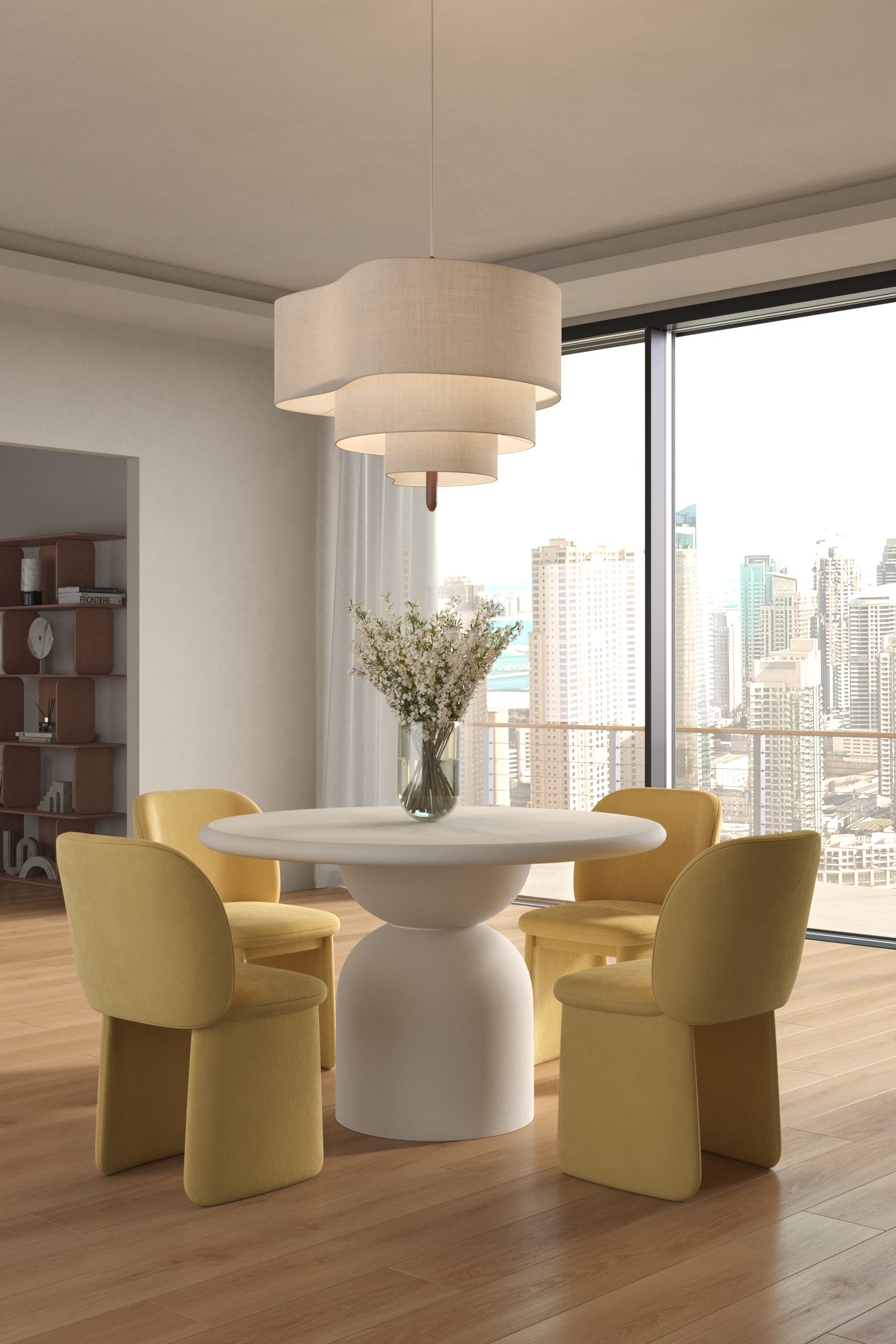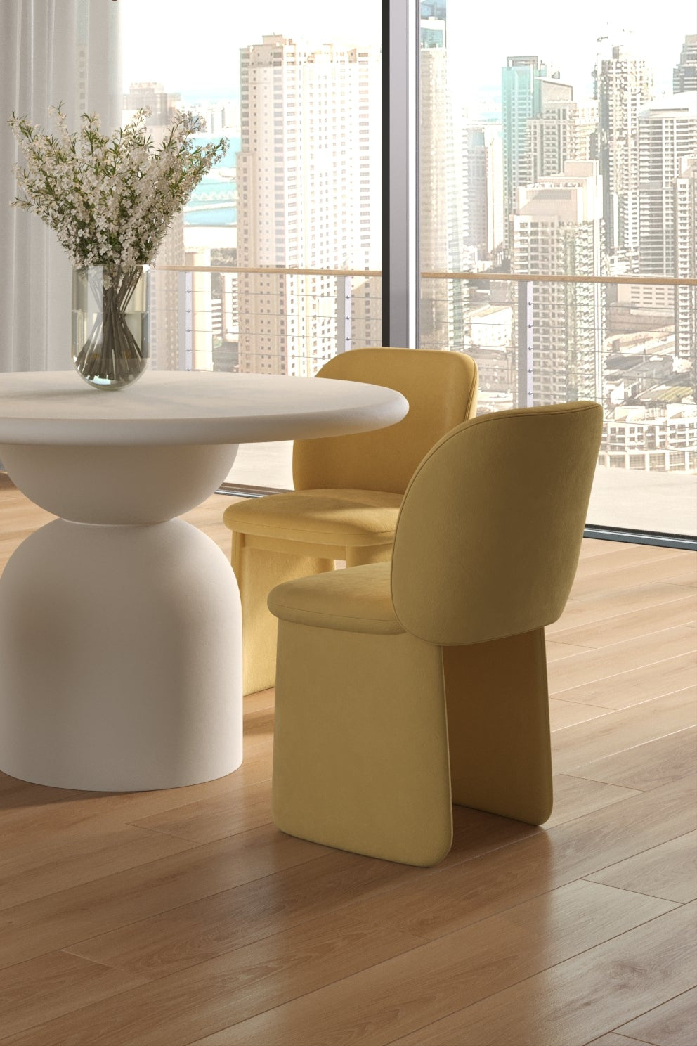 Transform your dining experience with a statement chair wrapped in plush yellow velvet, designed to bring both comfort and bold personality to your space. Its smooth texture and soft cushioning invite you to linger longer, while the sculptural shape adds a modern, artistic touch to your dining room. The vibrant citrine hue reflects light beautifully, creating a warm and inviting atmosphere, whether paired with a sleek table or used as an accent seat. Crafted for durability and ergonomic comfort, this chair elevates every meal, making you the centerpiece of stylish living.