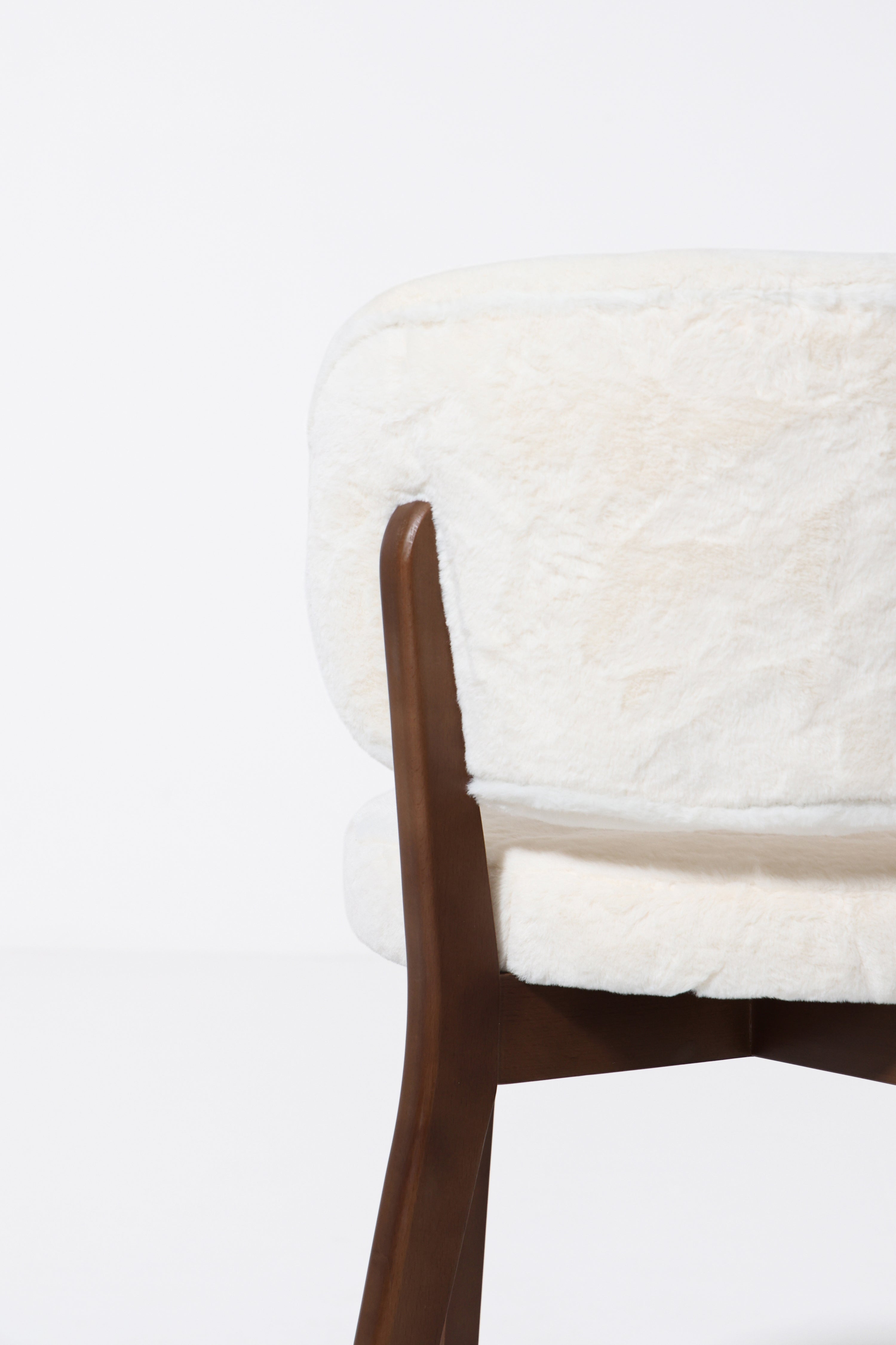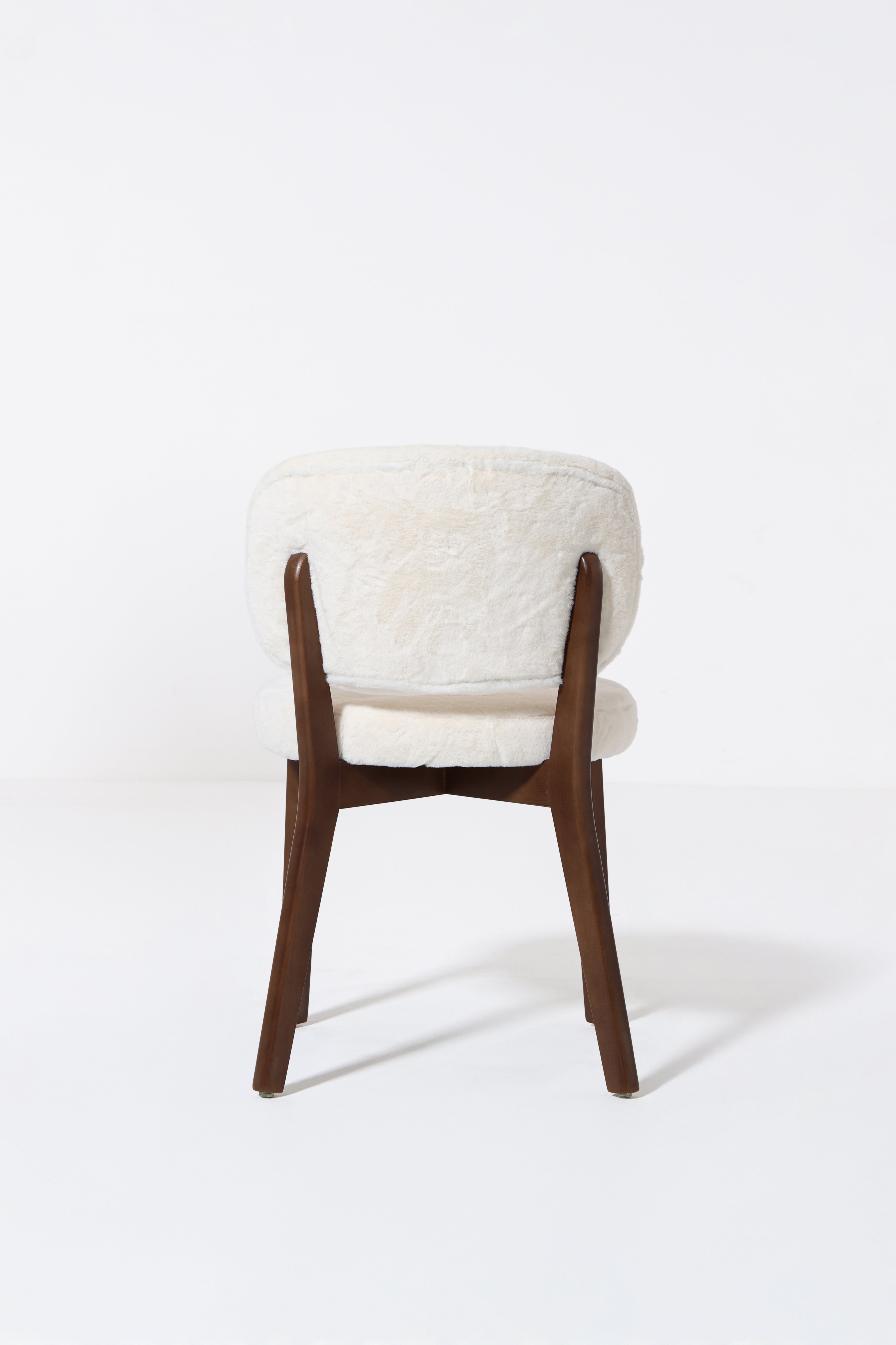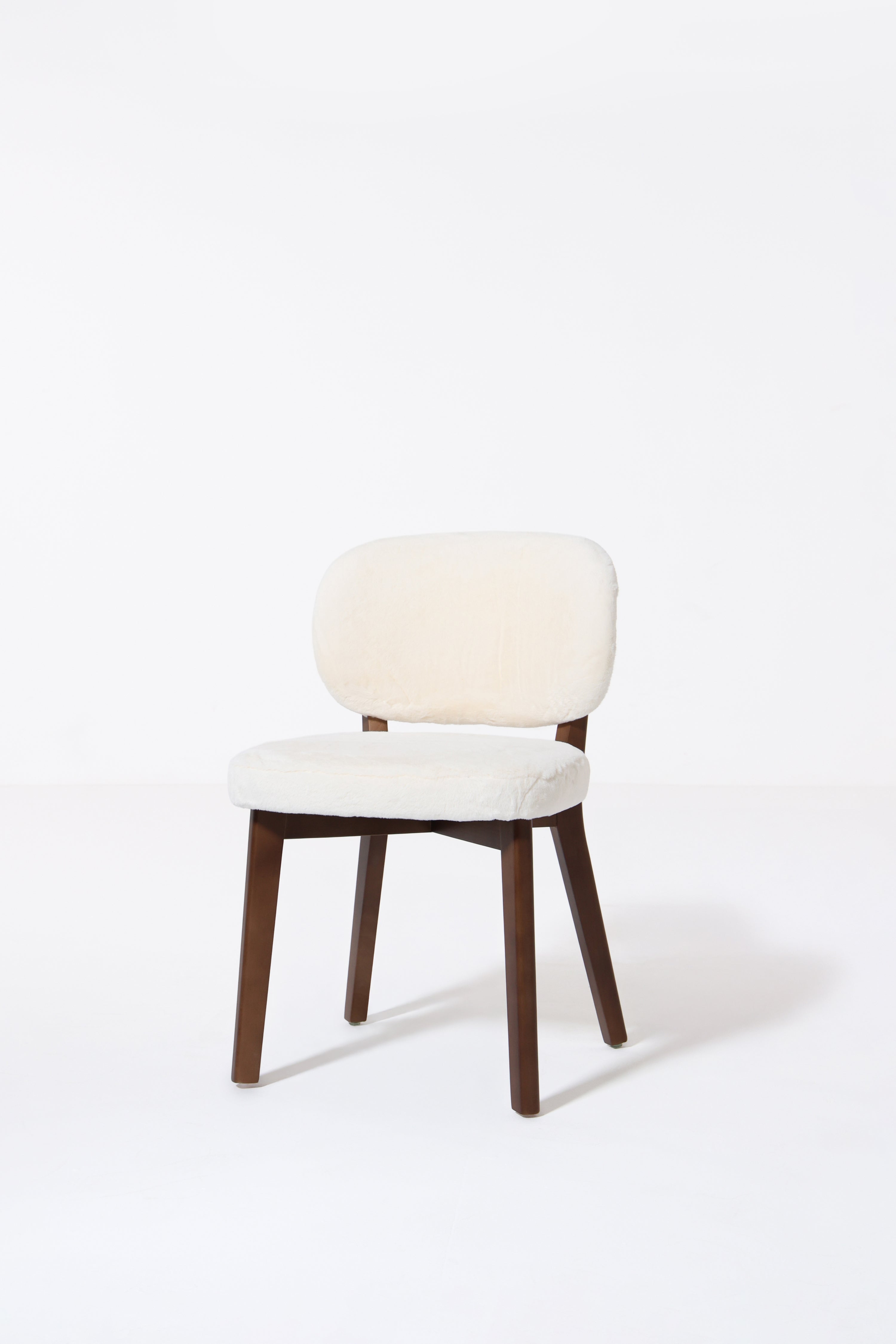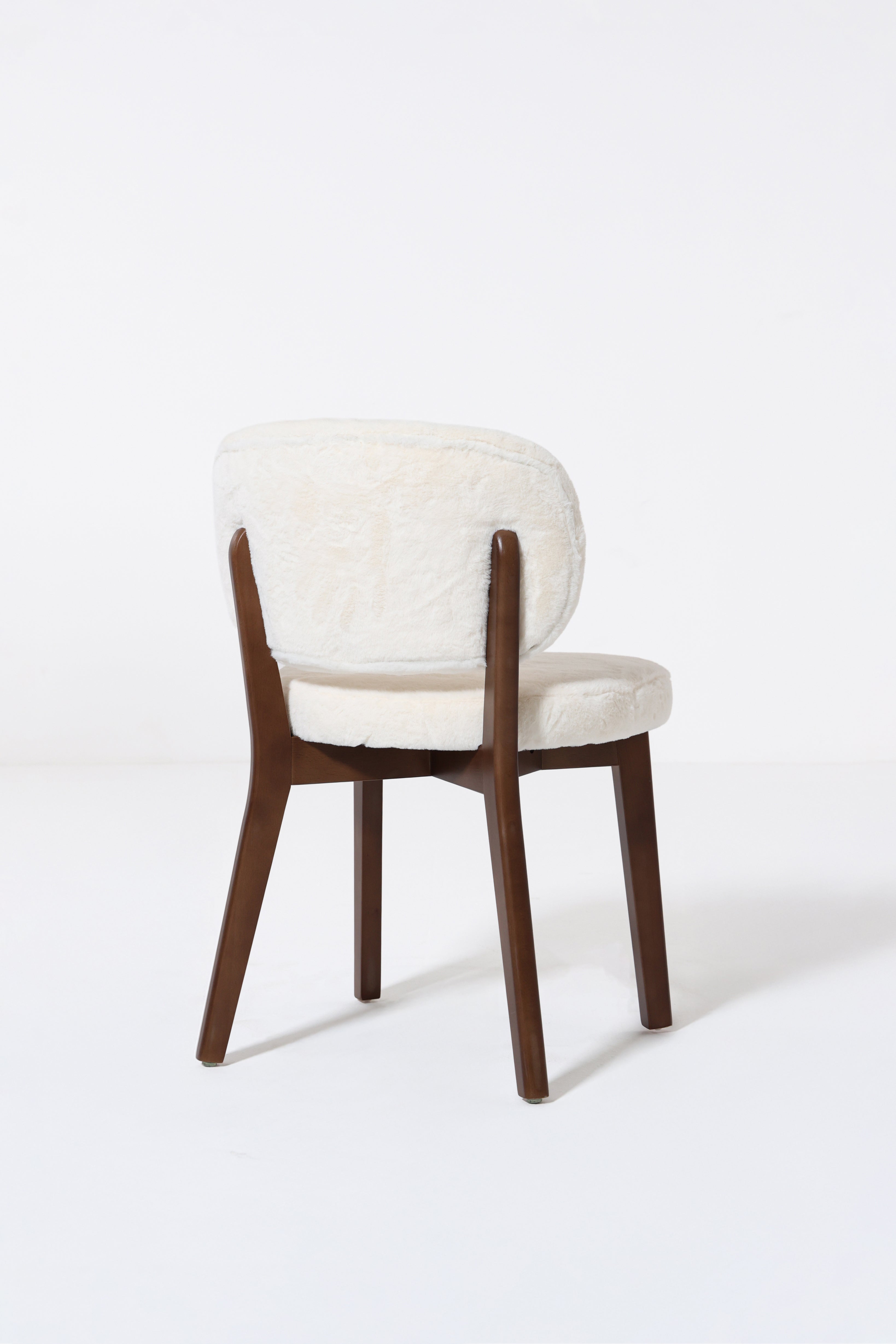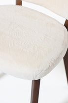 Imagine yourself dining in comfort on a chair that blends warmth and modern elegance. The rich wooden frame with angled legs brings strength and timeless appeal, while the plush cream upholstered seat and rounded backrest offer a cozy, inviting feel. Its minimalist silhouette and soft texture make it versatile enough to complement both contemporary and retro-inspired interiors, elevating everyday dining into a stylish experience.