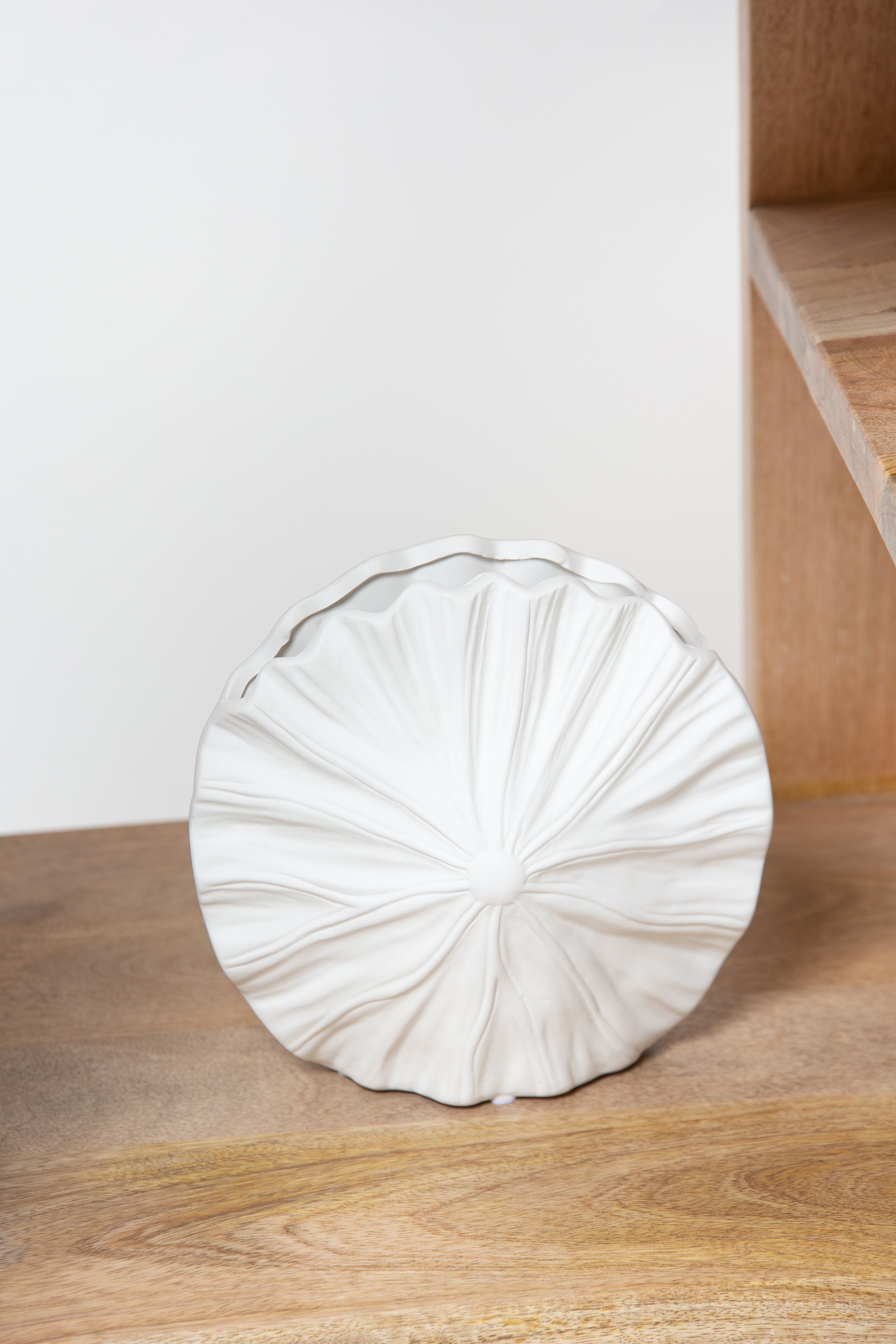 Illuminate your living space with the serene elegance of the Dawn Petal Ceramic Vase. This exquisite decorative vase features a unique organic, fan-like, or petal shape, reminiscent of a delicate opening bloom, crafted in a soft, matte off-white or light gray ceramic. Its defining characteristic is the intricate fluted or ribbed texture radiating from the center, adding a sophisticated tactile and visual appeal. Imagine yourself effortlessly styling your coffee table, bookshelf, or console, as this modern minimalist vase becomes a stunning focal point. Perfect for showcasing a single stem or as a standalone art piece, this versatile ceramic decor brings a touch of contemporary, Scandinavian, or natural aesthetic to your home, reflecting your refined taste.
