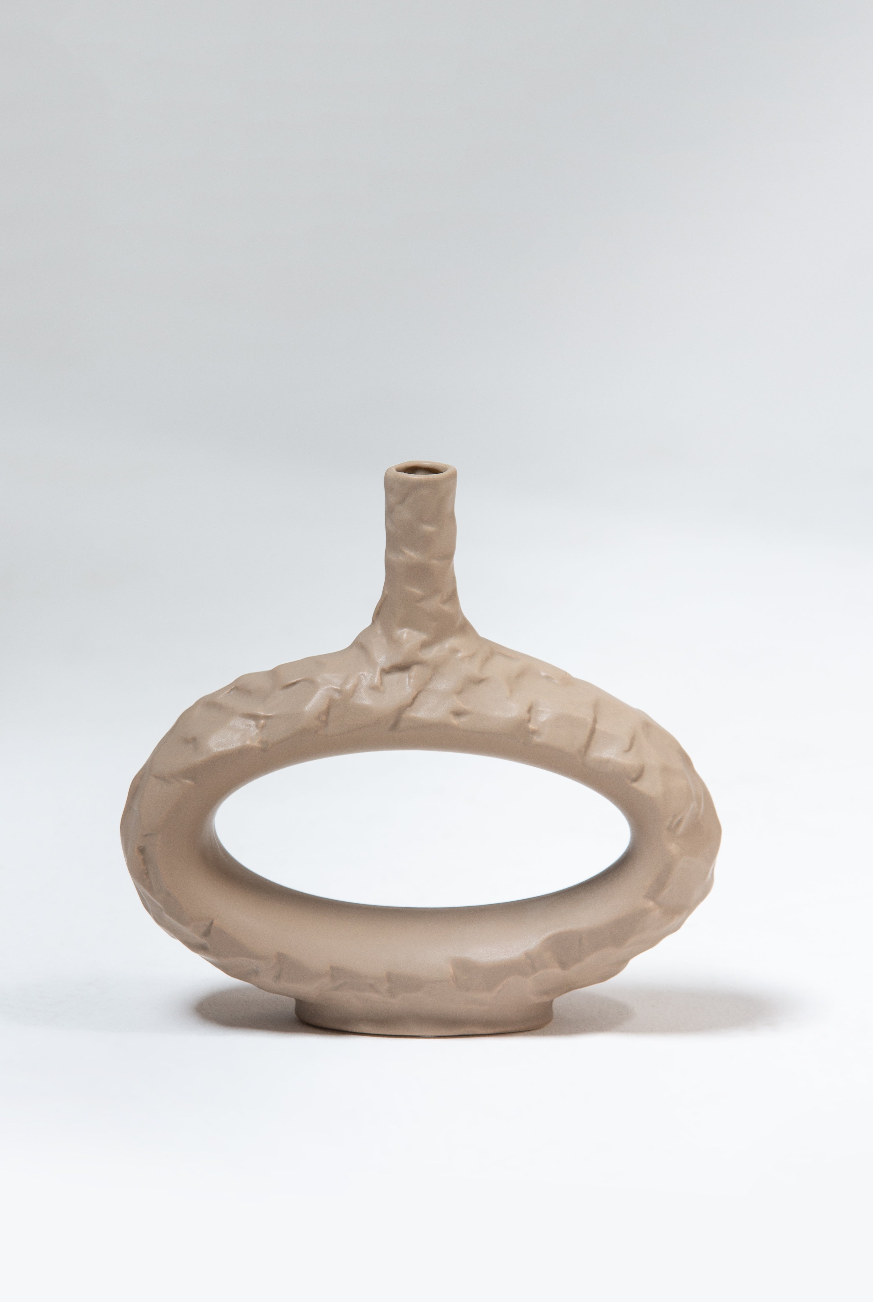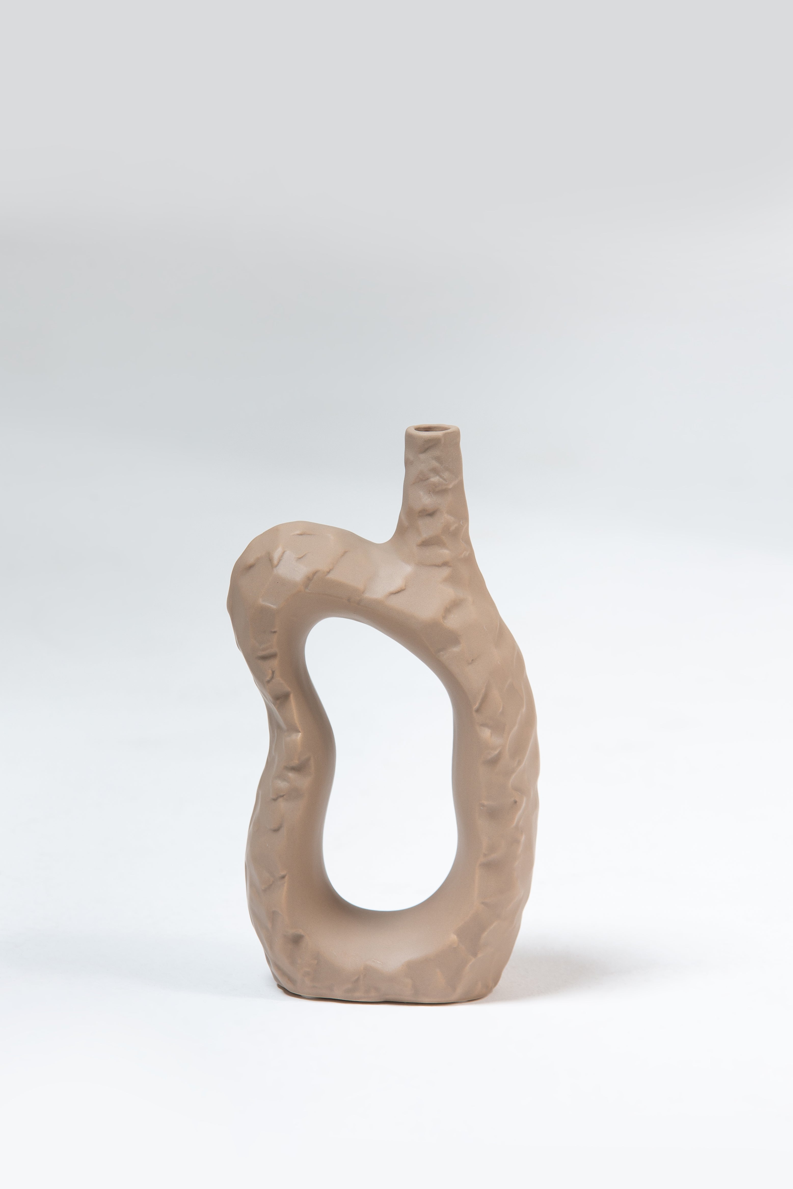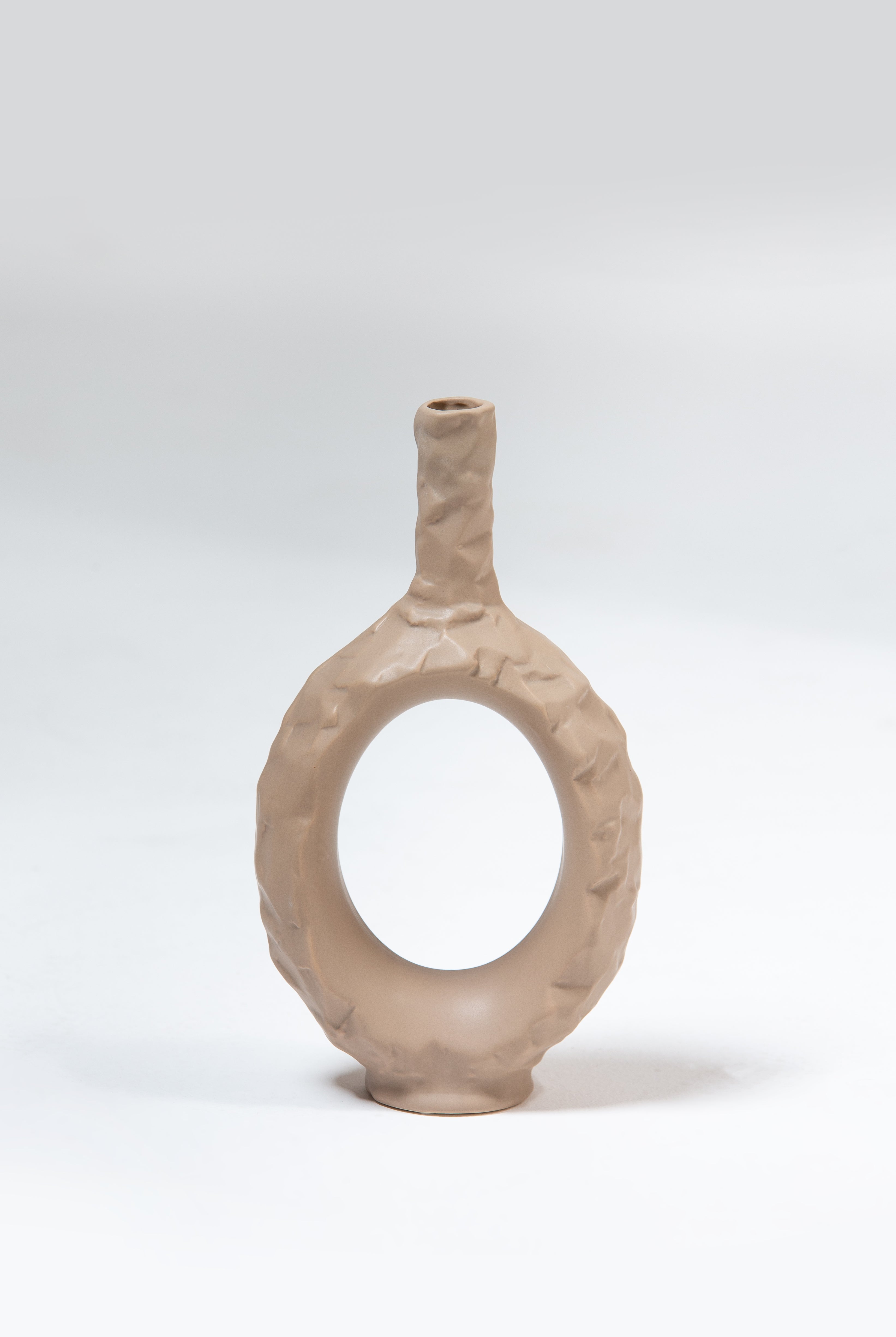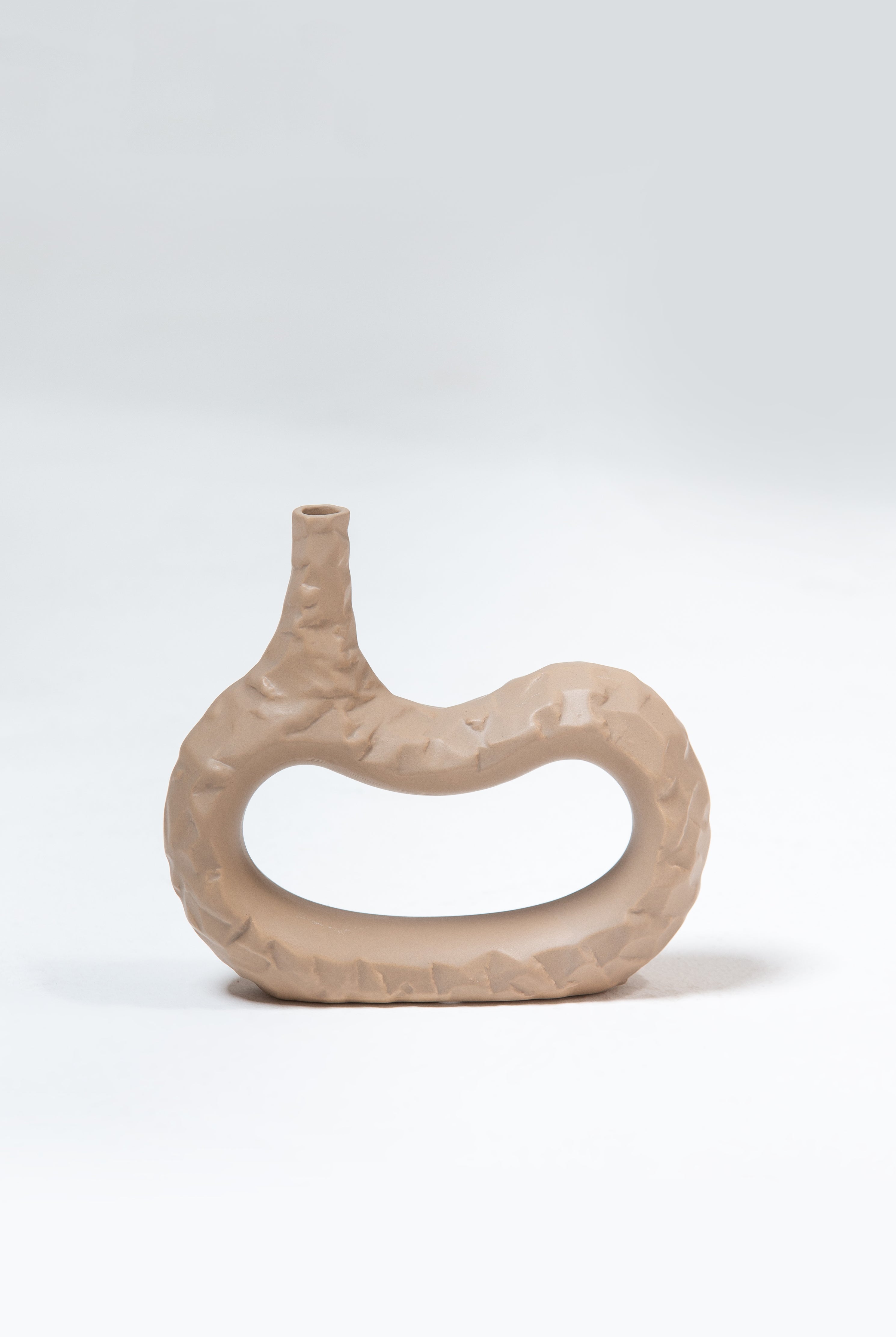 Bring sculptural beauty into your space with this uniquely meandering ceramic vase. Designed with a looped silhouette and raw, textured finish, it adds artistic dimension to minimalist shelves, coffee tables, or console displays. Its organic shape and earthy matte surface make it a perfect decorative accent for modern interiors that appreciate asymmetry and handcrafted appeal. Let this statement piece be the conversation starter your home deserves.