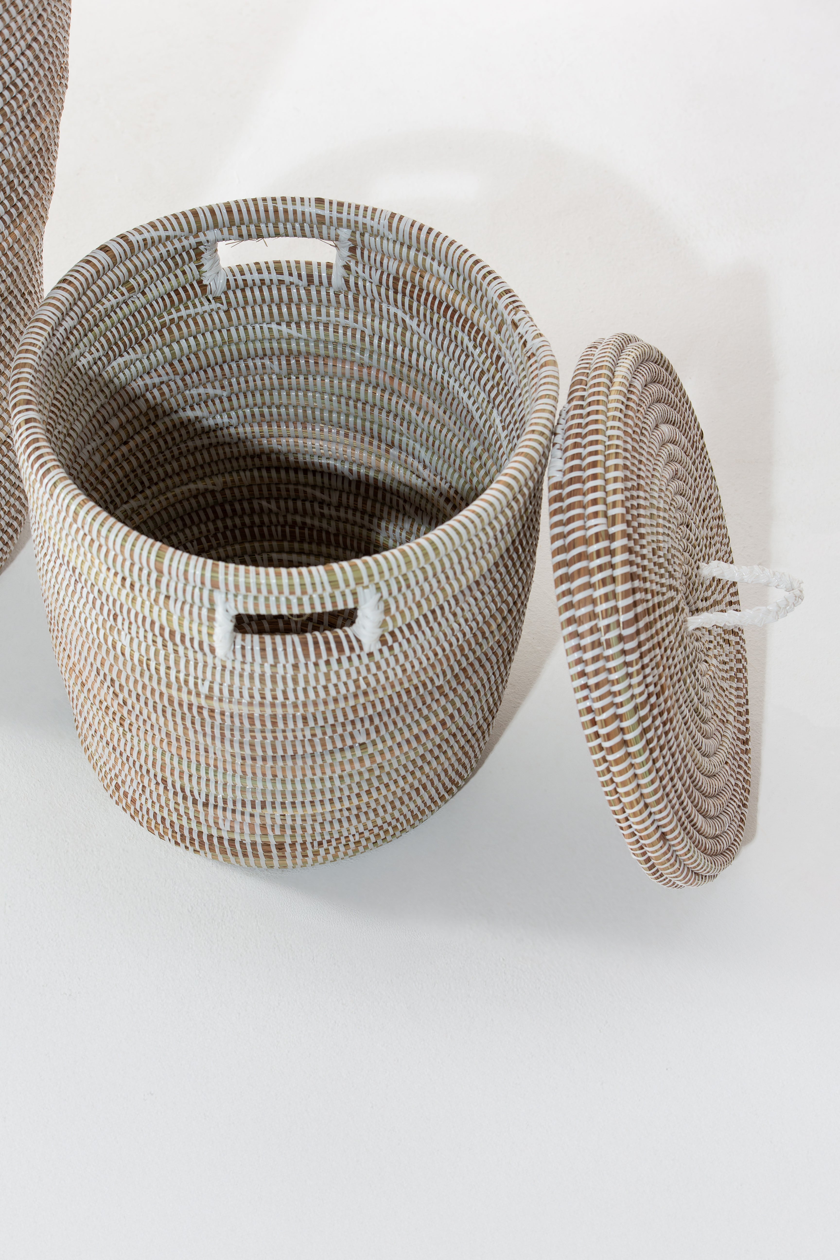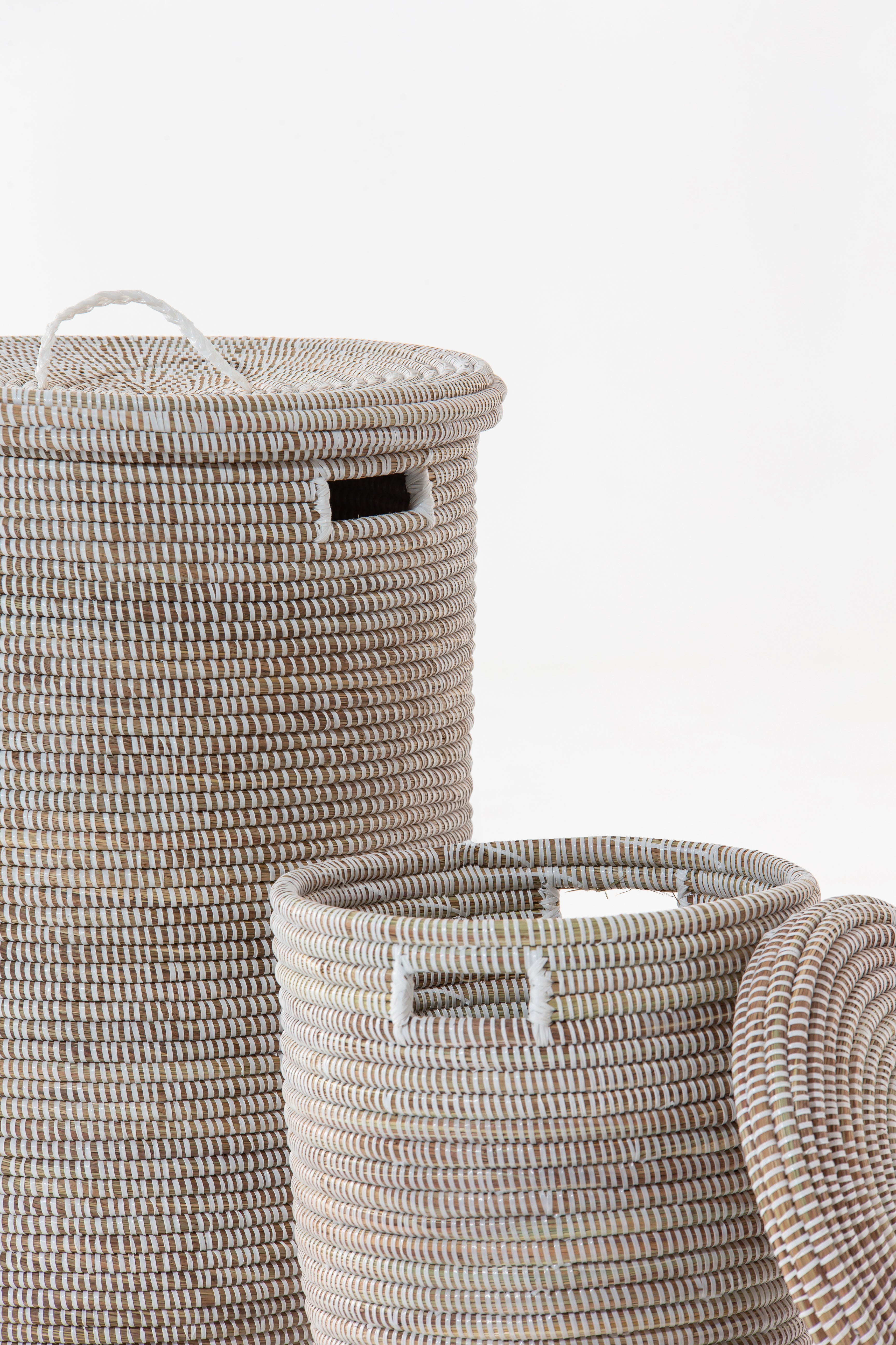 These baskets are handwoven by a group of women living in villages in Senegal. Made out of dried local grass and eco friendly PP plastic.