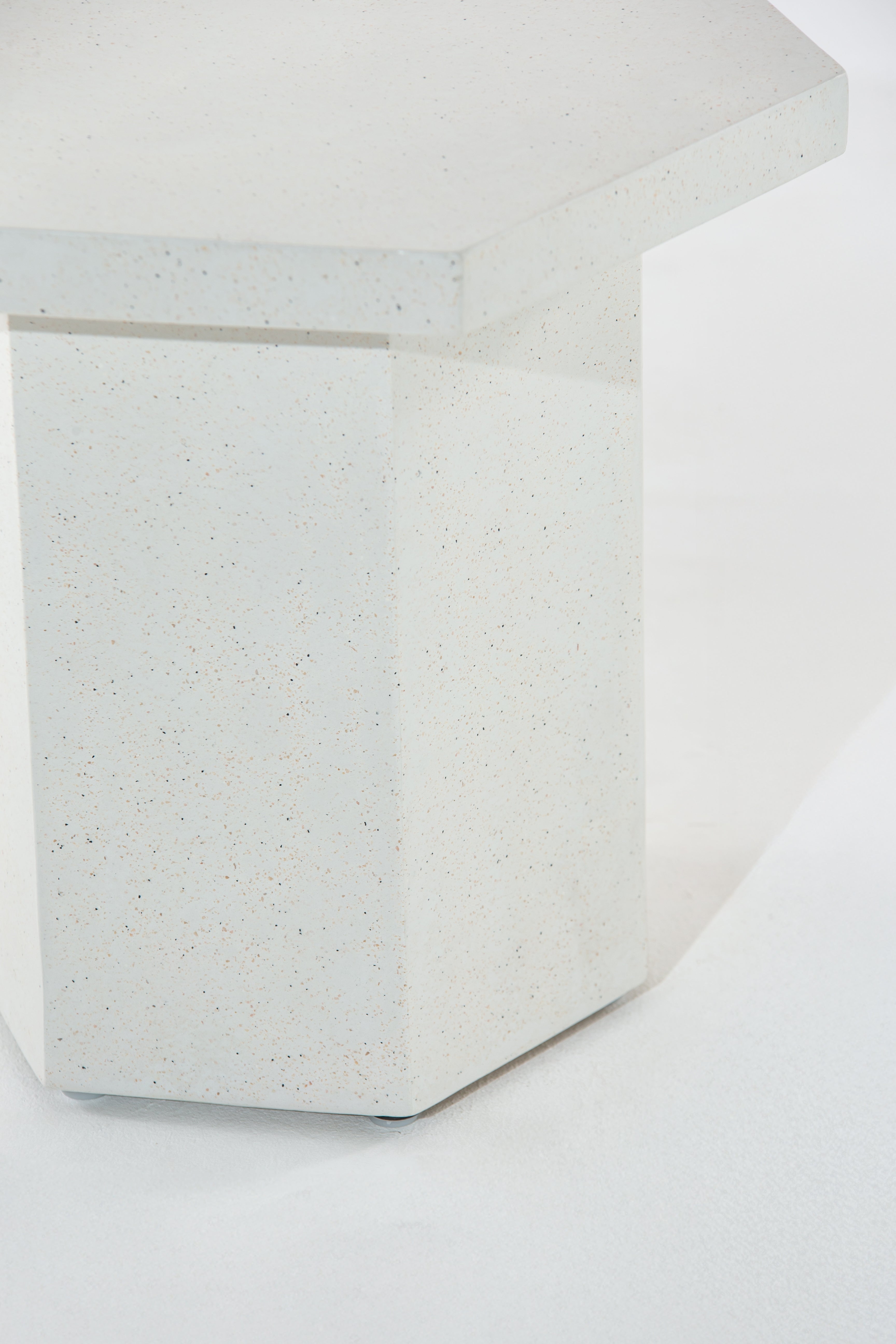 Introduce a refined edge to your space with our Hexagonal Micro Concrete Side Table—a handcrafted piece that blends contemporary design with minimalist beauty. Made from high-quality micro concrete, this table offers a lighter yet equally durable alternative to traditional concrete, with a smoother, more polished finish. The bold hexagonal top and monolithic base create a strong architectural profile, making it an eye-catching addition to any room. Whether used as a side table, accent pedestal, or statement piece, it enhances your décor with effortless style.