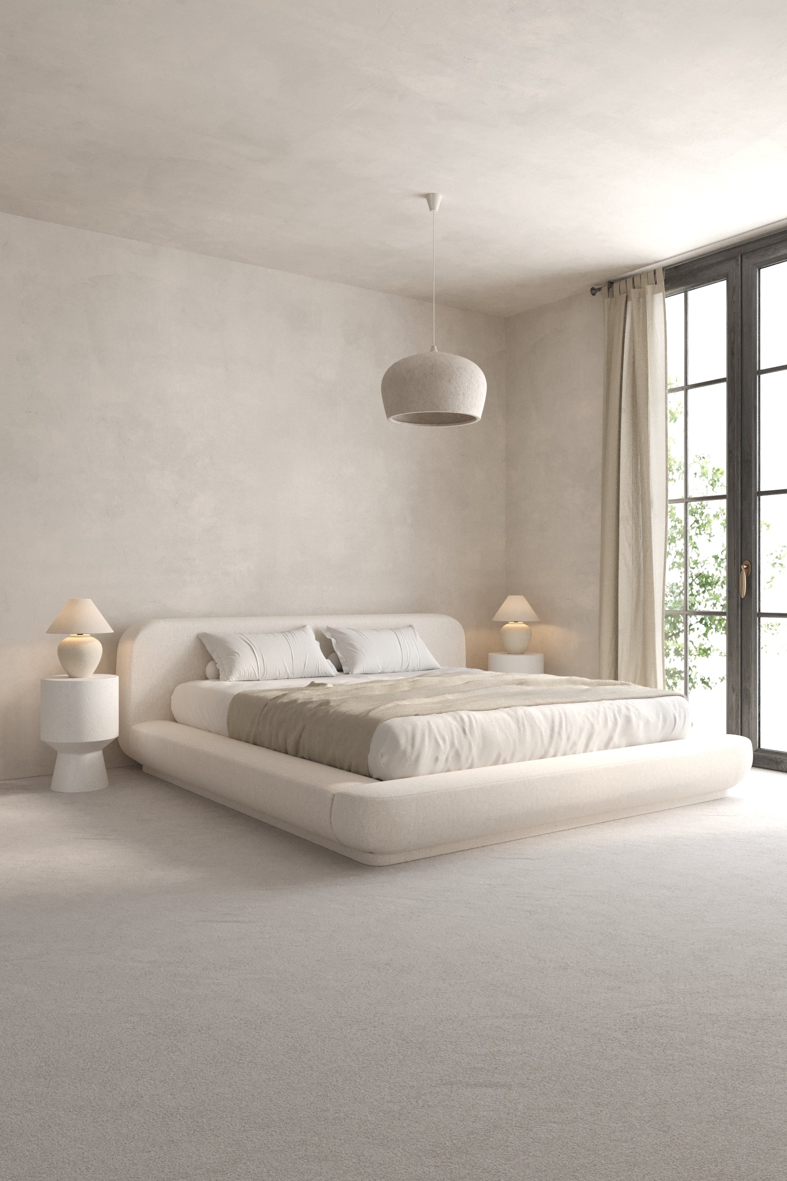 Elevate your bedroom with the refined elegance of a moonstone beige upholstered platform. Soft velvet upholstery with smooth rounded edges creates a plush, inviting feel. The sleek low-profile silhouette brings a modern yet timeless look that complements minimalist or contemporary interiors. Its versatile moonstone beige shade blends effortlessly with both neutral and bold palettes while ensuring durability and lasting comfort.