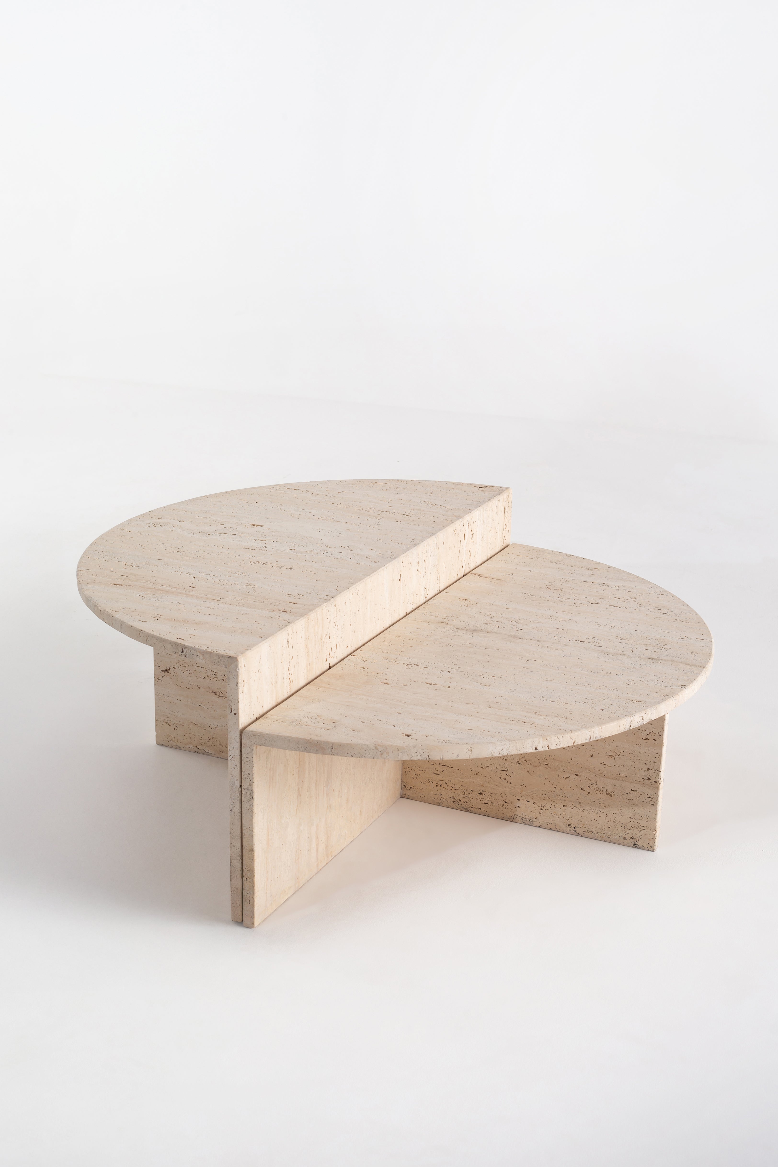 Elevate your living space with a nesting coffee table set that combines timeless elegance with functional design. The smooth beige travertine top showcases natural stone variations, adding organic charm to any décor. Designed for versatility, the nested structure offers space-saving convenience while maintaining a bold aesthetic. Whether used together for a layered look or separately for added functionality, these tables blend seamlessly into modern, contemporary, or minimalist interiors. With their sturdy build and refined finish, they provide both durability and sophistication, making them the perfect addition to any stylish home.