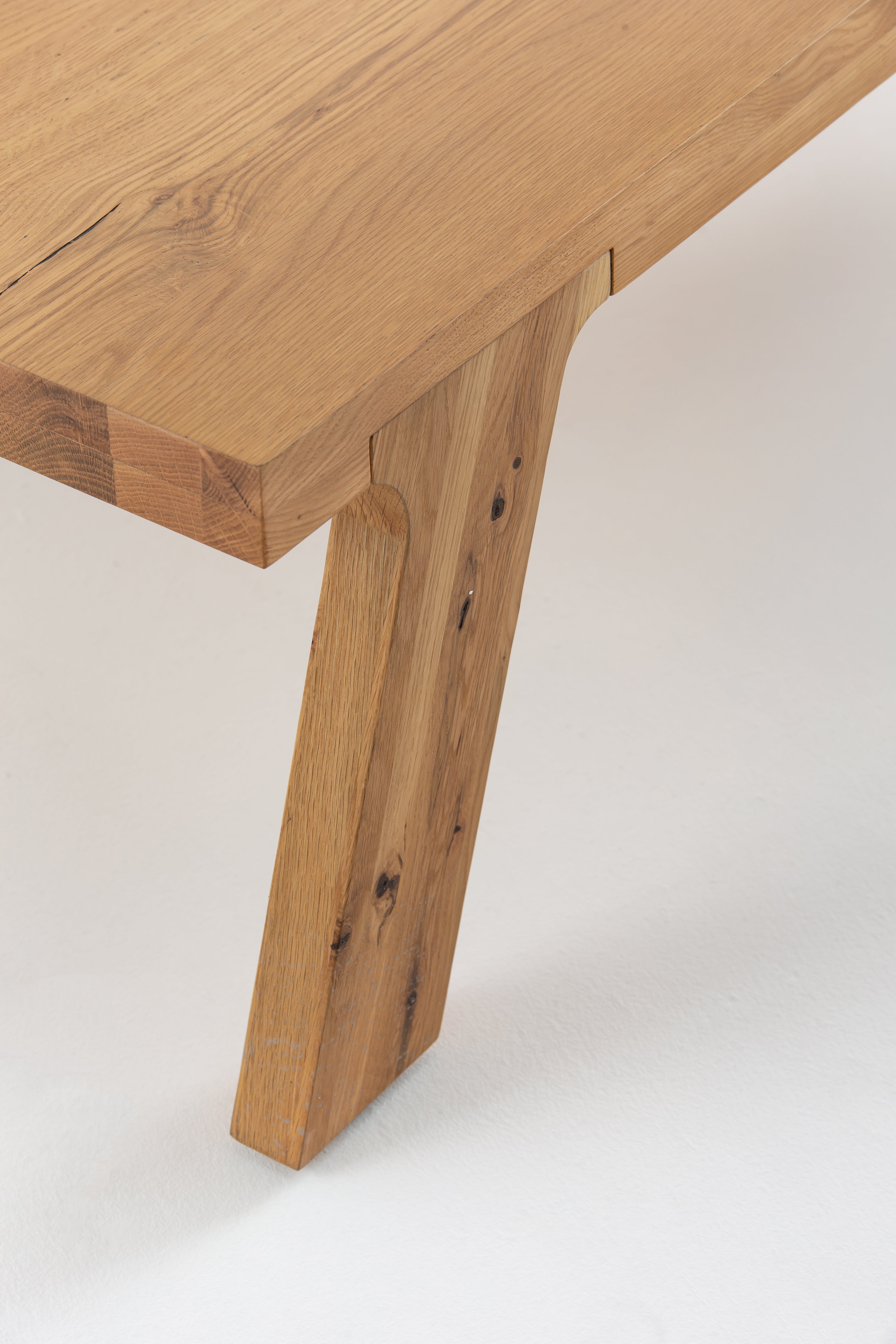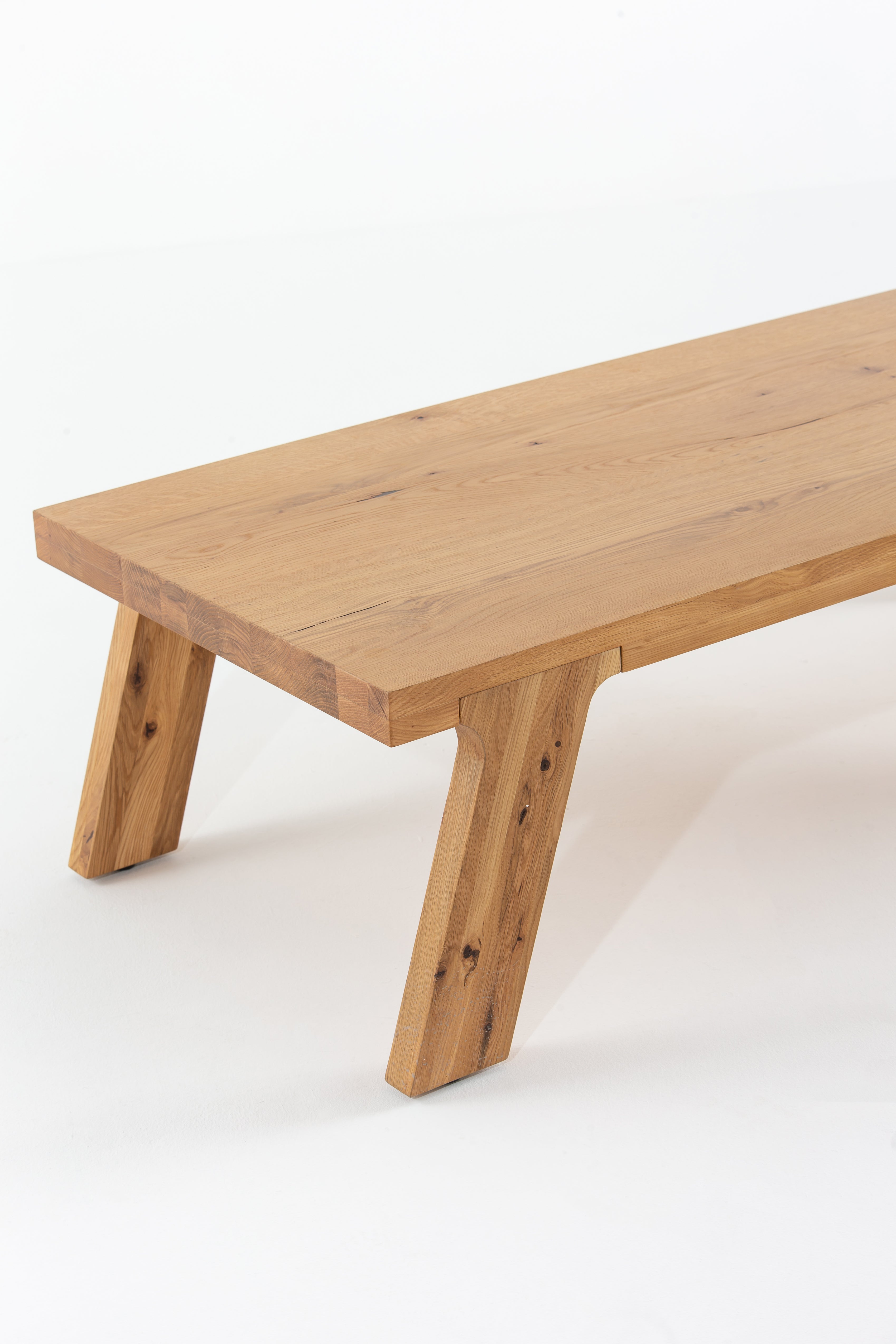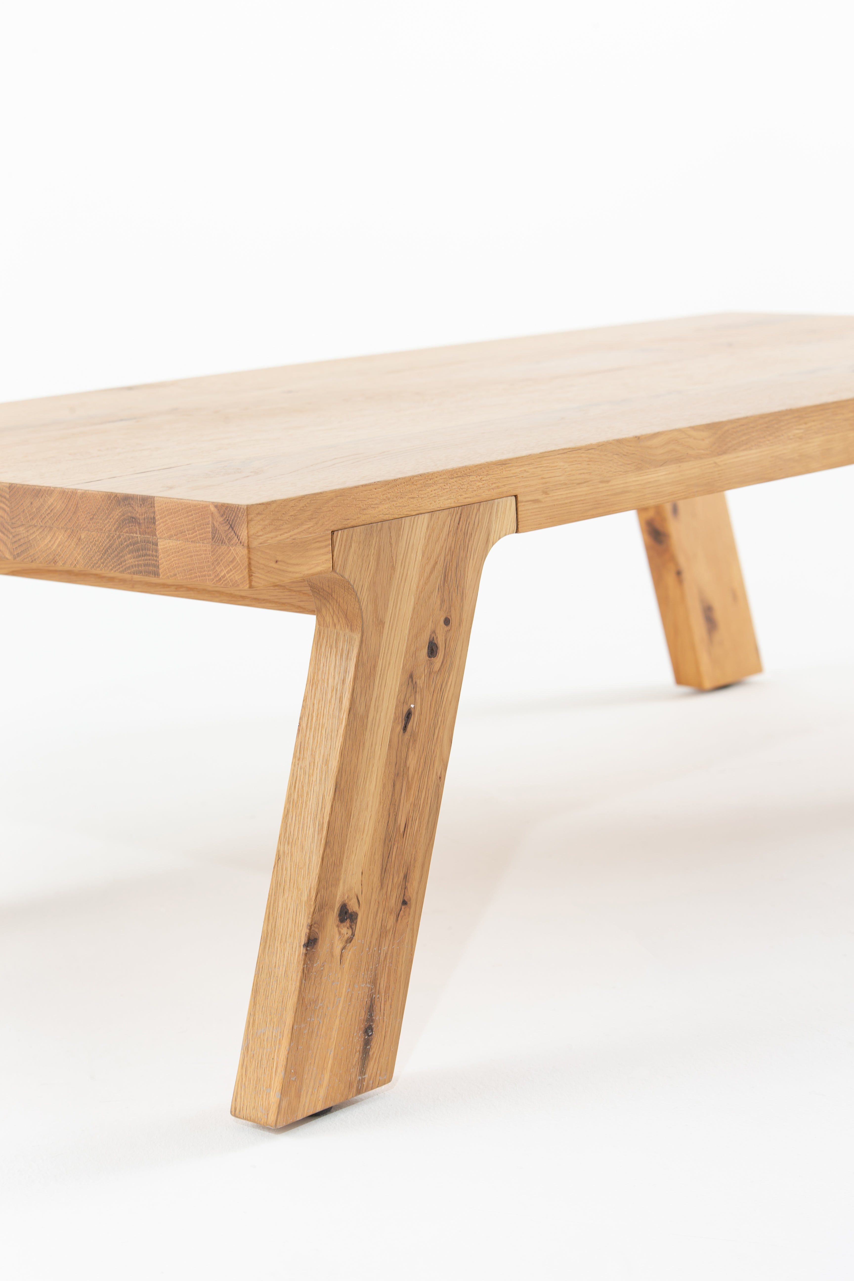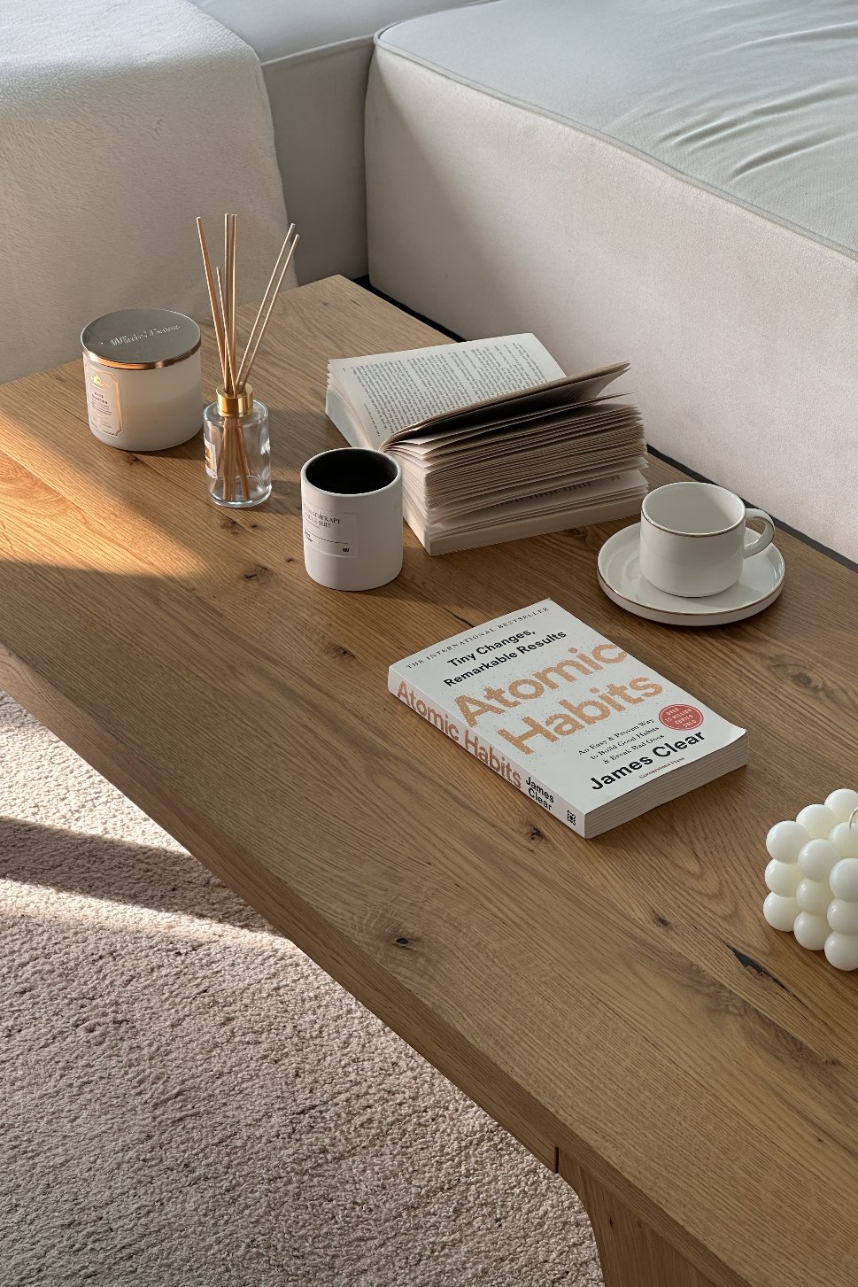 Grounded in natural beauty, this wooden coffee table brings warmth and character to your space. Crafted from rich oak veneer with a sturdy oak wood base, its smooth, wide surface highlights the organic grain patterns, while slightly angled legs add a touch of modern charm. The minimalist structure ensures versatility, making it a perfect fit for contemporary and rustic interiors alike. Whether holding your morning coffee or styled with décor, this statement piece enhances your living area with timeless appeal.