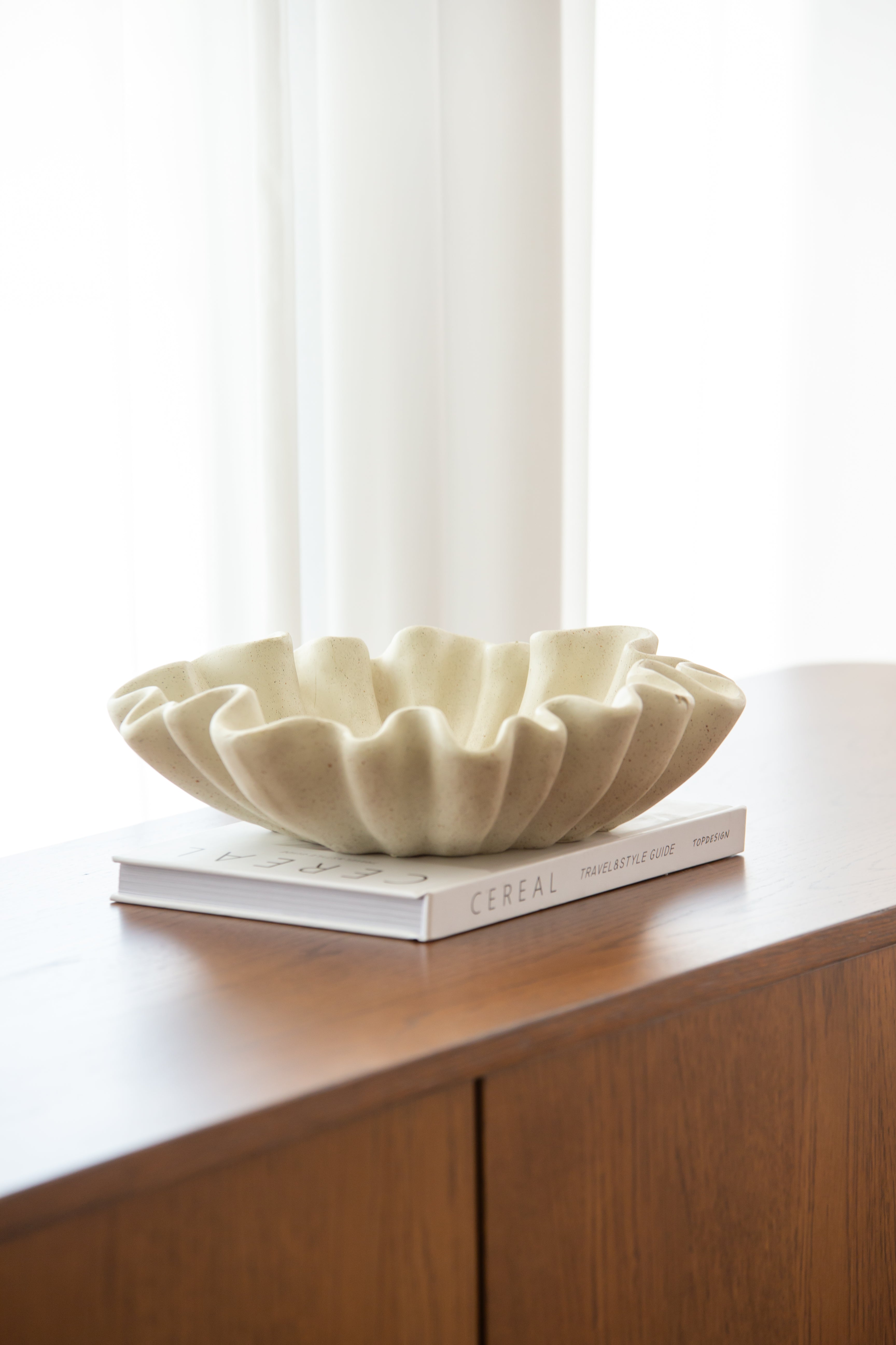 Elevate your space with a sculptural ceramic pedestal bowl that blends artistry with functionality. Its ruffled, wave-like edges mimic organic forms, creating a statement piece that captivates the eye. Crafted with a speckled, matte ceramic finish, it exudes a raw, handcrafted appeal, perfect for modern, minimal, or rustic interiors. Whether displayed as a decorative centerpiece, a fruit holder, or a standalone art object, its soft neutral tones harmonize effortlessly with any decor. Bring texture, elegance, and timeless design into your home with this uniquely crafted ceramic masterpiece.