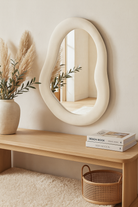 Introducing our off white Flannelette Frame Irregular Wall Mirror, a stunning addition to any space seeking a touch of rustic elegance. Crafted with care, this mirror features an irregular shape that adds character and uniqueness to your decor.