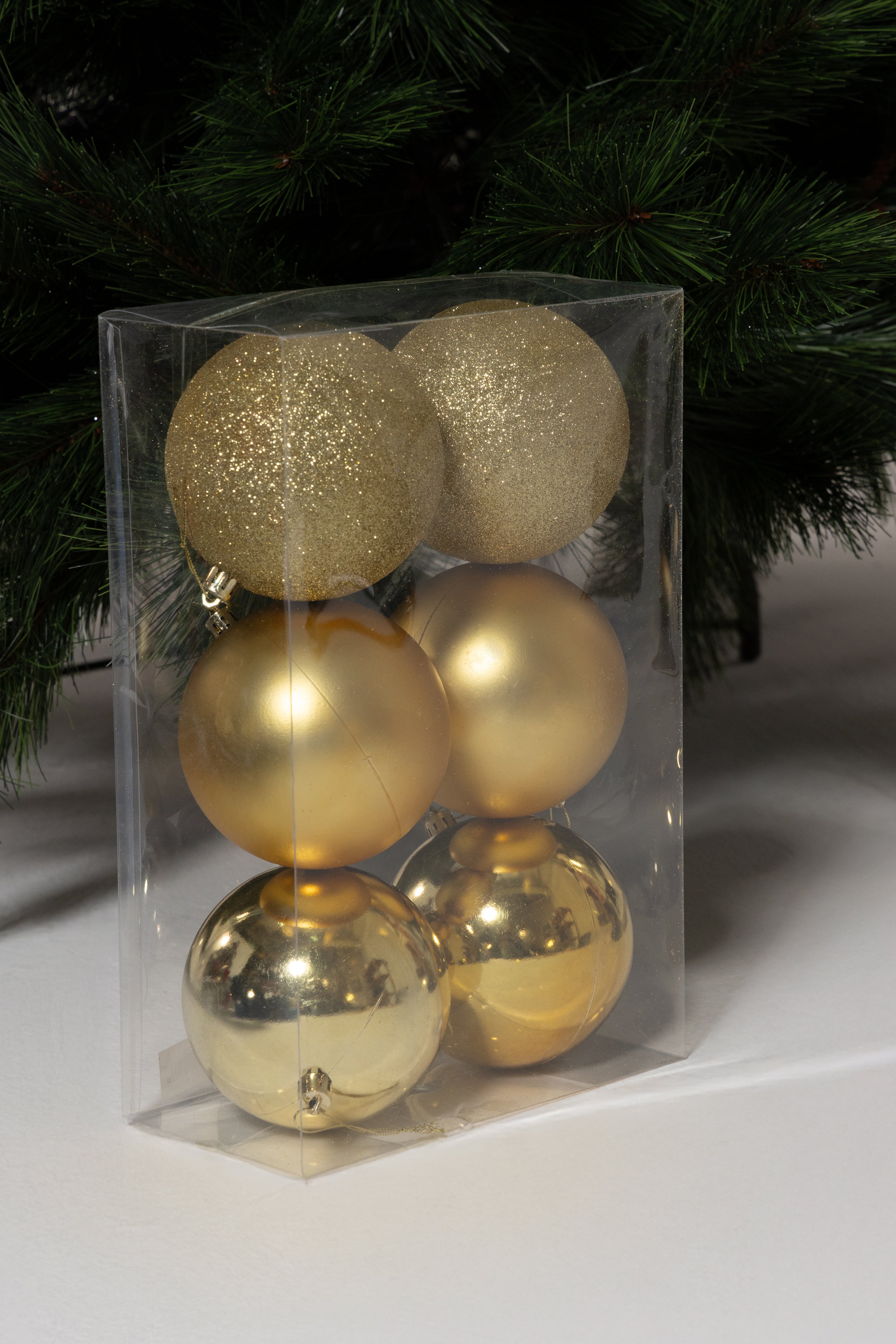 Elevate your holiday decorating with a beautiful collection of gold baubles designed to add warmth and radiance to any festive space. This set includes twelve ornaments featuring a balanced mix of glitter, matte, and shiny finishes that create rich dimension on your tree. Each piece is crafted for durability and neatly arranged in a clear container for effortless storage and easy gifting. Their timeless golden tone blends seamlessly with classic or modern themes, offering a refined glow throughout the season.