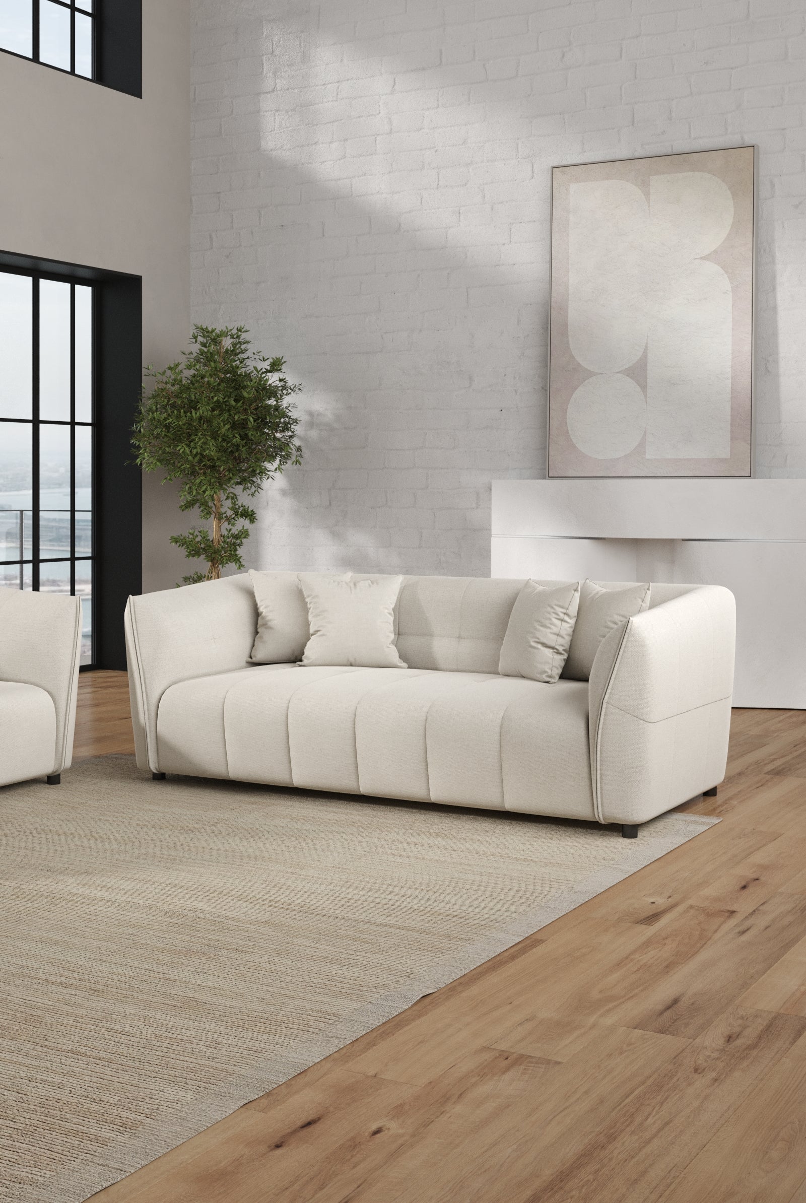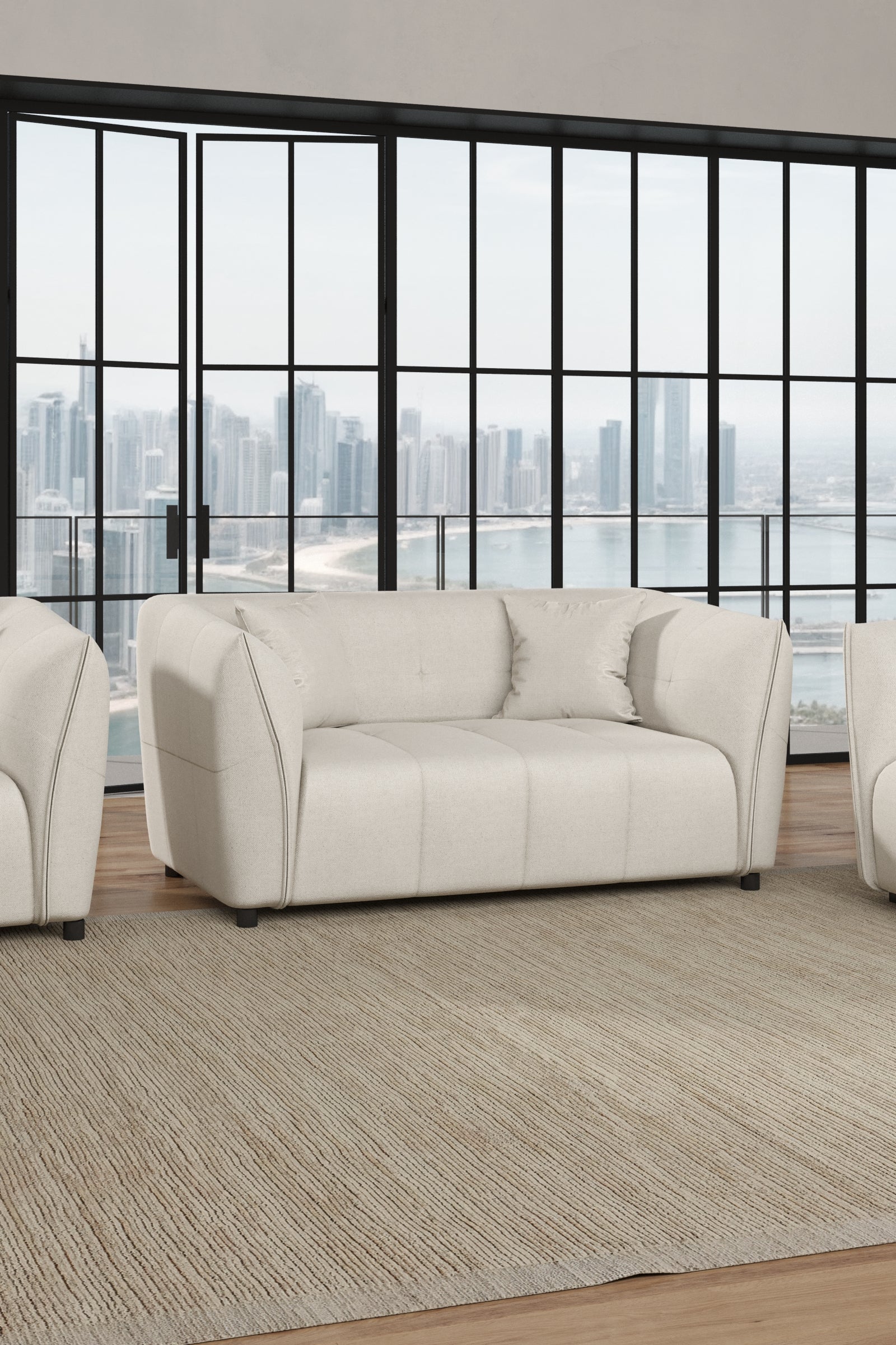 Experience the perfect balance of bold design and deep comfort with these contemporary sofas. Upholstered in elegant Moonstone Beige, they exude a sense of calm sophistication that complements any refined living space. The wide, structured arms and subtle seam detailing lend a luxurious presence, while the ergonomic build ensures exceptional comfort. Whether arranged as a two seater for intimate lounging or a three seater for entertaining, these sofas blend timeless style with modern ease, creating an inviting centerpiece for your home.