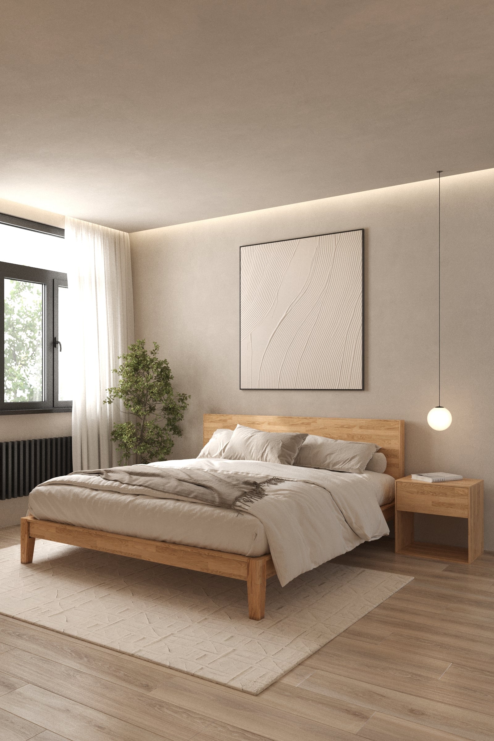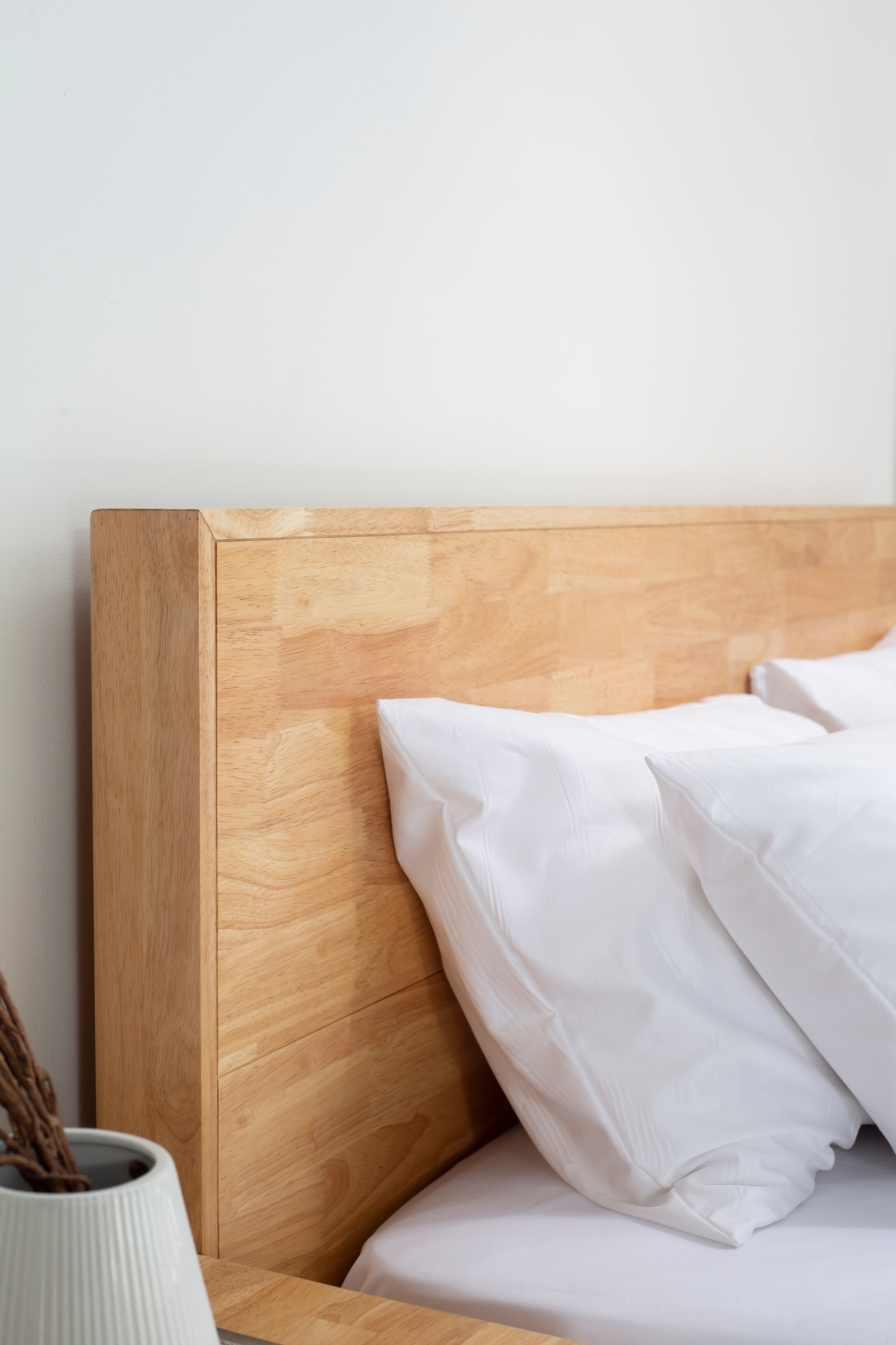 The Kohana Lightwood Bed combines natural elegance with exceptional craftsmanship. Crafted from premium rubberwood with a finger joint construction, this bed is designed for lasting durability and a seamless aesthetic. Its warm, lightwood finish brings a natural charm to any bedroom, complementing modern, minimalist, or Scandinavian interiors. The sturdy frame features a unique joint design, as seen in the images, ensuring precision and stability. With its sleek lines and timeless appeal, the Kohana Bed creates a serene and inviting ambiance for restful nights.