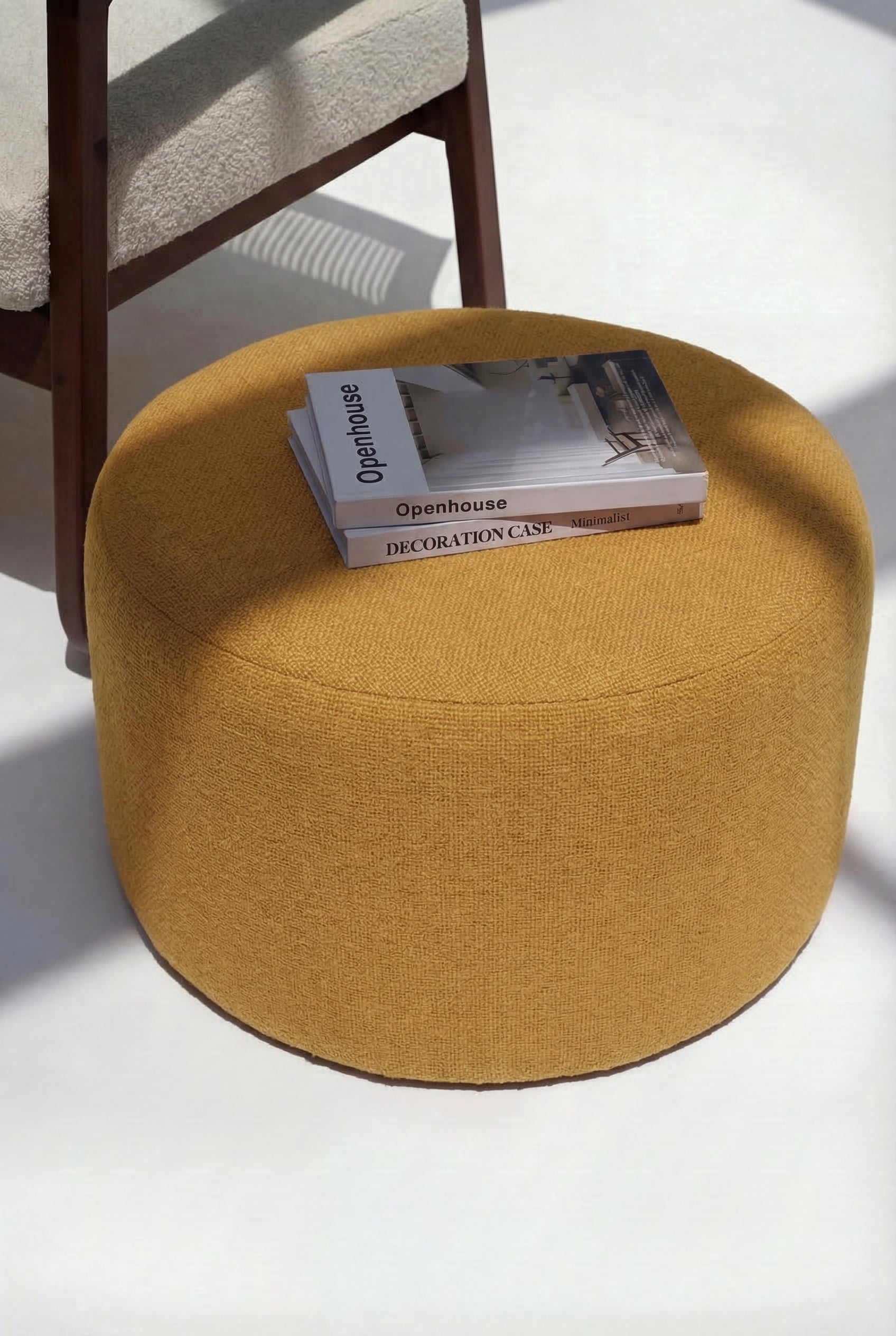 This ivory boucle pouf is a true statement piece that will wow your guests. This fun pouf has a clean minimalist vibe and brings a pop of brightness to any room in your home. Made of a soft textured boucle fabric, this exclusive pouf is a versatile foot rest, extra seat in your living room, or even a coffee table alternative.