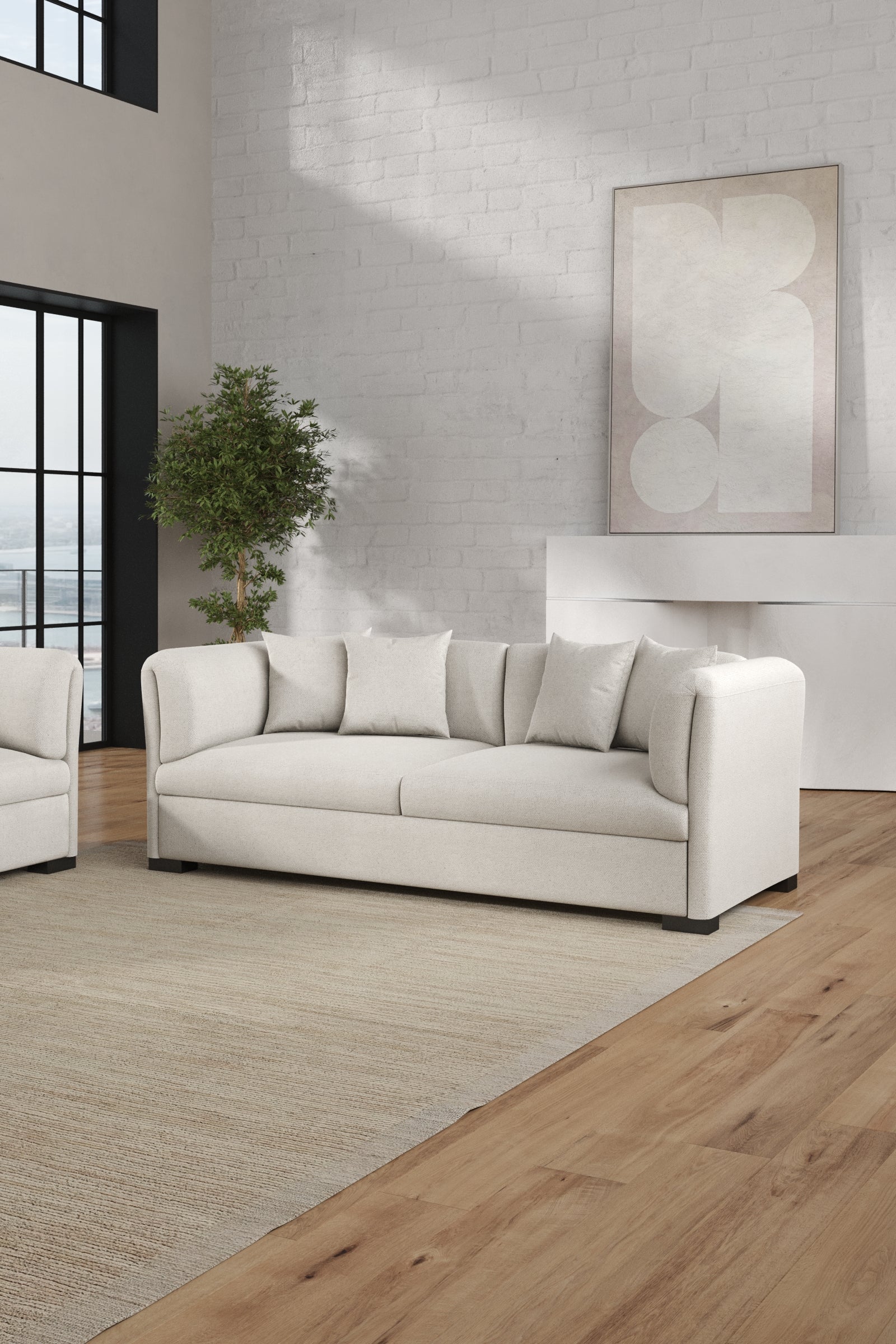 Experience the charm of sleek modern design with these 2-seater and 3-seater sofas in luxurious Moonstone Beige, crafted to bring timeless appeal and functionality to any living space. The generously cushioned seats and neatly tailored upholstery offer exceptional comfort, while the compact silhouettes create a clean, contemporary aesthetic. Perfect for apartments, lounges, or minimalist interiors, these sofas combine elegance and practicality, making them a versatile choice that enhances both relaxation and refined style.