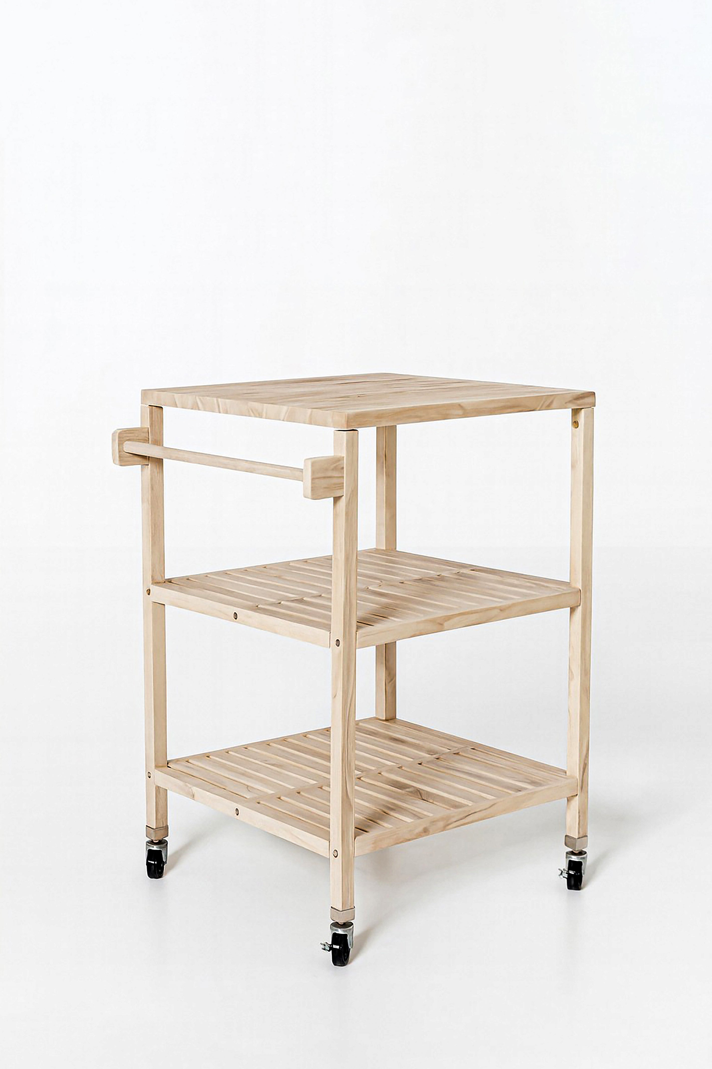 Brighten your kitchen with this trolley in bleached organic white, crafted to make you the perfect host. Its crisp white finish highlights the clean rectangular frame and open slatted shelving, giving you space to store dinnerware, display fresh produce, or roll out drinks for guests. The subtle bleached texture and versatile neutral tone blend seamlessly into minimalist, rustic, or cozy interiors, while the durable wheels let you move it with ease wherever you need it. Whether used as a serving trolley, extra storage, or for displaying décor, this piece brings both practicality and style to your kitchen or dining area.