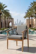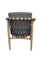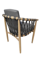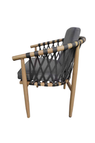 Elevate your indoor or outdoor seating with this contemporary armchair, featuring a beautifully crafted rope-weave backrest paired with a natural wood frame for a warm, organic look. The chair includes thick grey cushions that offer supportive comfort, while the woven detailing around the arms adds a stylish, textured finish. Designed for durability and modern appeal, it suits patios, balconies, dining spaces, and living areas with ease. Its blend of natural materials and clean lines makes it a versatile piece that enhances both minimalist and sophisticated décor styles.