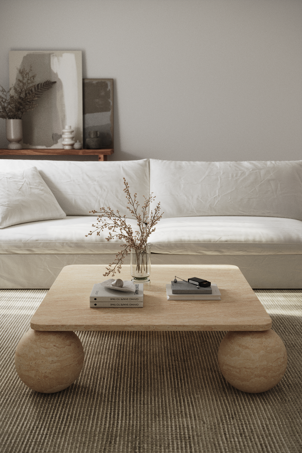 A bold yet refined statement, this coffee table brings sculptural beauty to your living space. Crafted from warm-toned travertine, its smooth square top rests on four striking sphere legs, creating a balance of structure and fluidity. The natural stone’s unique veining ensures no two pieces are alike, making it a timeless centerpiece for modern interiors.