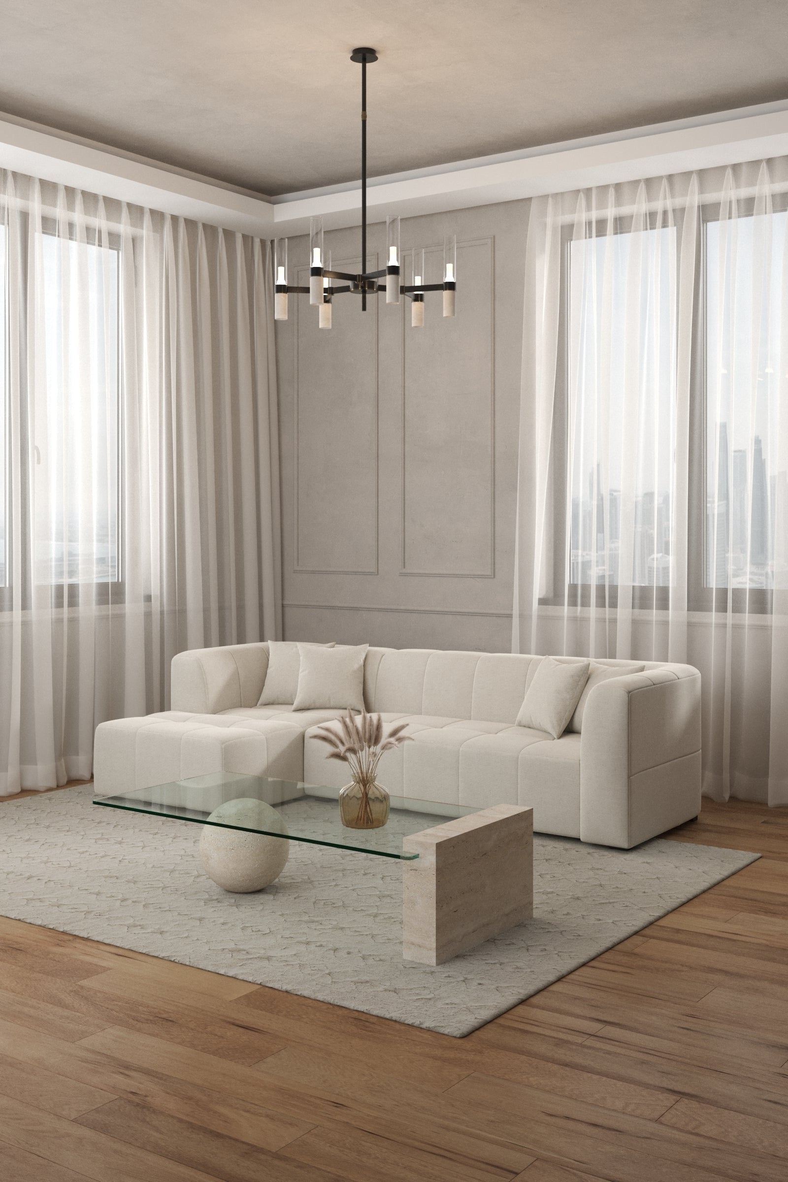 Transform your living area with this stylish three-seater L-shaped sofa with chaise, designed to bring soft elegance and effortless functionality into your space. Wrapped in luxurious Moonstone Beige fabric, it exudes a warm, contemporary charm that complements any interior palette. The tufted seat detailing, wide armrests, and clean lines create a refined, tailored look, while the spacious chaise invites you to unwind in comfort. Perfect for modern and minimalist interiors alike, this sofa blends visual sophistication with cozy appeal, making it a timeless centerpiece for any living room.