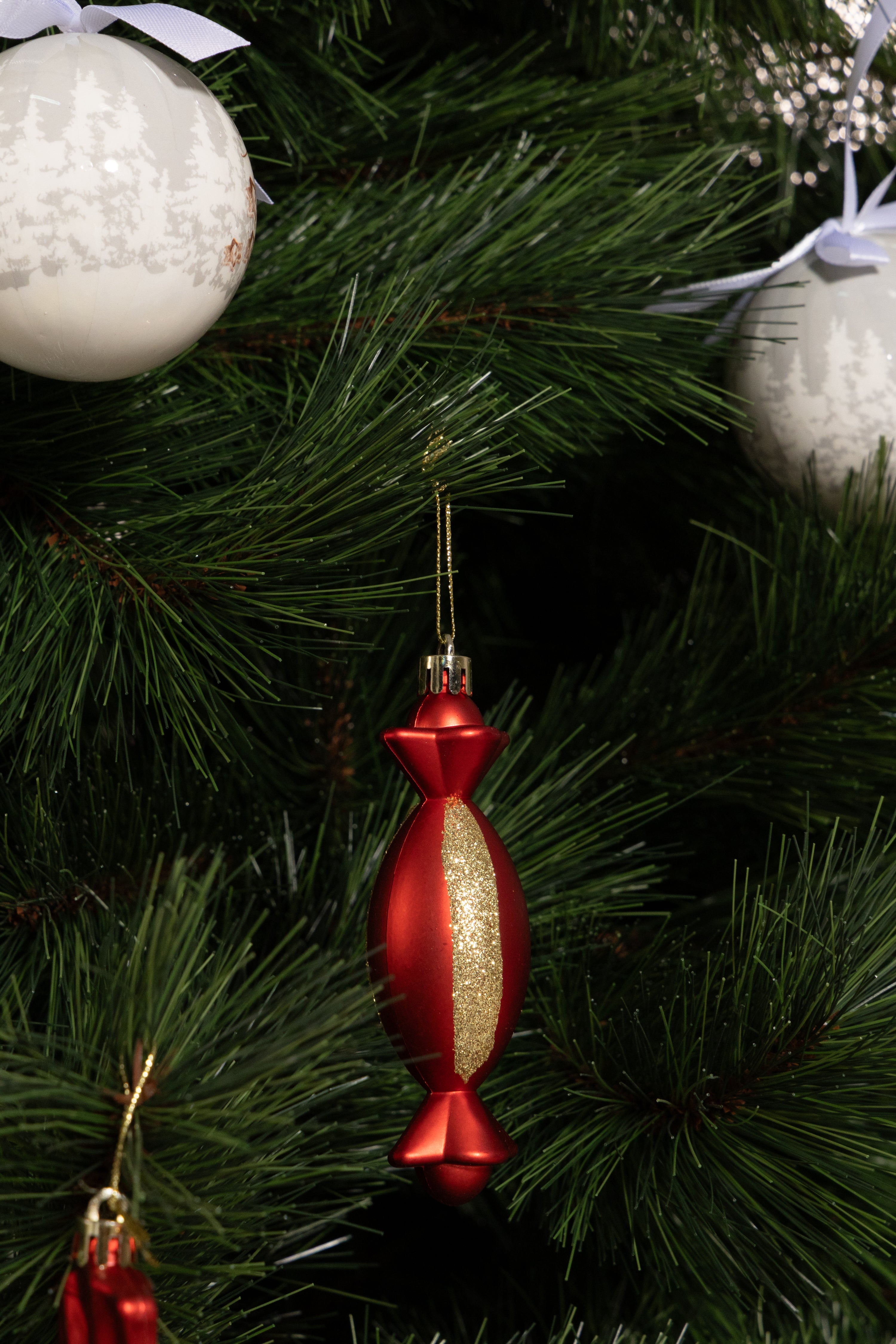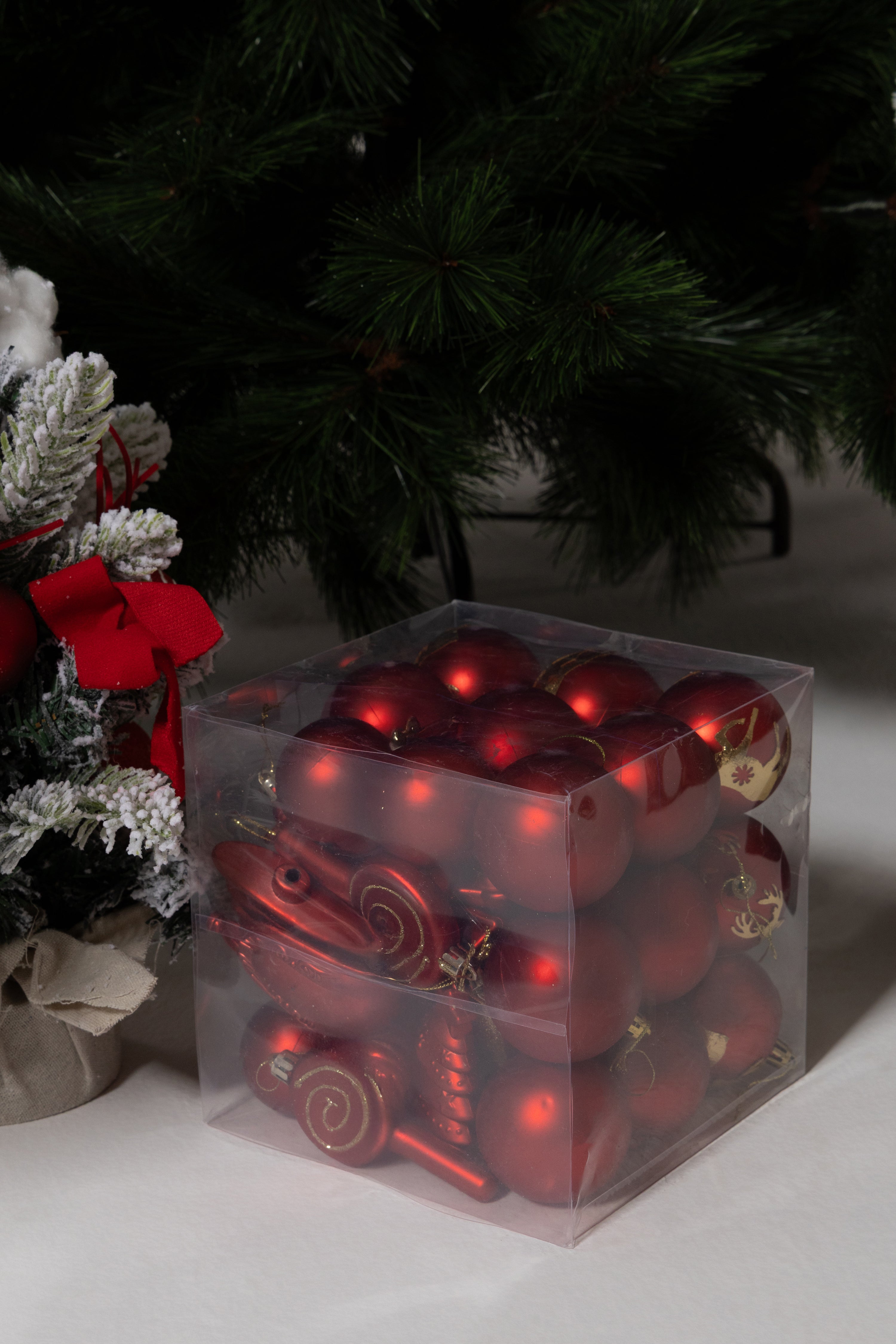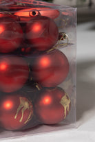 Create a warm holiday atmosphere with this charming set of classic red baubles. Each piece features a mix of glossy, matte, and patterned finishes that bring depth and sparkle to any festive display. The ornaments are lightweight, easy to hang, and presented in a clear box that keeps them organized for yearly decorating. Perfect for adding a timeless touch of Christmas cheer to your tree, wreath, or holiday centerpieces.