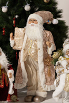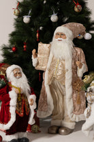 Bring a touch of European elegance to your holiday décor with this beautifully detailed Santa figure. Designed with a soft velvet-inspired coat, shimmering gold accents, and luxurious textured fabrics, this piece captures the warmth and charm of traditional Christmas craftsmanship. The gentle expression, intricate accessories, and rich seasonal tones make it a standout addition to mantel displays, entryway setups, or under-the-tree arrangements. Ready to display and full of festive character, it adds a refined glow to any Christmas setting.