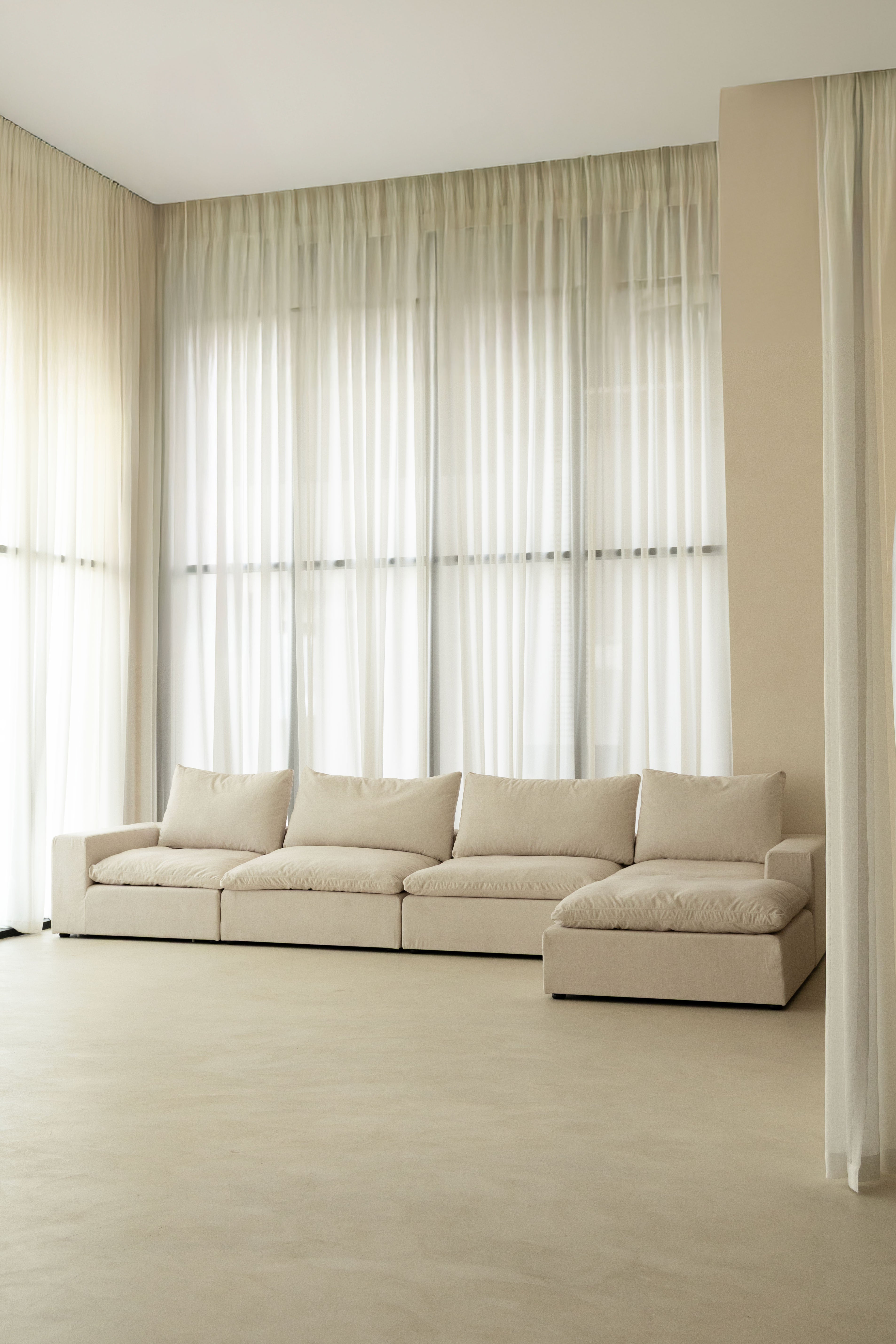 Create a haven of relaxation with spacious seating and a plush ottoman that invites you to stretch out and linger. Wrapped in soft light beige upholstery, every cushion offers a gentle embrace, perfect for afternoon lounging or peaceful evening retreats. The versatile ottoman extends comfort and doubles as a restful footrest or casual coffee table, allowing you to shape your space around moments of calm, comfort, and cozy gatherings.
