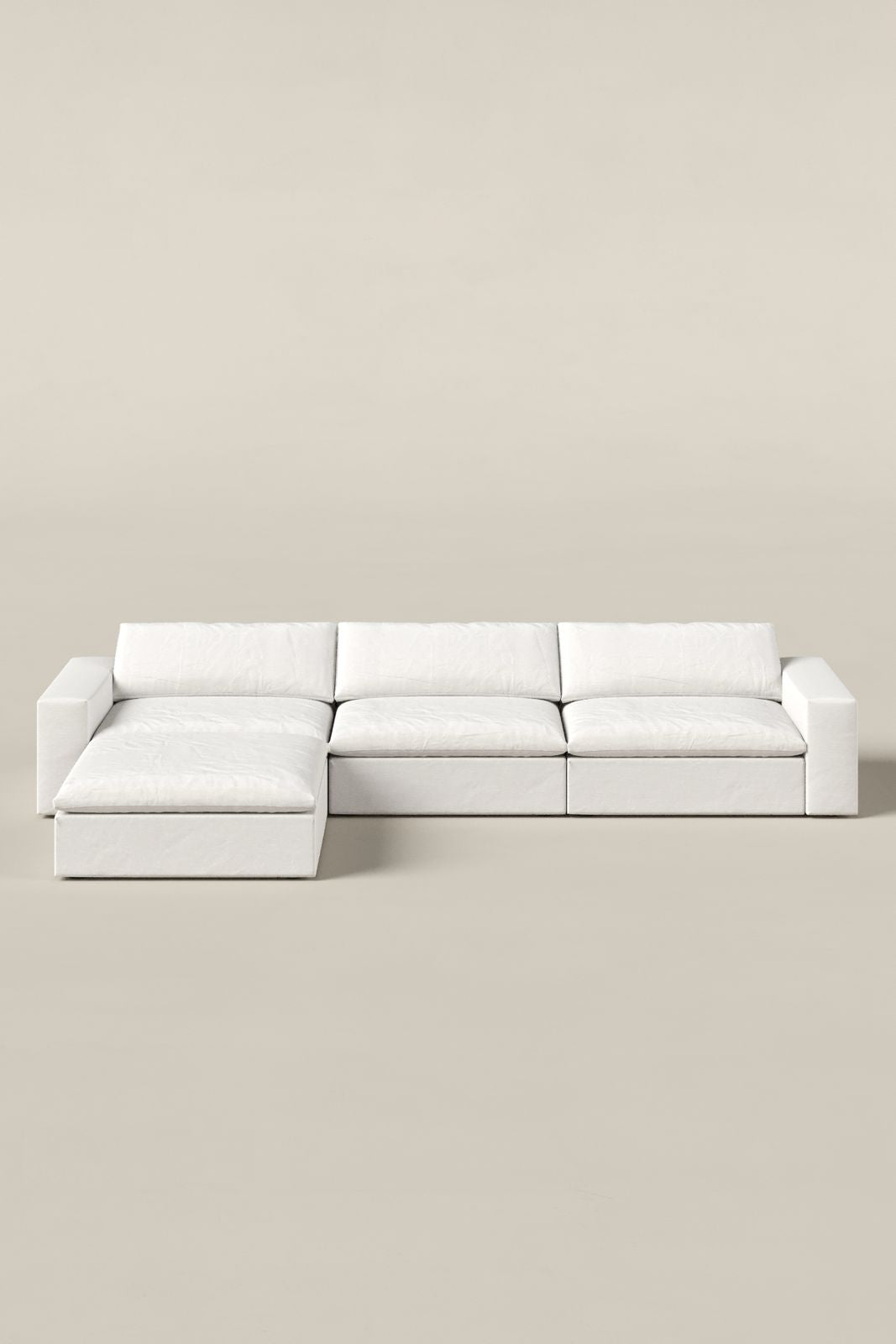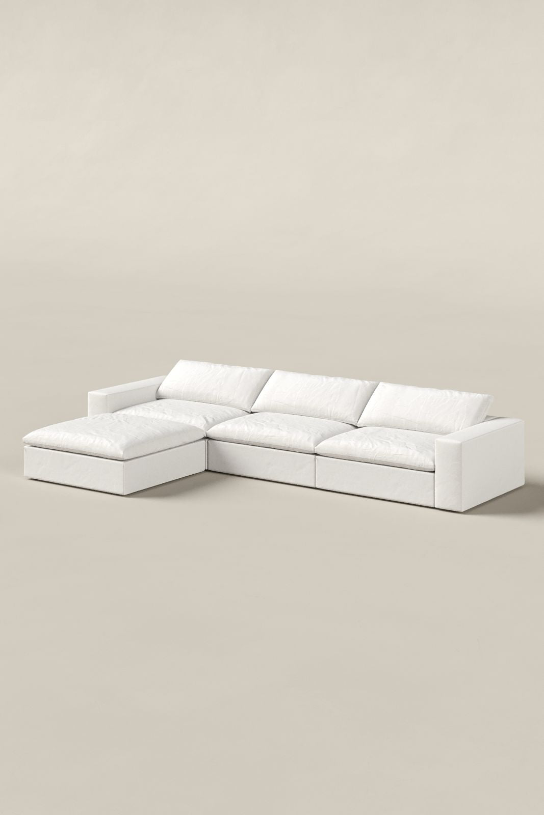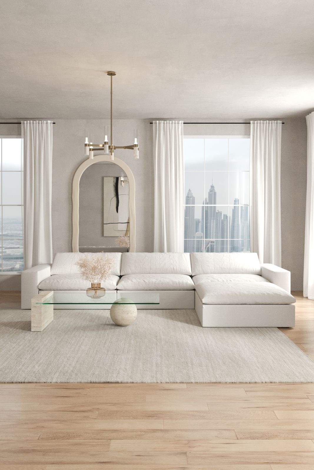 Transform your living room into a modern sanctuary with a 3-seater modular sofa and ottoman set designed for both style and versatility. The sleek rectangular frame, wide armrests, and low-profile silhouette make it an instant focal point, while the off-white tone enhances brightness and adds timeless sophistication. The detachable ottoman gives you the freedom to style it as a chaise lounge extension, centerpiece, or flexible seating option, making it the perfect balance of functionality and elegance. With its architectural shape and minimalist aesthetic, this sofa effortlessly adapts to both contemporary and classic interiors.