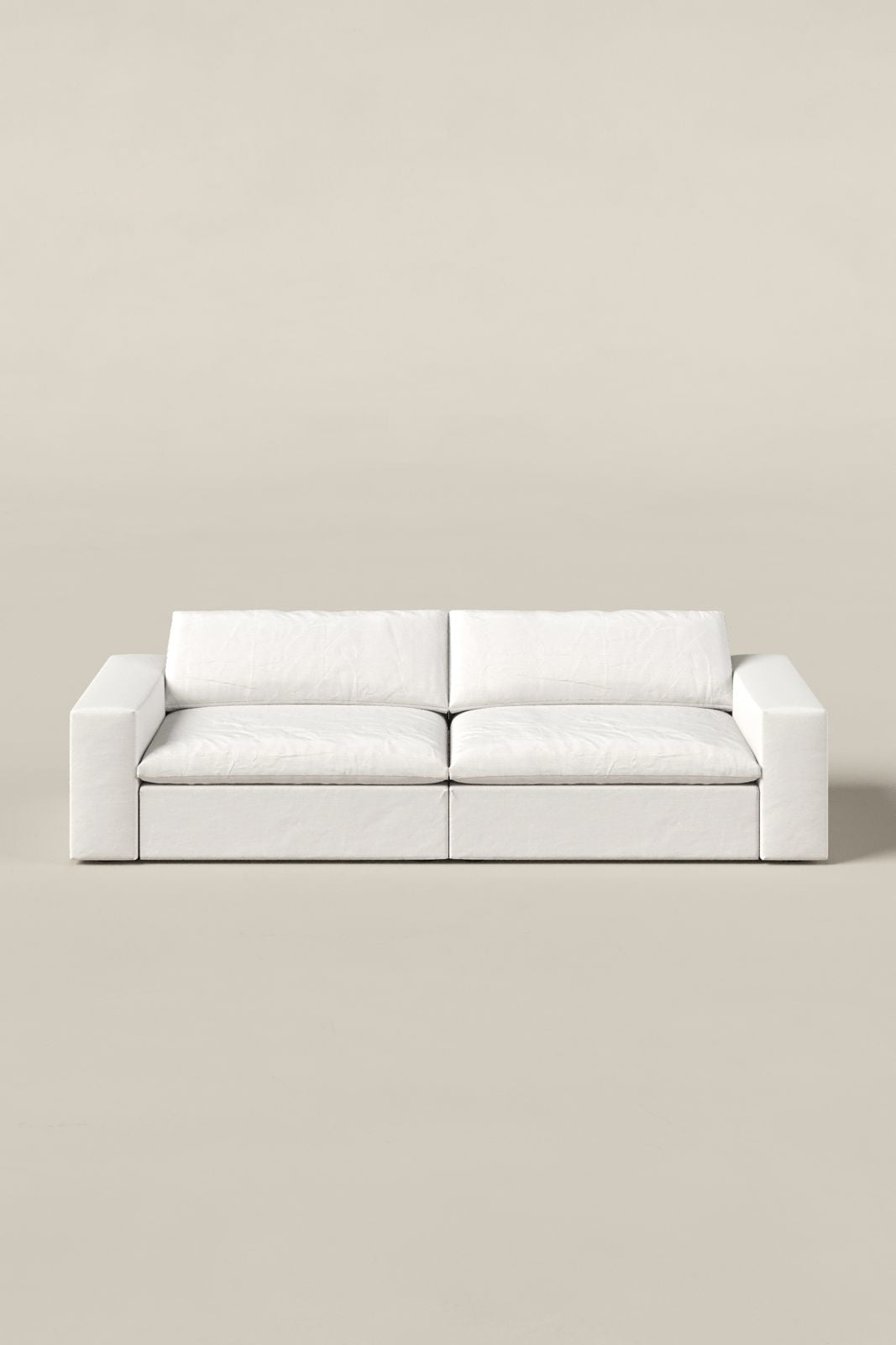 A refined expression of modern European elegance, this 2-seater sofa combines sleek design with everyday comfort. Its clean rectangular silhouette, broad armrests, and balanced proportions make it a stylish yet cozy addition to any living space. The off-white upholstery enhances brightness and sophistication, effortlessly complementing both minimalist and layered interiors. Compact yet inviting, its low-profile frame adds a touch of modern serenity, perfect for intimate lounging or pairing with larger pieces in a contemporary setting.