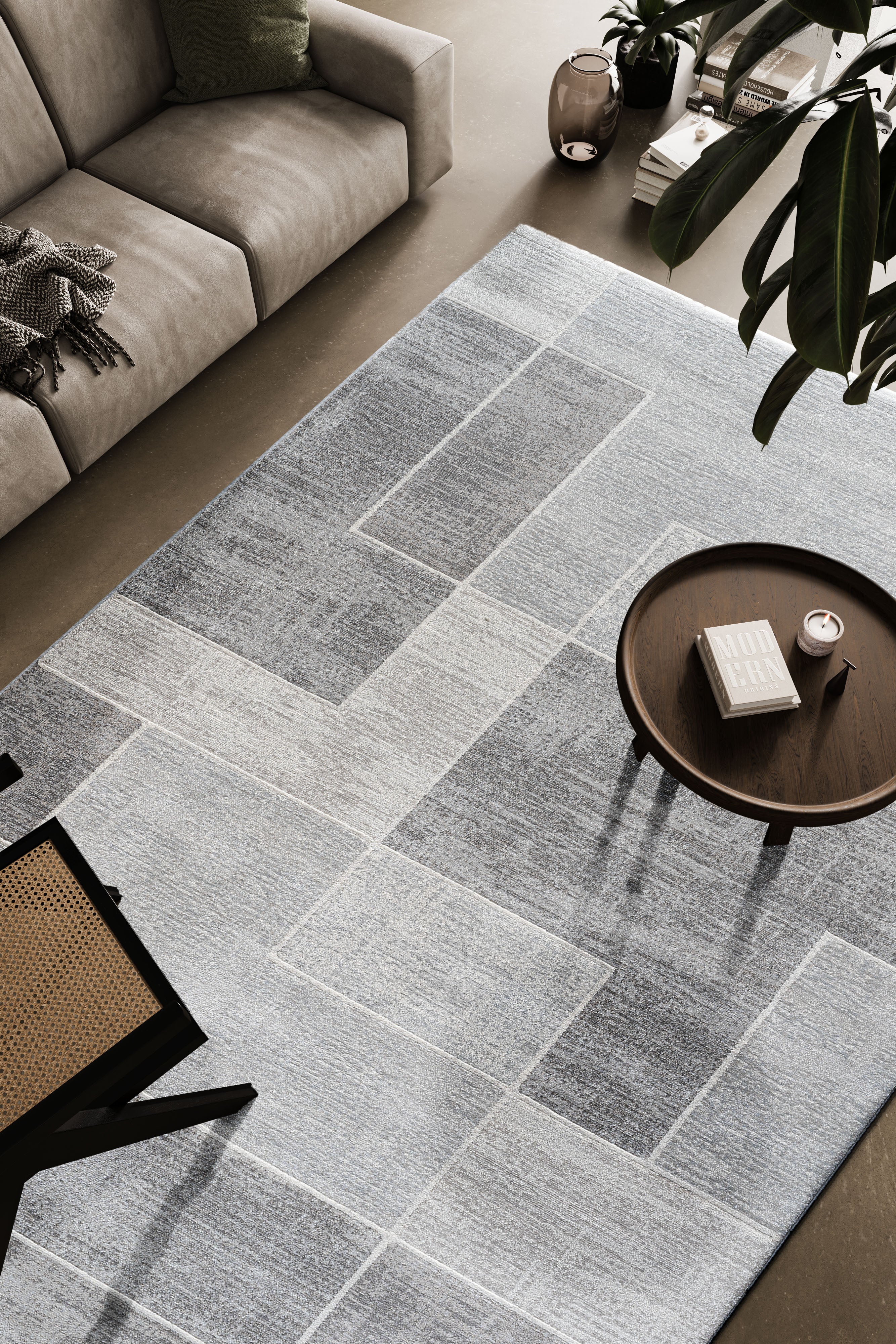 Redefine your space with the Philana Structured Rug, where bold design meets modern elegance. This striking abstract rug features a geometric arrangement of interlocking squares and rectangles in a refined mix of neutral grey and crisp white. Its dimensional texture adds depth and sophistication underfoot, making it a standout piece for living rooms, bedrooms, or offices. Seamlessly blending with contemporary interiors, this rug offers timeless style with a sleek, structured look.