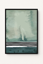 Transform your walls into a calming sanctuary with a minimalist abstract print that puts you at the center of modern design. Soft sage green and teal watercolor textures flow across the canvas, while bold black-and-white horizontal lines anchor the composition with contrast and balance. The layered tones create a serene horizon effect, blending natural calm with contemporary style. Perfect for your living room, bedroom, or office, this modern wall art adds depth, tranquility, and sophistication to any space.