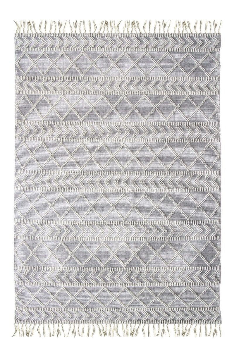 Seaside Elegance - Tassels Natural White & Blue Woven Rug