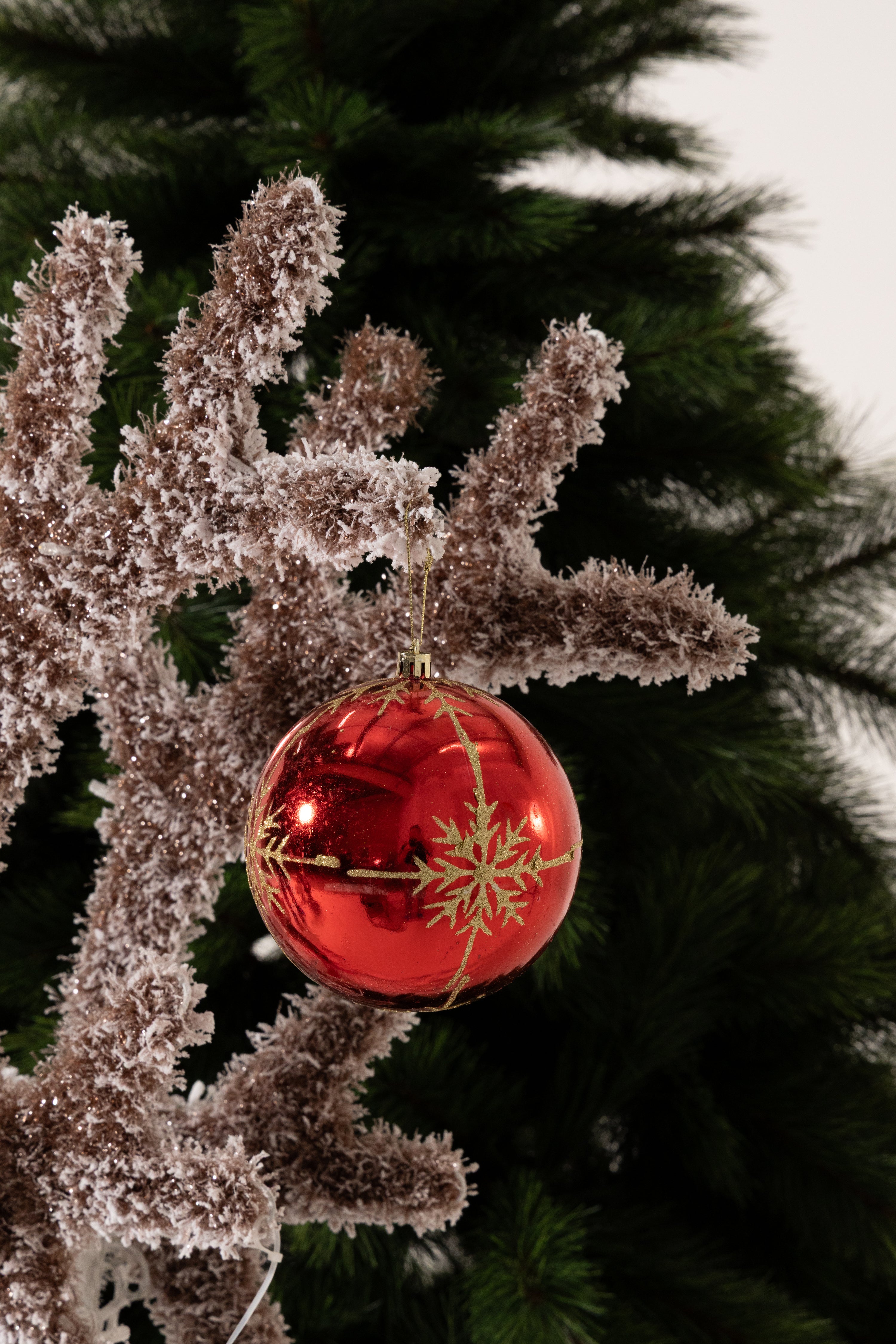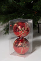 Elevate your festive decorating with this beautifully coordinated pair of glossy red ornaments. Each 12cm piece features a delicate gold snowflake design that catches the light and adds a touch of seasonal elegance. Their larger size makes them perfect for creating standout moments on your Christmas tree, wreaths, or decorative bowls. Packaged in a clear box for easy storage, they offer a simple yet eye-catching way to enhance your holiday atmosphere.