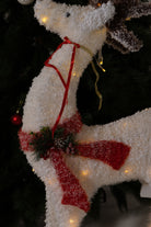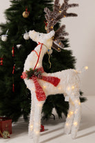 Bring a magical winter glow to your holiday setup with this charming standing reindeer décor. Its snow-textured finish, soft warm lights, and beautifully accented antlers create an enchanting display that feels straight out of a festive winter scene. A bright red ribbon adds a cheerful touch, making it a standout piece beside the tree, entryway, or any corner that needs seasonal sparkle. Lightweight yet detailed, it arrives ready to display and instantly elevates your Christmas atmosphere.