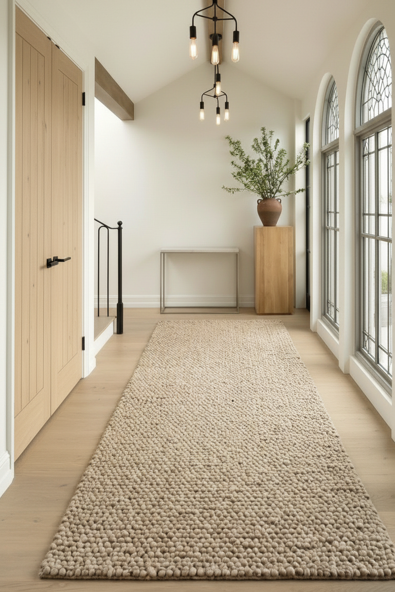 Elevate your entryway with the timeless warmth of a handcrafted wool hallway rug in light beige. The soft, textured weave offers comfort underfoot, while the neutral tone enhances both modern and classic interiors. At 80x200CM, it’s perfectly sized for corridors, foyers, or bedside styling. Durable and versatile, this rug adds a subtle layer of sophistication to everyday living spaces.
